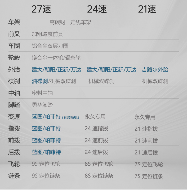 Высококачественная серая стальная рама [спицевое колесо]; Стальная рама жемчужно-белого цвета [колесо со спицами]; Розовый цвет персика [Колесо со спицами] Стальная рама; Карамельно-коричневый [колесо со спицами] стальной каркас; Высококачественная серая стальная рама [колесо с тремя ножами]; Стальная рама жемчужно-белого цвета [колесо с тремя ножами]; Порошок персикового цвета [Трехножевое колесо] Стальная рама; Карамельно-коричневый [Трехножевое колесо] Стальная рама; Высококачественная серая стальная рама [колесо с шестью ножами]; Жемчужно-белый [колесо с шестью лезвиями] стальная рама; Порошок персикового цвета [колесо с шестью лезвиями] стальная рама; Карамельно-коричневый [колесо с шестью лезвиями] стальная рама; Высококачественная серая стальная рама [колесо с десятью ножами]; Стальная рама жемчужно-белого цвета [колесо с десятью ножами]; Порошок персикового цвета [Колесо с десятью ножами] Стальная рама; Карамельно-коричневый [Колесо с десятью ножами] Стальная рама; Индивидуальная высококачественная серая алюминиевая рама [колесо со спицами]; Алюминиевая рама индивидуального дизайна жемчужно-белого цвета [колесо со спицами]; Алюминиевая рама по индивидуальному заказу — розовый персиковый цвет [колесо со спицами]; Алюминиевая рама Customized-Black Warrior [колесо со спицами]; Индивидуальная высококачественная серая алюминиевая рама [колесо с тремя ножами]; Алюминиевая рама индивидуального дизайна жемчужно-белого цвета [колесо с тремя ножами]; Индивидуальный порошок персикового цвета [колесо с тремя ножами] алюминиевая рама; Алюминиевая рама Customized-Black Warrior [Три ножа]; Индивидуальные 27- и 30-скоростные передачи требуют модернизации масляного тормоза, пожалуйста, свяжитесь со службой поддержки клиентов.