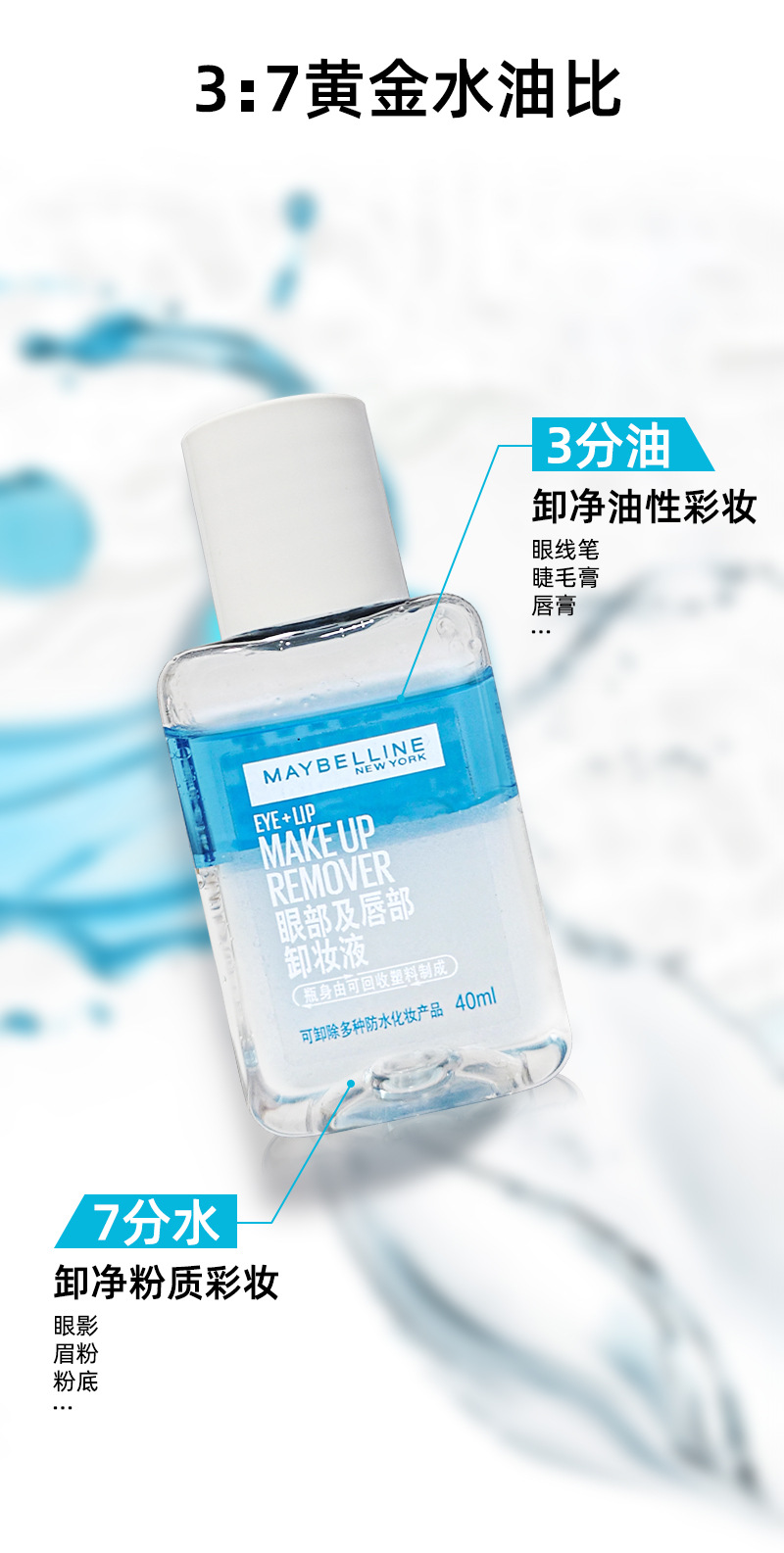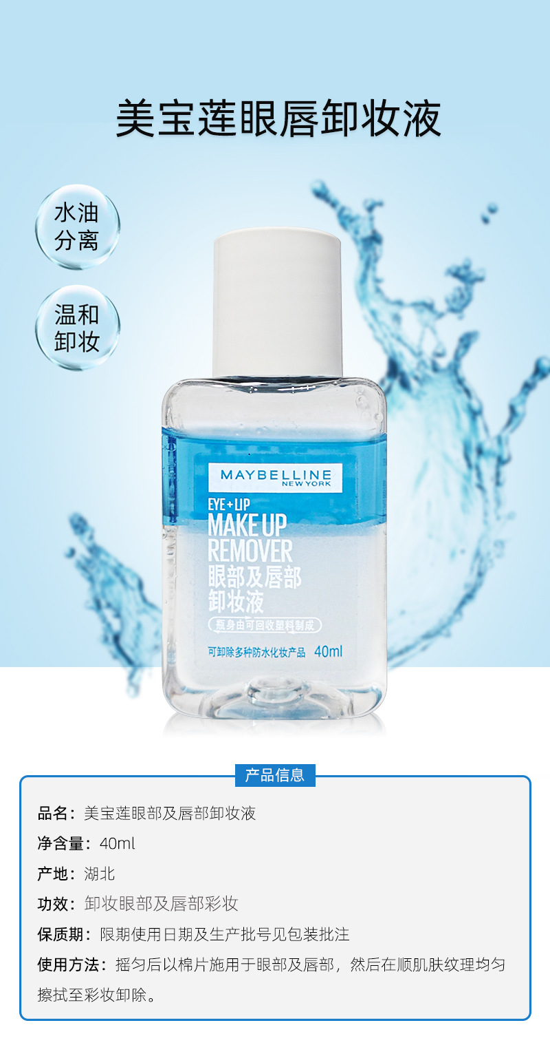 Средство для снятия макияжа с глаз и губ Maybelline 40ml водно-масляная отделка и мягкое очищающее масло Образец опыт дорожных подарков на день рождения