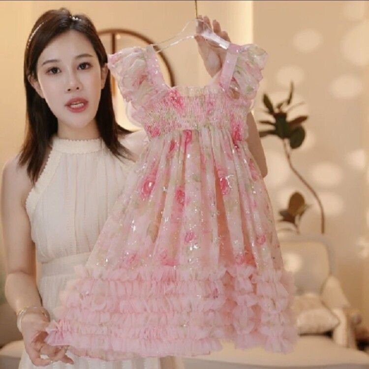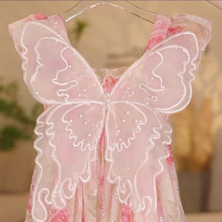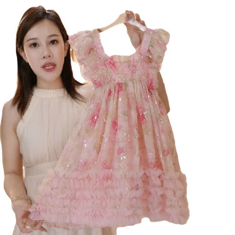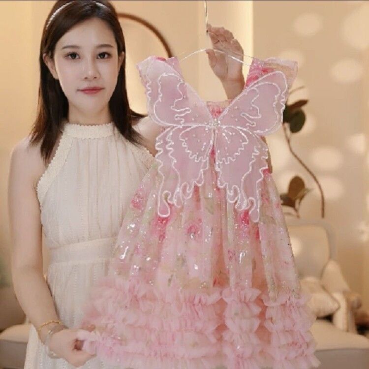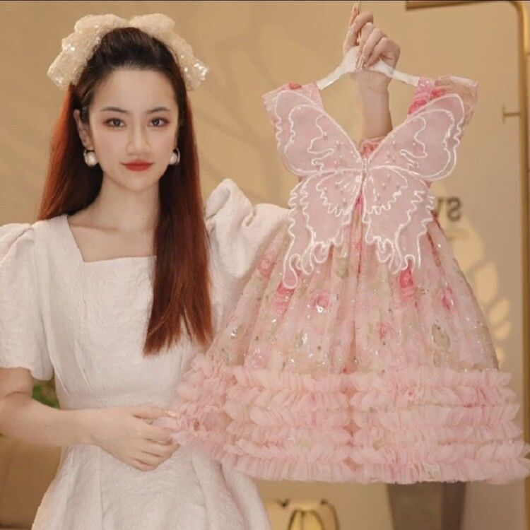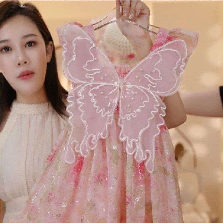 Детская бабочка сетчатая пряжа для девочек Летнее новое платье 2024 Ocean день рождения принцесса платье для детей