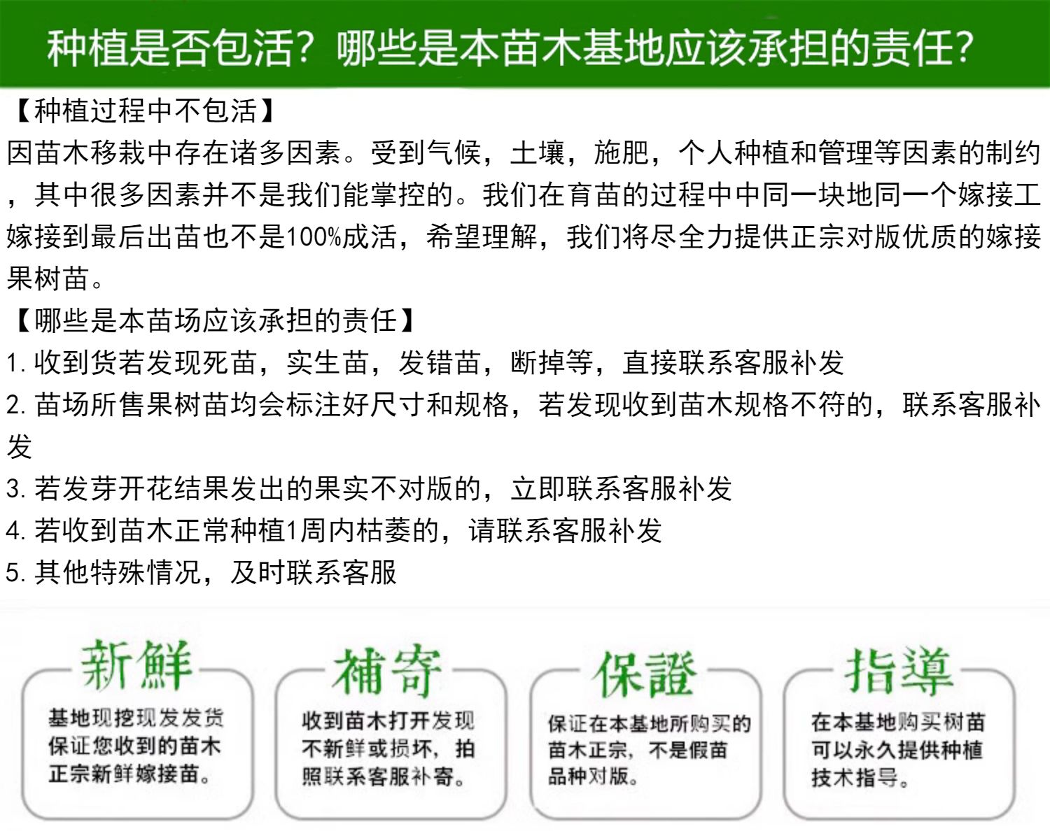 1 годовой саженец Зуйцзинсян - 15см (включительно) - 30см (эксклюзивно); 2 однолетние саженца Зуйцзинсян - 15см (включительно) - 30см (эксклюзивно); 5 одногодичных саженцев Зуйцзинсян - 15см (включительно) - 30см (эксклюзивно); 10 одногодичных саженцев Зуйцзинсян - 15см (включительно) - 30см (эксклюзивно); 50 саженцев в год, сезон посадки и поставки (с октября по апрель) -15см (включительно) -30см (эксклюзивно)