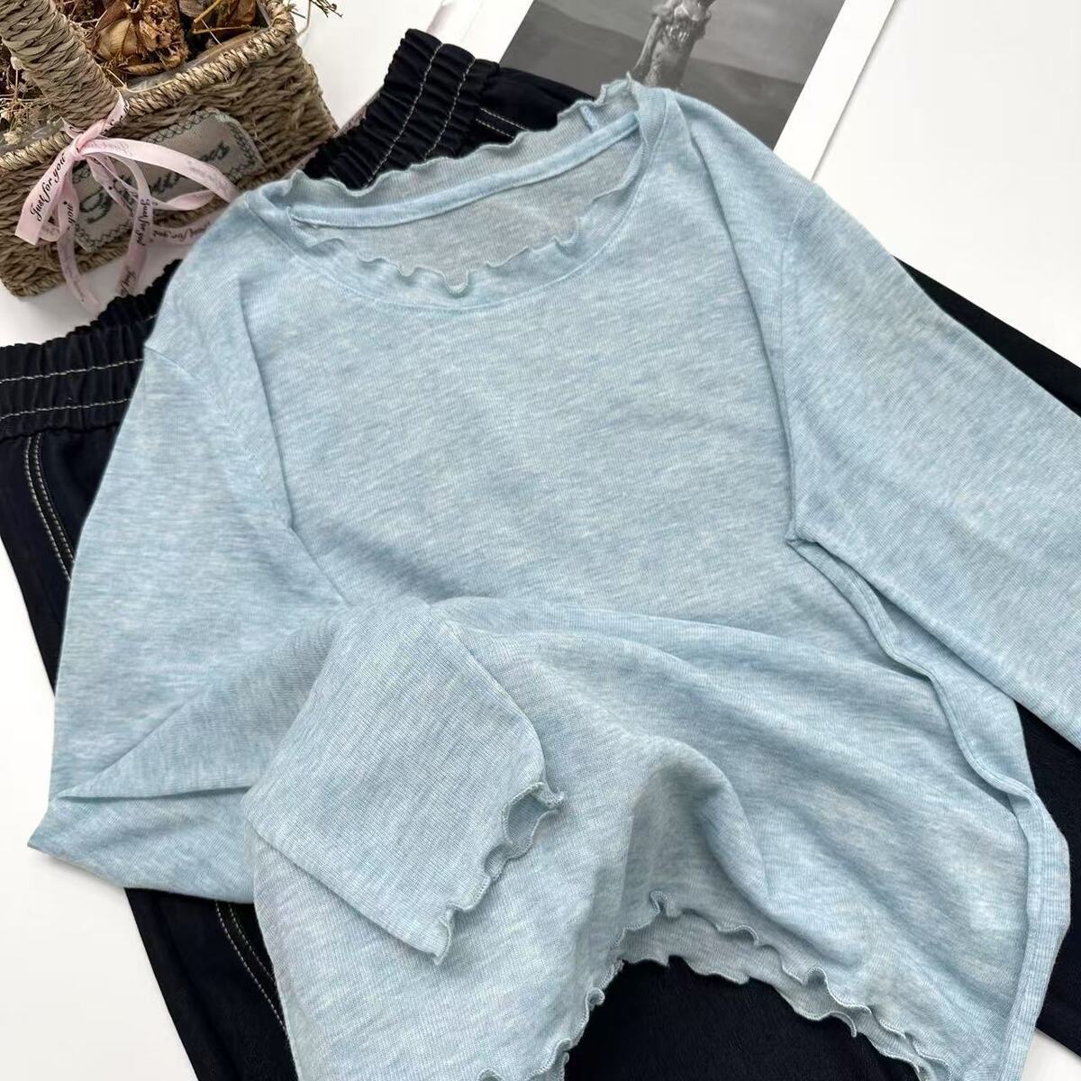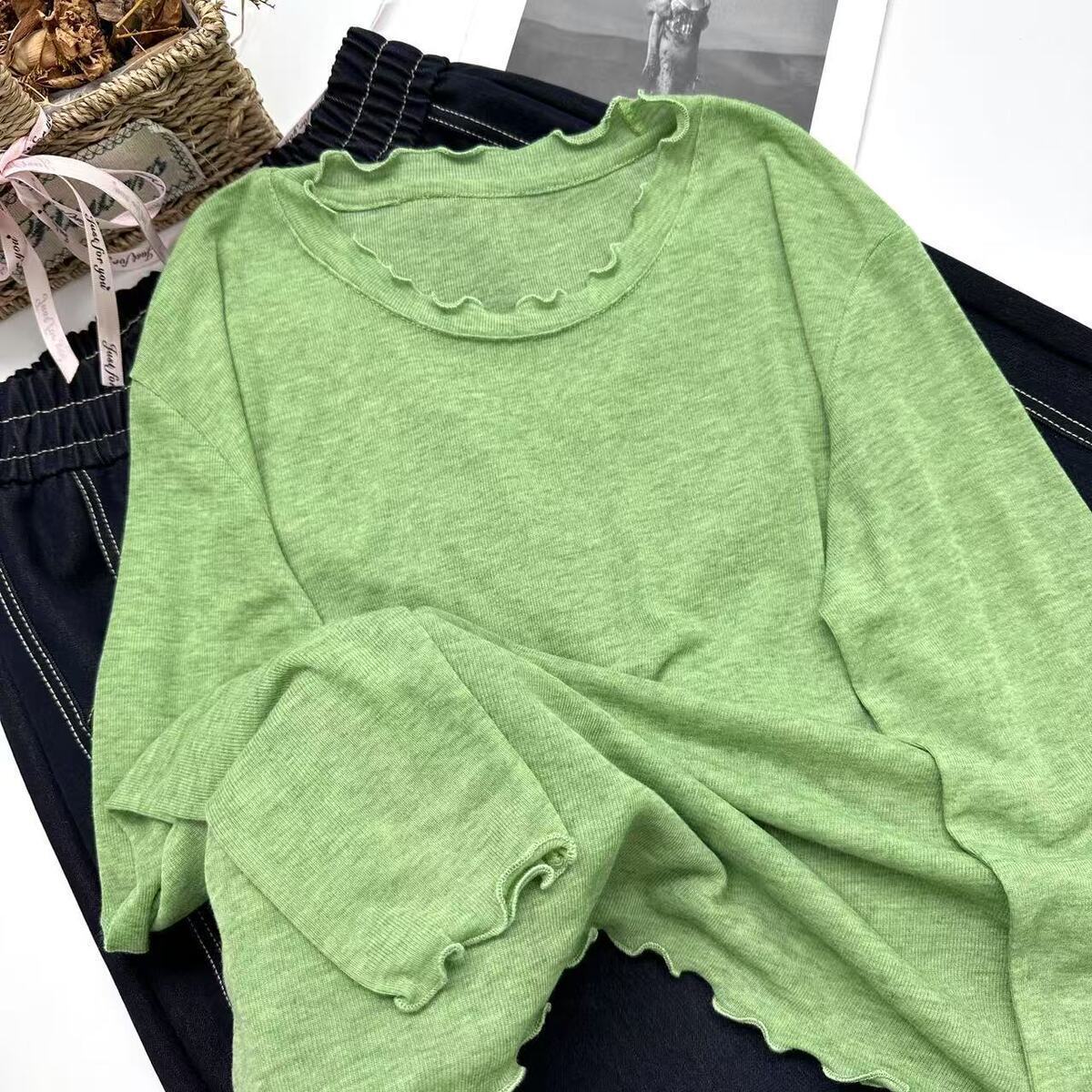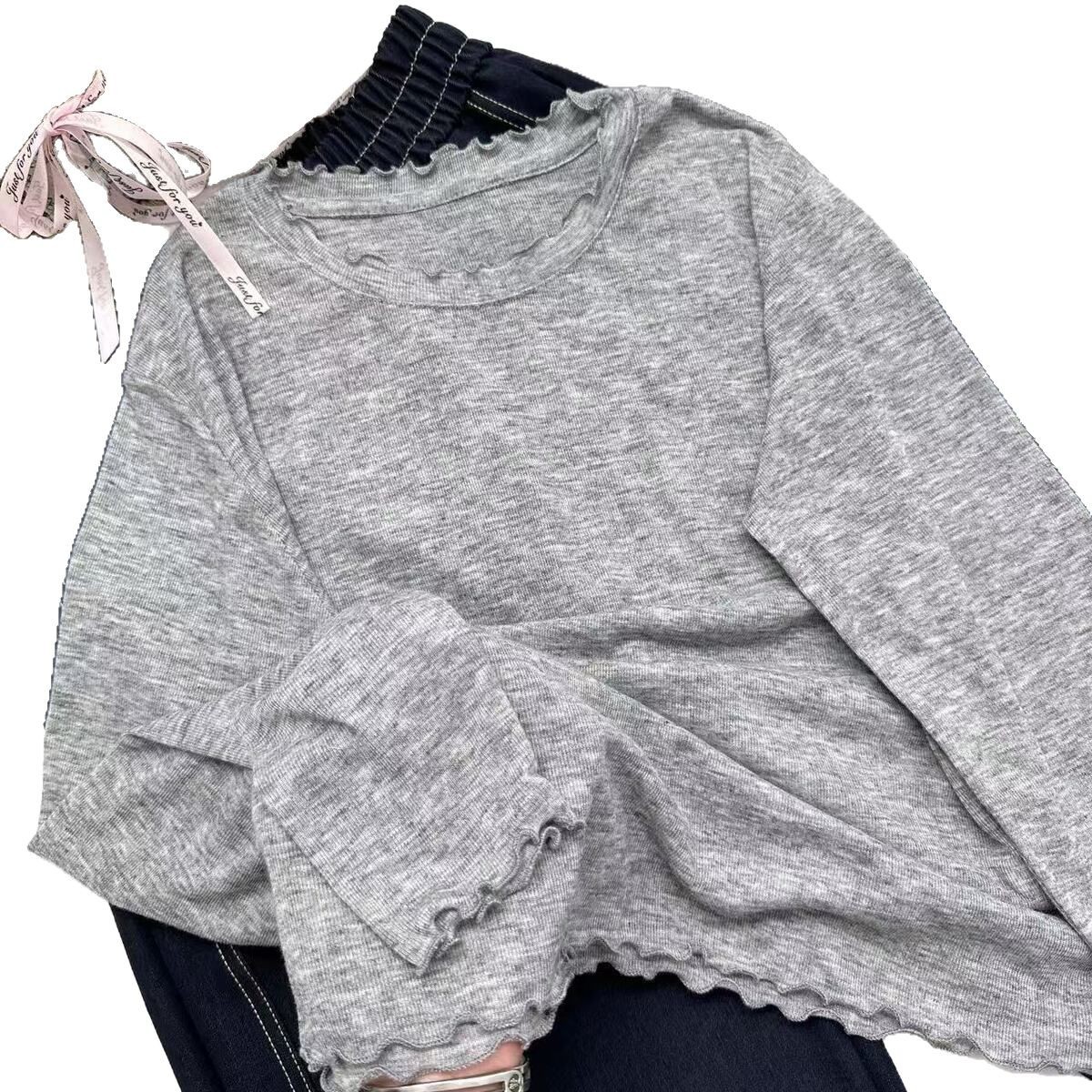 Обнаженная кожа чувствует себя очень мягкой ~ Корейский деревянный ушной край сплошной цвет простой вязаный свитер с длинными рукавами Y6617