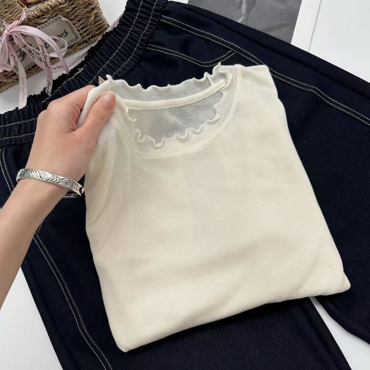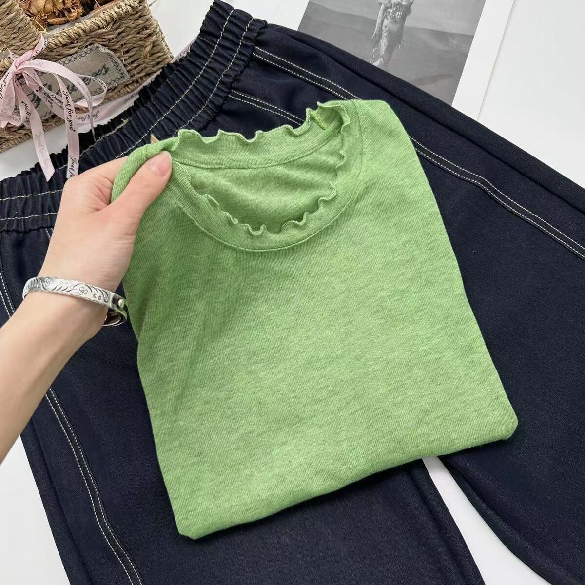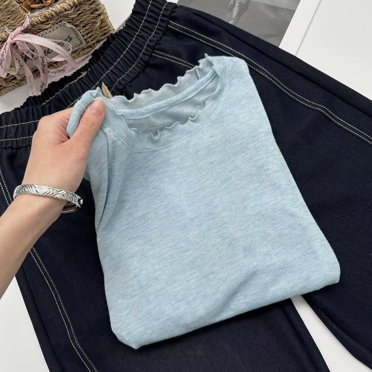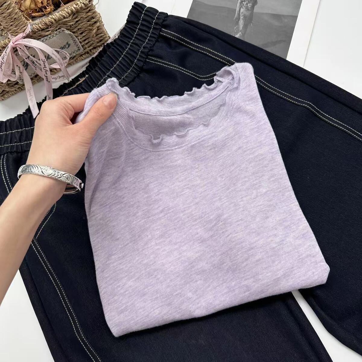 Обнаженная кожа чувствует себя очень мягкой ~ Корейский деревянный ушной край сплошной цвет простой вязаный свитер с длинными рукавами Y6617
