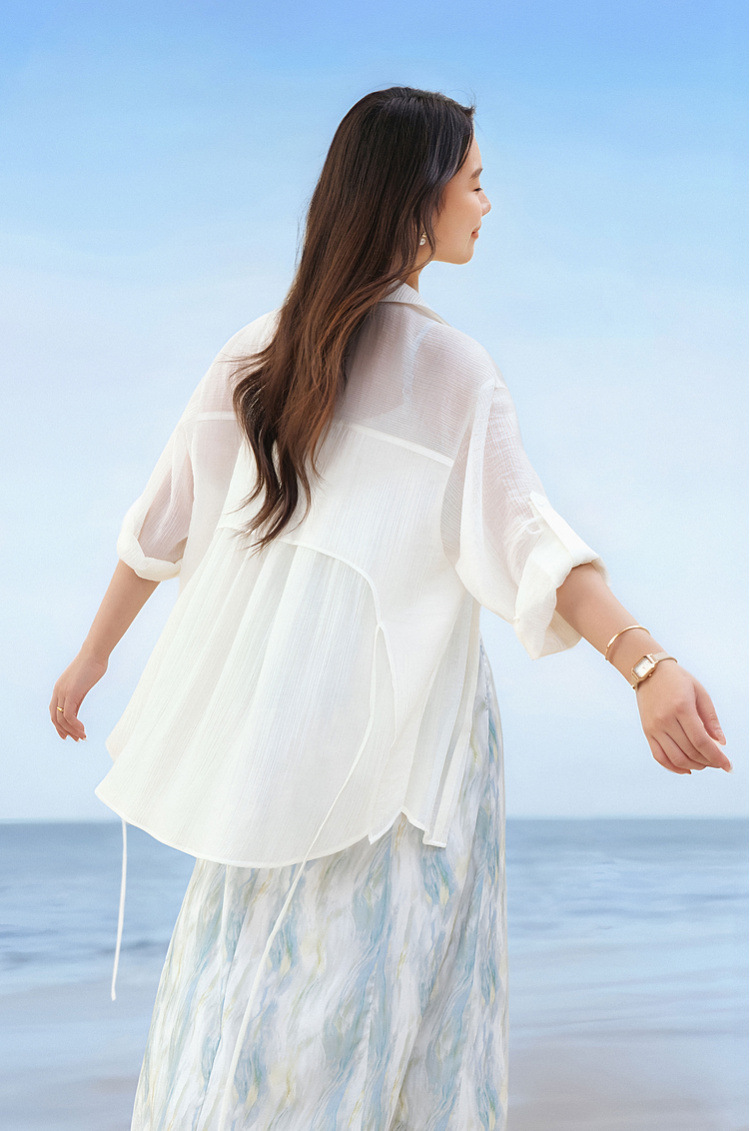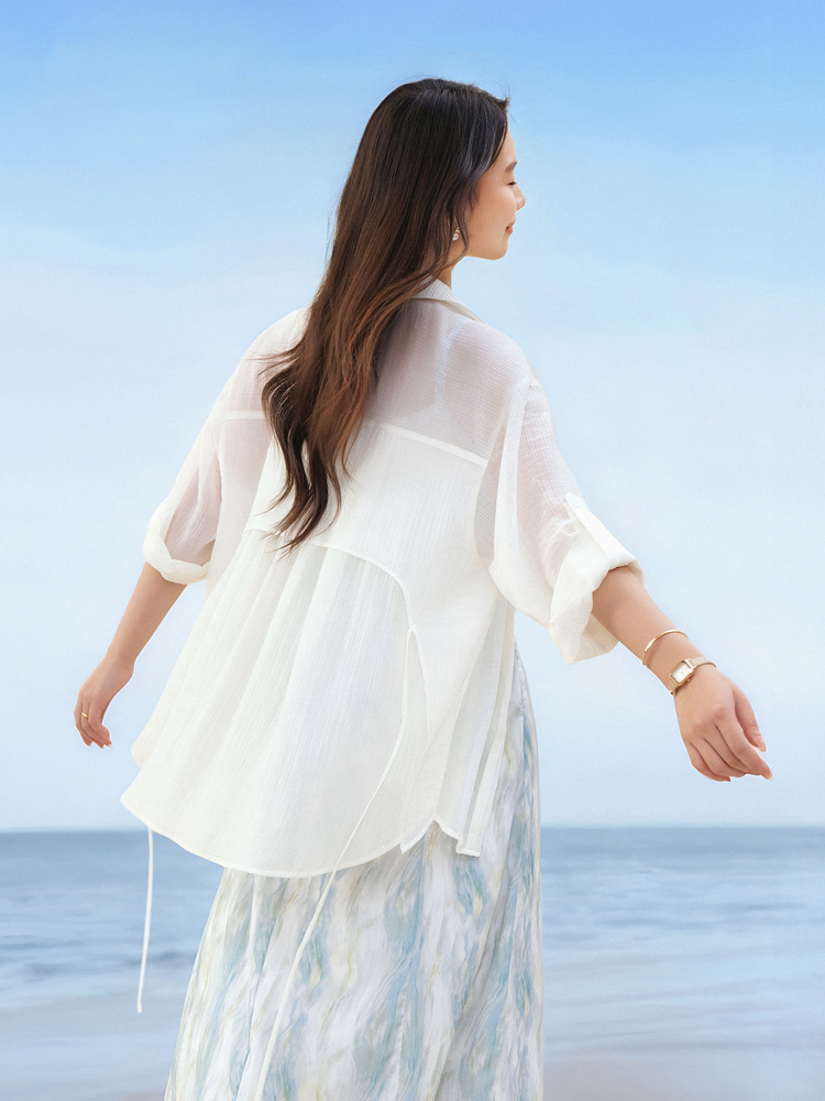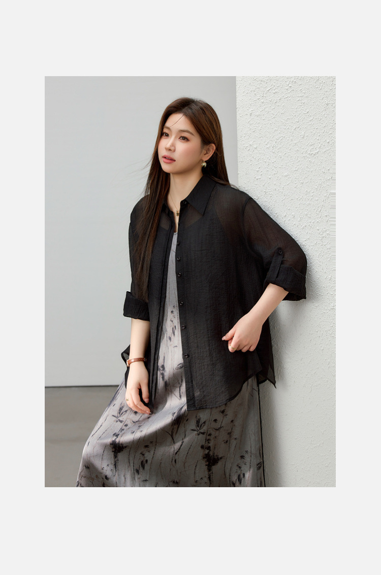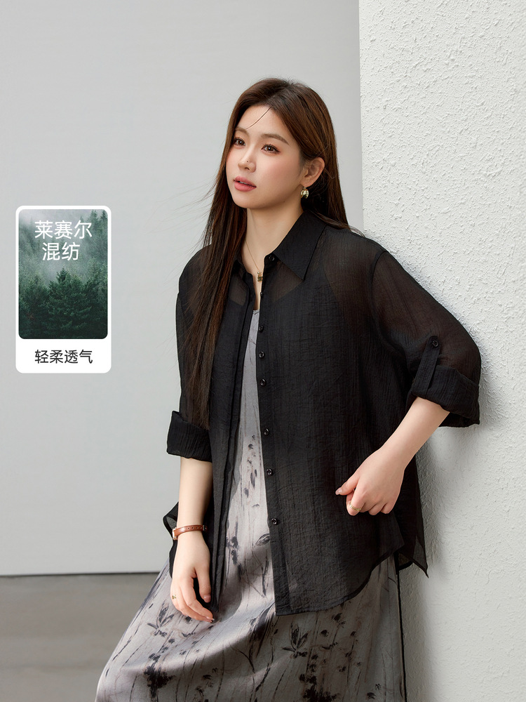 [Dusk] Легкая прозрачная рубашка из лиоцелла в ленивом стиле, тонкая и яркая женская рубашка больших размеров, летний новый стиль