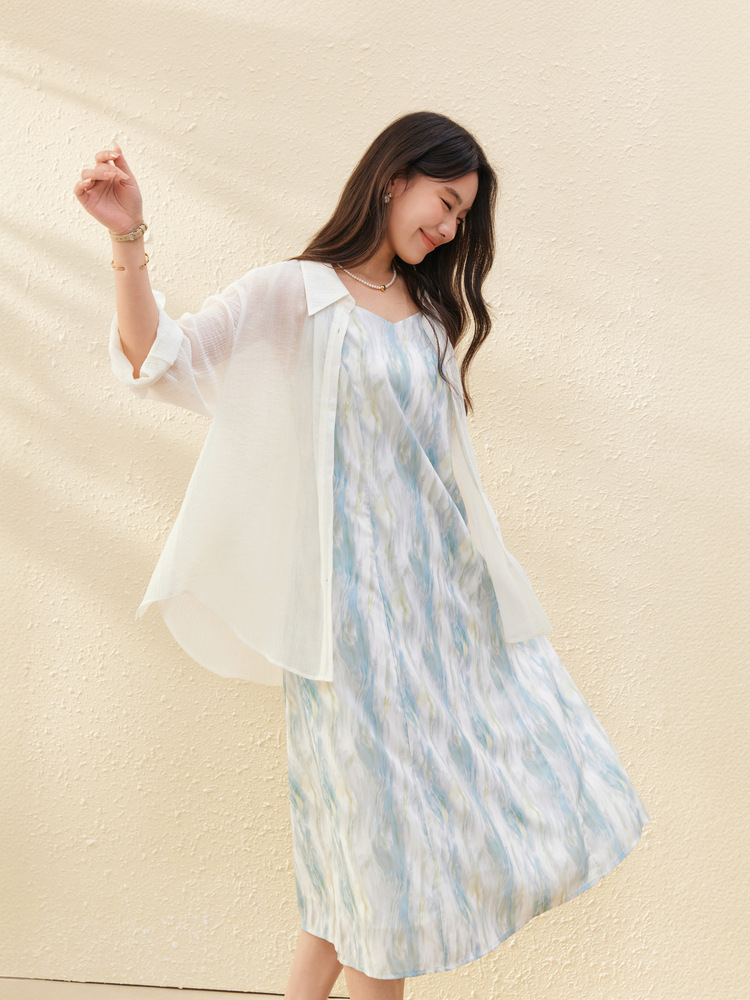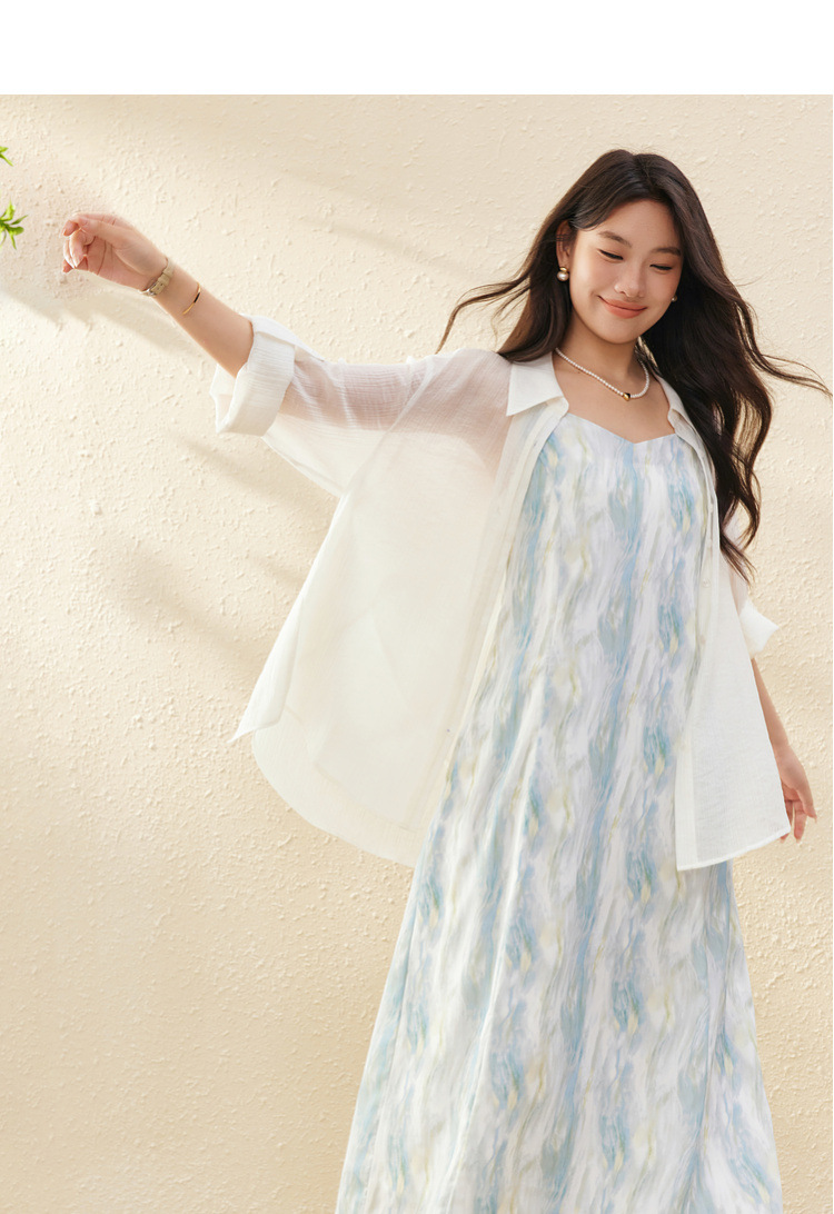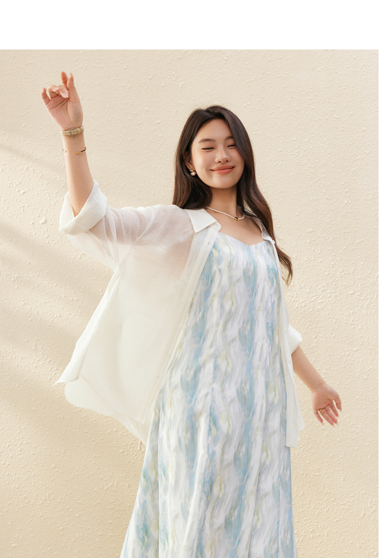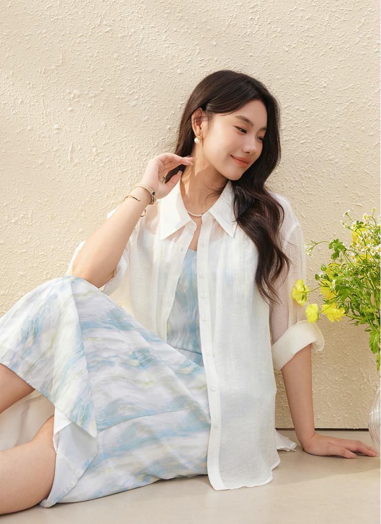 [Dusk] Легкая прозрачная рубашка из лиоцелла в ленивом стиле, тонкая и яркая женская рубашка больших размеров, летний новый стиль