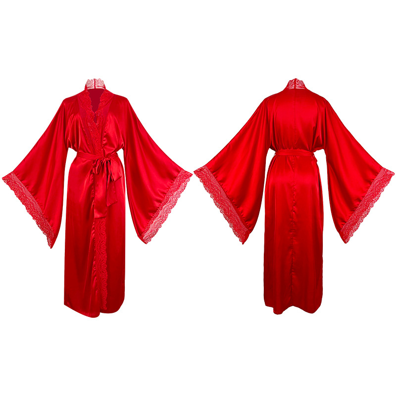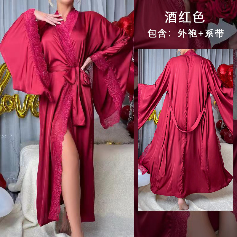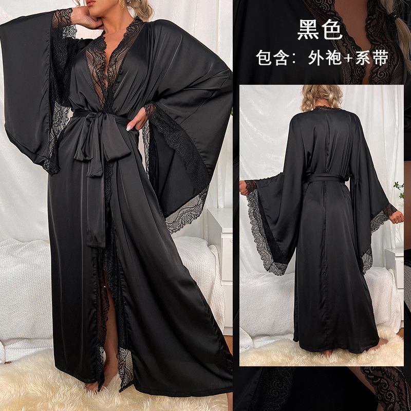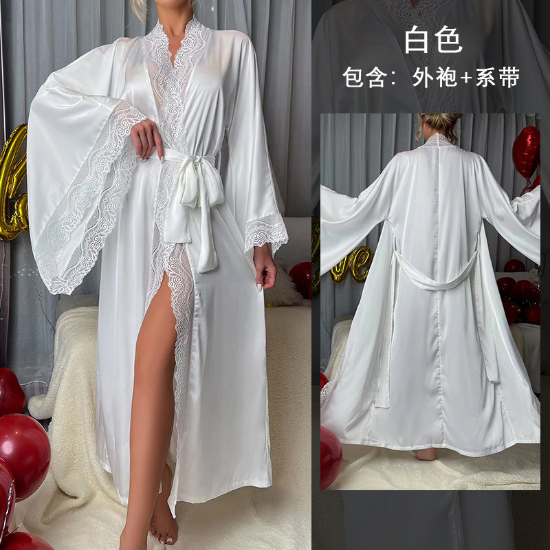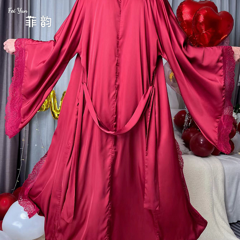 Трансграничные новые атласные длинные пижамы женские кружева легкие и роскошные длинные рукава прохладный халат халат домашняя одежда женщина 336