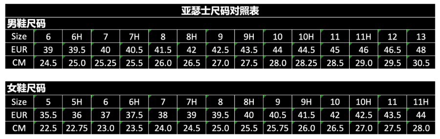 37 230 внутренняя длина; 37,5 235 внутренняя длина; 38 240 внутренняя длина; 39 245 внутренняя длина; 39,5 250 внутренняя длина; 40,5 255 внутренняя длина; 41,5 260 внутренняя длина; 42 265 внутренняя длина; 42,5 270 внутренняя длина; 43,5 275 внутренняя длина; 44 280 внутренняя длина; 44,5 282,5 внутренняя длина; 45 285 внутренняя длина; 46 290 внутренняя длина; 47 300 внутренняя длина