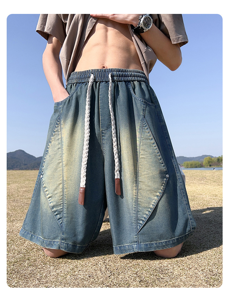JYF-C2302 летние свободные повседневные китайские брюки Американский стиль ретро прилив мойка легочный укороченные брюки
