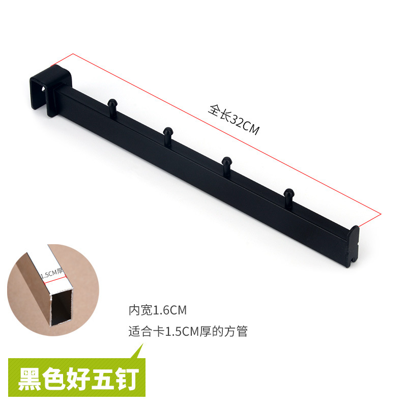 Крючок для вешалки в магазин одежды, квадратная трубка, застежка 1,5 см, плоская трубка, черный/белый, точка крепления для одежды, 5 крючков с гвоздями