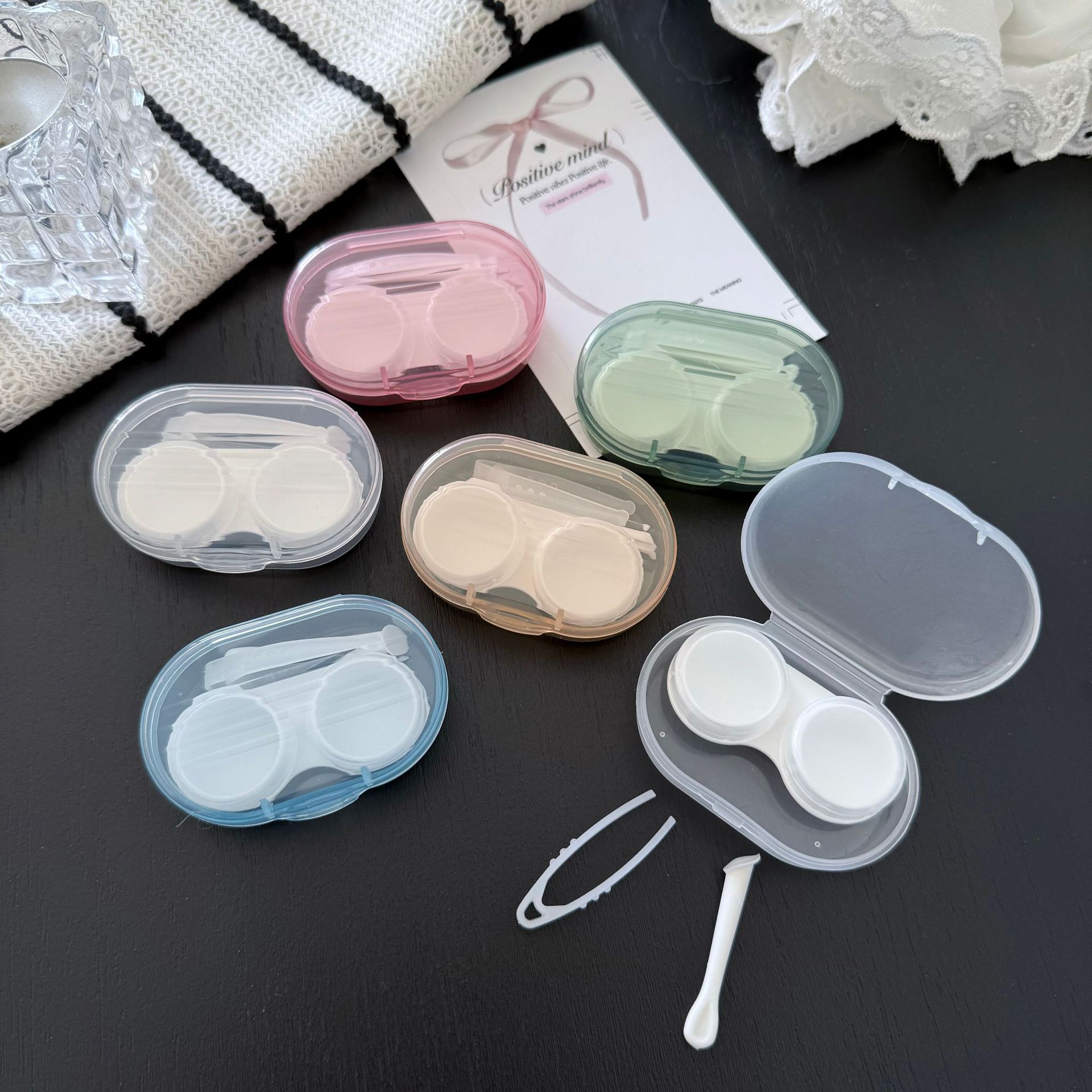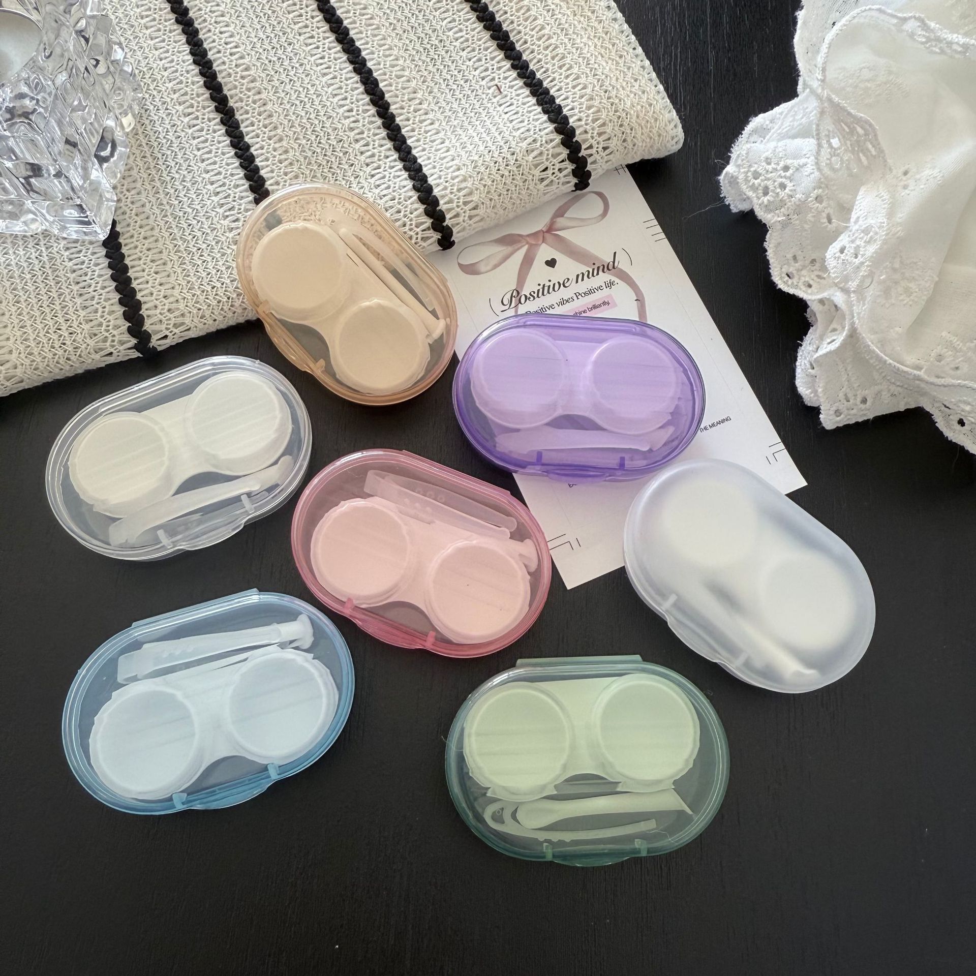 Простой прозрачный футляр для контактных линз ярких цветов, компактный, портативный футляр для контактных линз ультратонкой текстуры, оптовая коробка для ухода