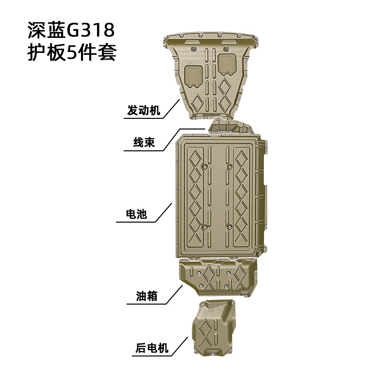 Защита днища для Changan Deep Blue G318, модели 2024-2025 годов, оригинальное расположение отверстий для крепления.