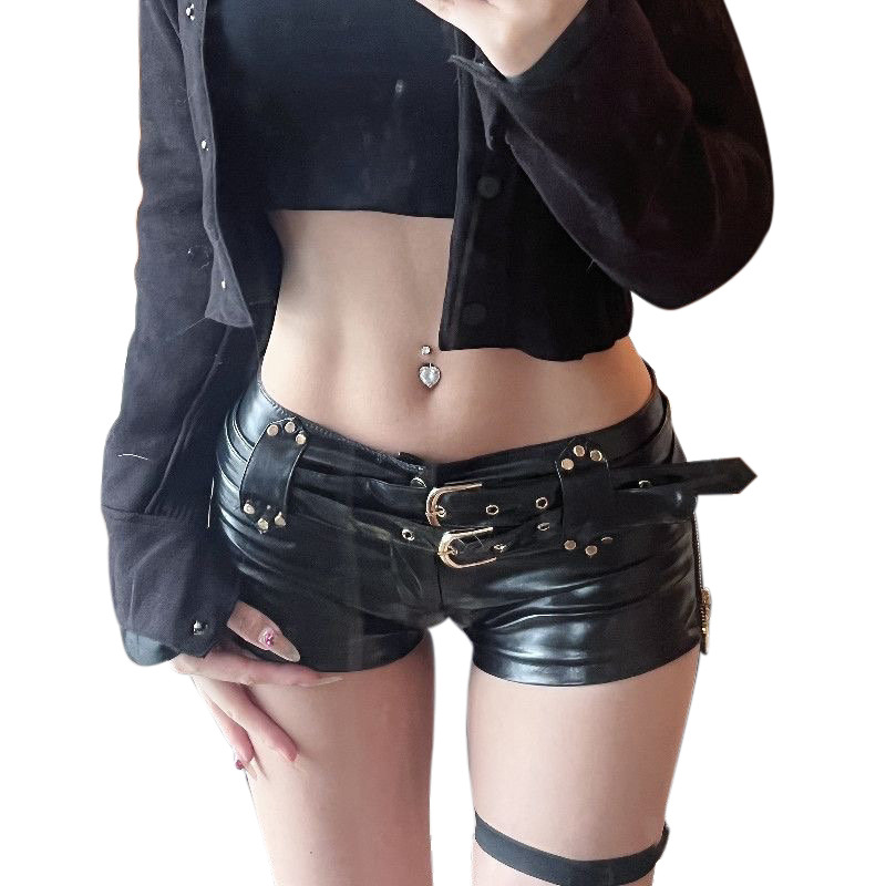 Наряд интернет-знаменитости в том же стиле, горячая девушка Y2K, ретро-ночной клуб, сексуальные ультракороткие шорты из искусственной кожи с низкой талией, облегающие бедра, брюки-ботинки для женщин.