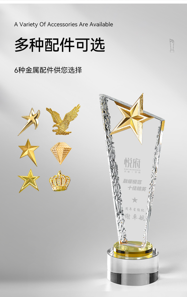 Глянцевая пятизвездочная модель; Модель короны; Трехмерная пятизвездочная модель; Модель пятизвездочного отеля Ша Ниан; Трофей Синьхуа-Большой; Трофей Синьхуа-маленький; Трофей Синхуа-Средний; Модель орла; Прямой нож Трофей-Большой; Прямой нож Трофей-Маленький; Прямой нож Trophy-средний; Алмазная модель