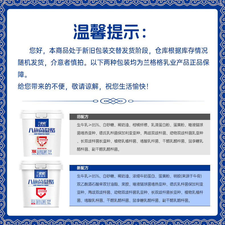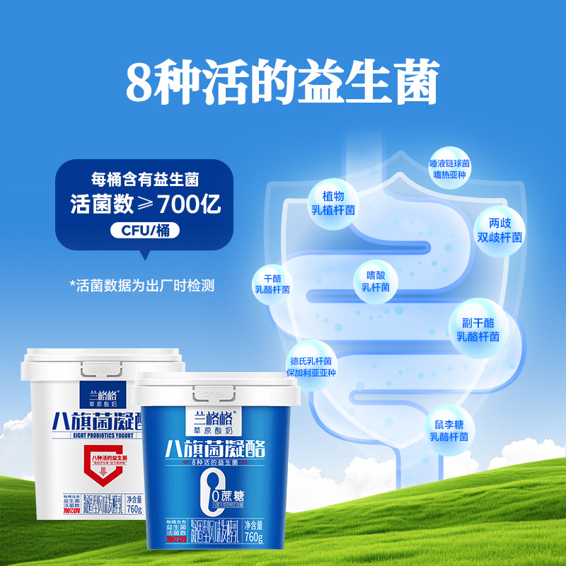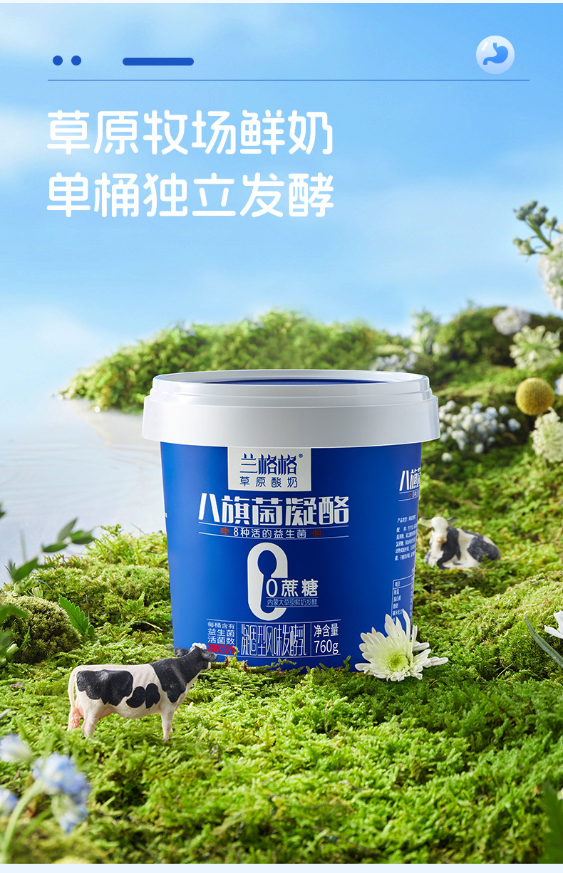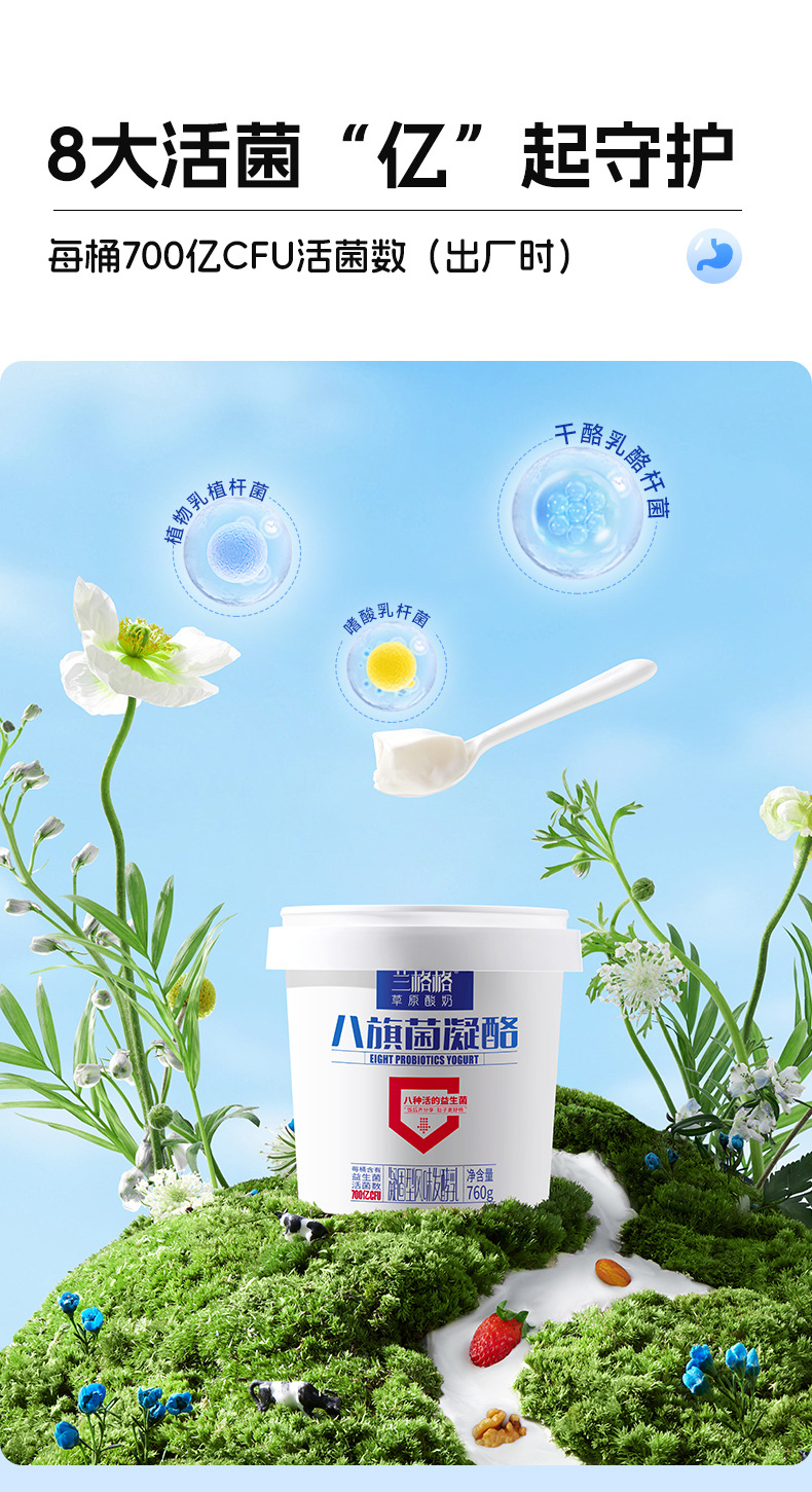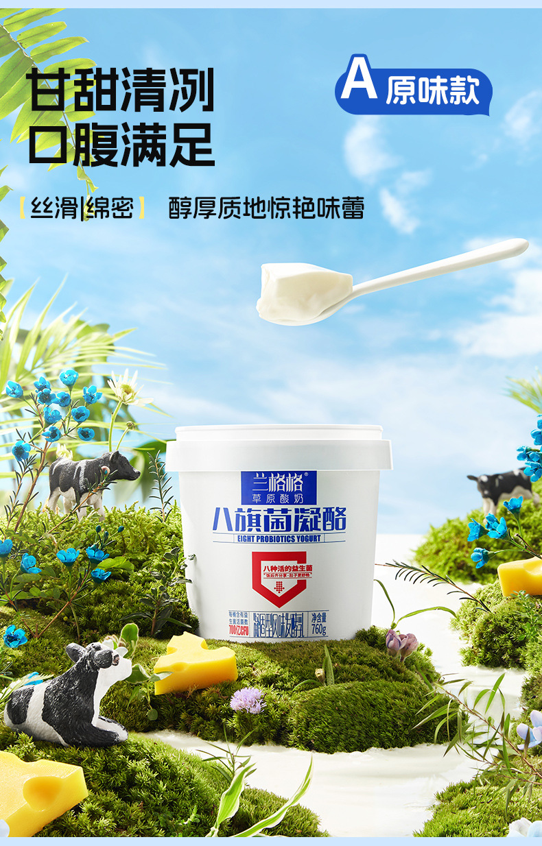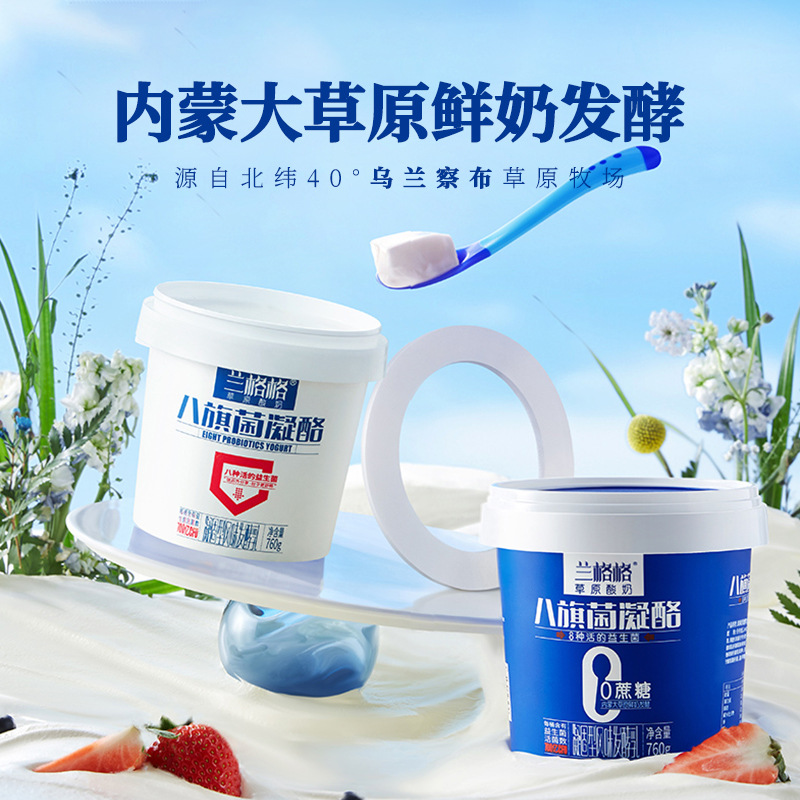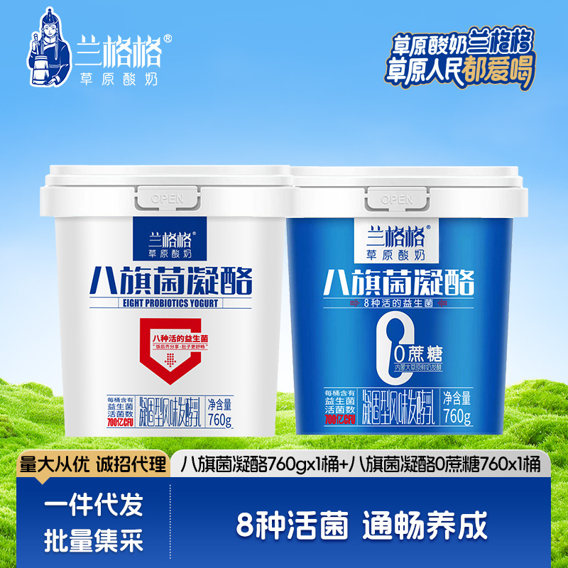 Йогурт Langege Prairie с восемью видами бактерий, без сахара/оригинальный вкус, 760 г*2, комбинированный, низкотемпературный, целая коробка, оптом.