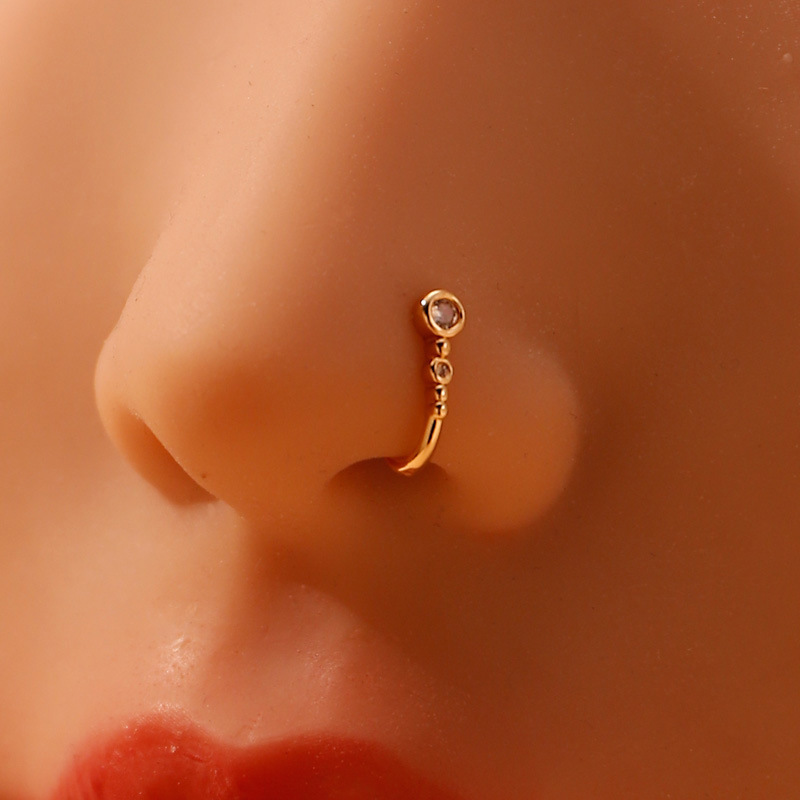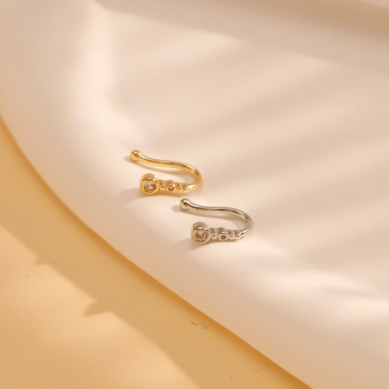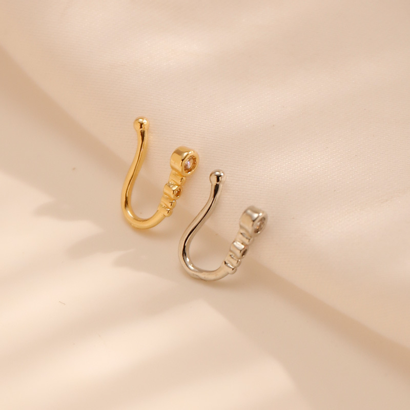 Оптовая продажа: европейские и американские персонализированные непробивные U-образные клипсы для носа, простые и стильные геометрические круглые носовые украшения со стразами