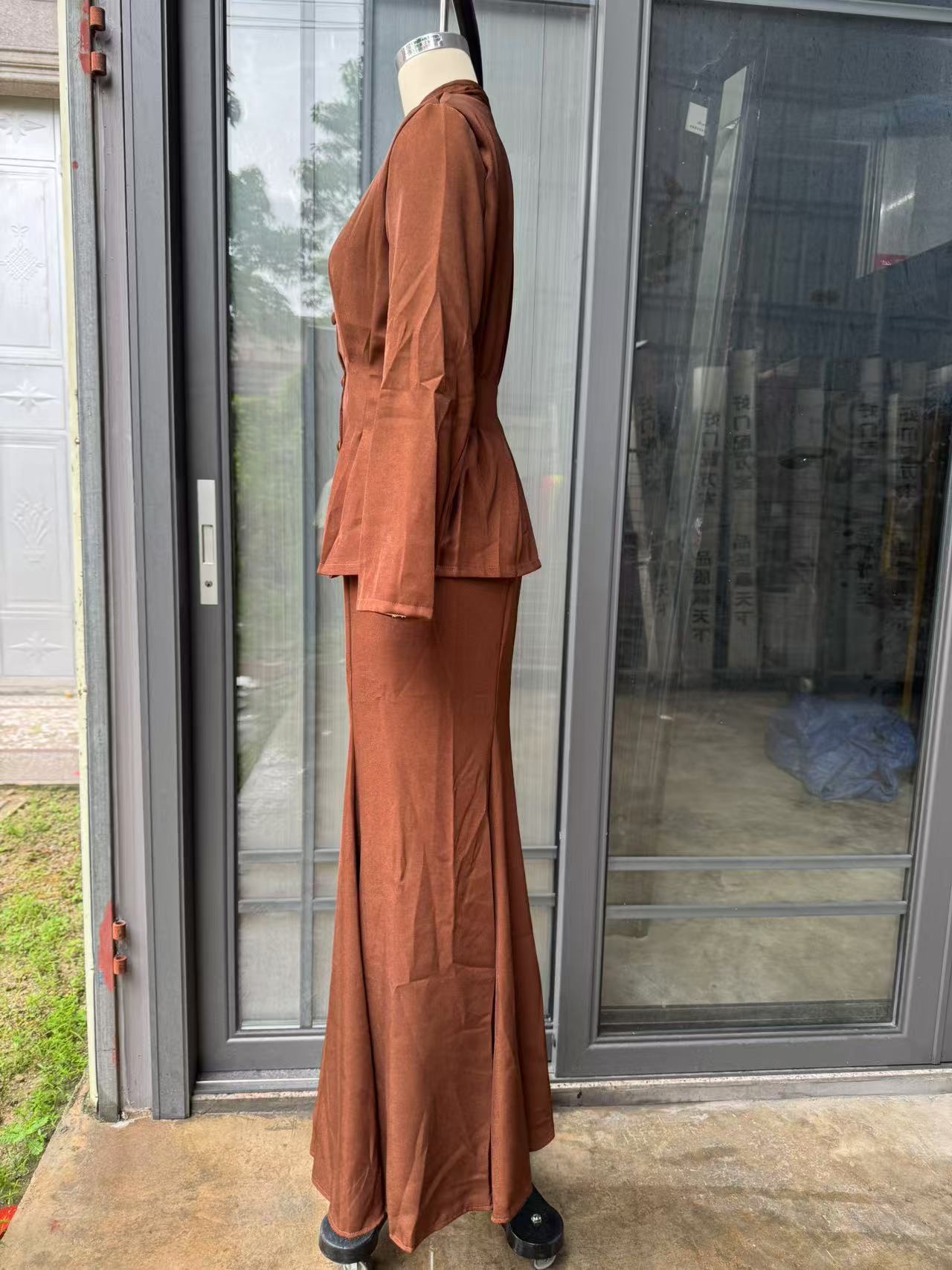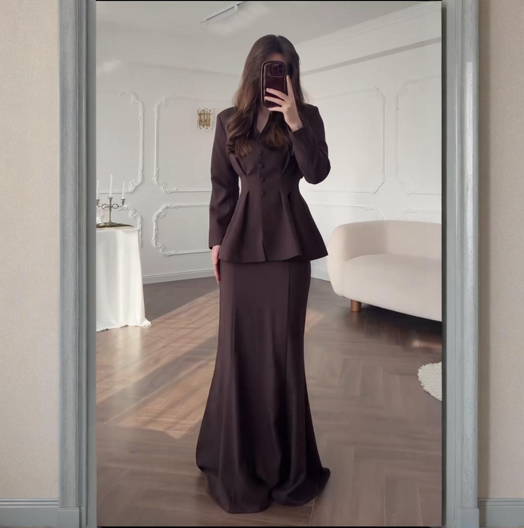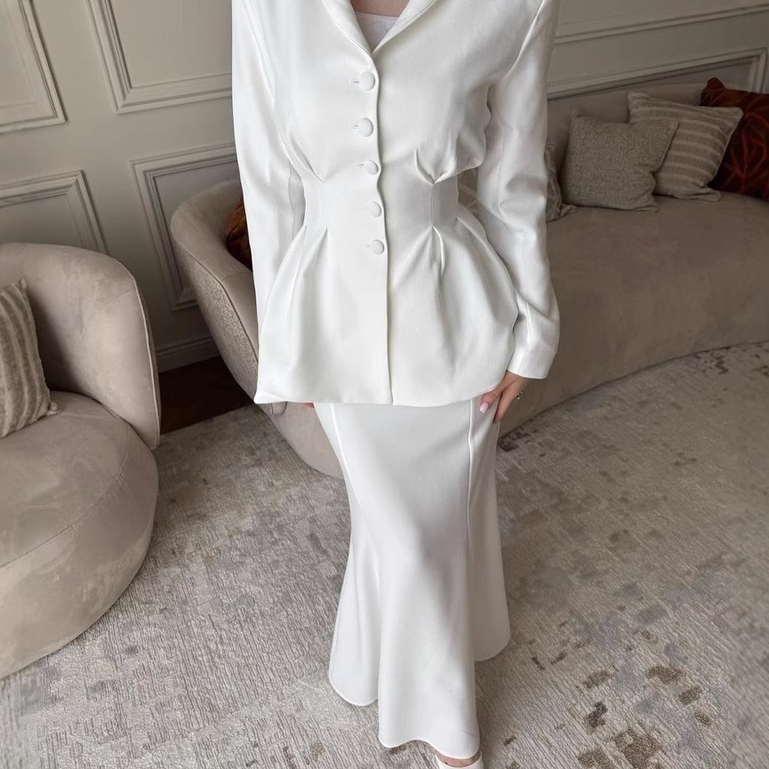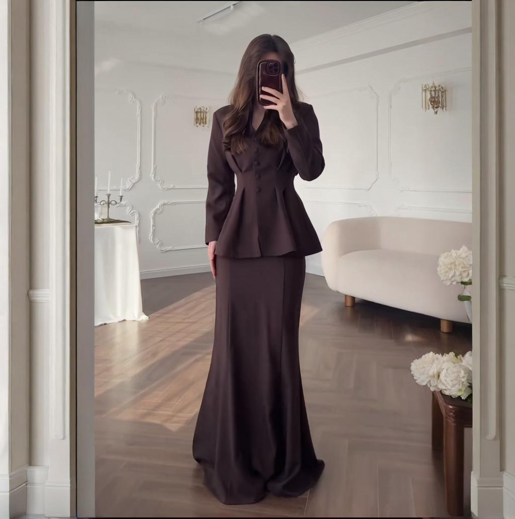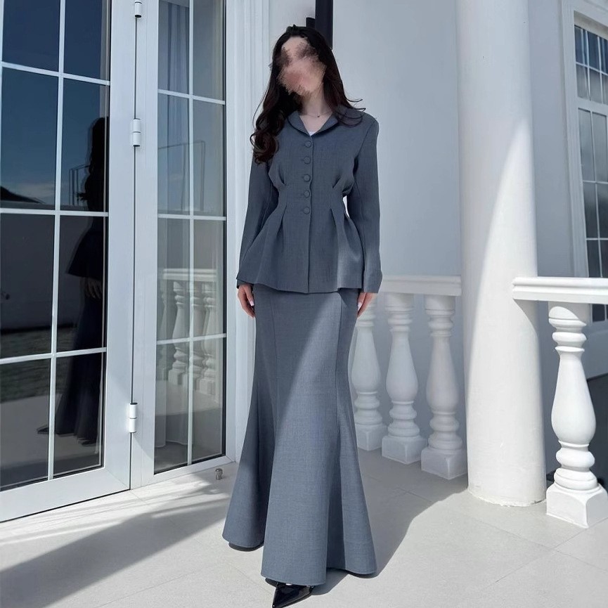 В наличии 2025 осень-зима новые европейские и американские товары для трансграничной торговли, элегантный кардиган slim-fit с длинным рукавом и свободная юбка в комплекте