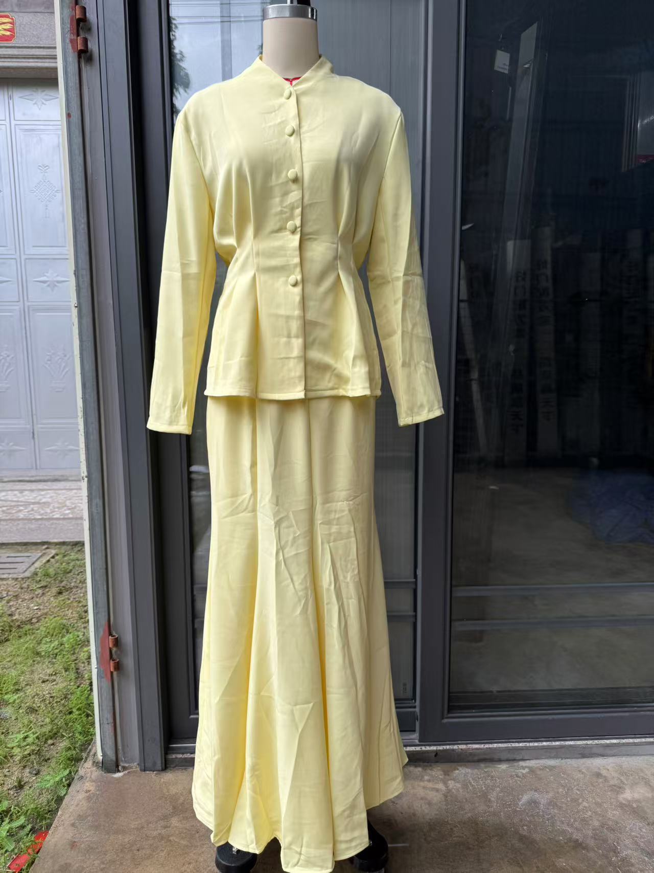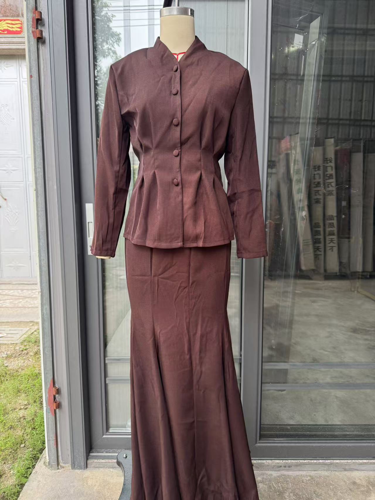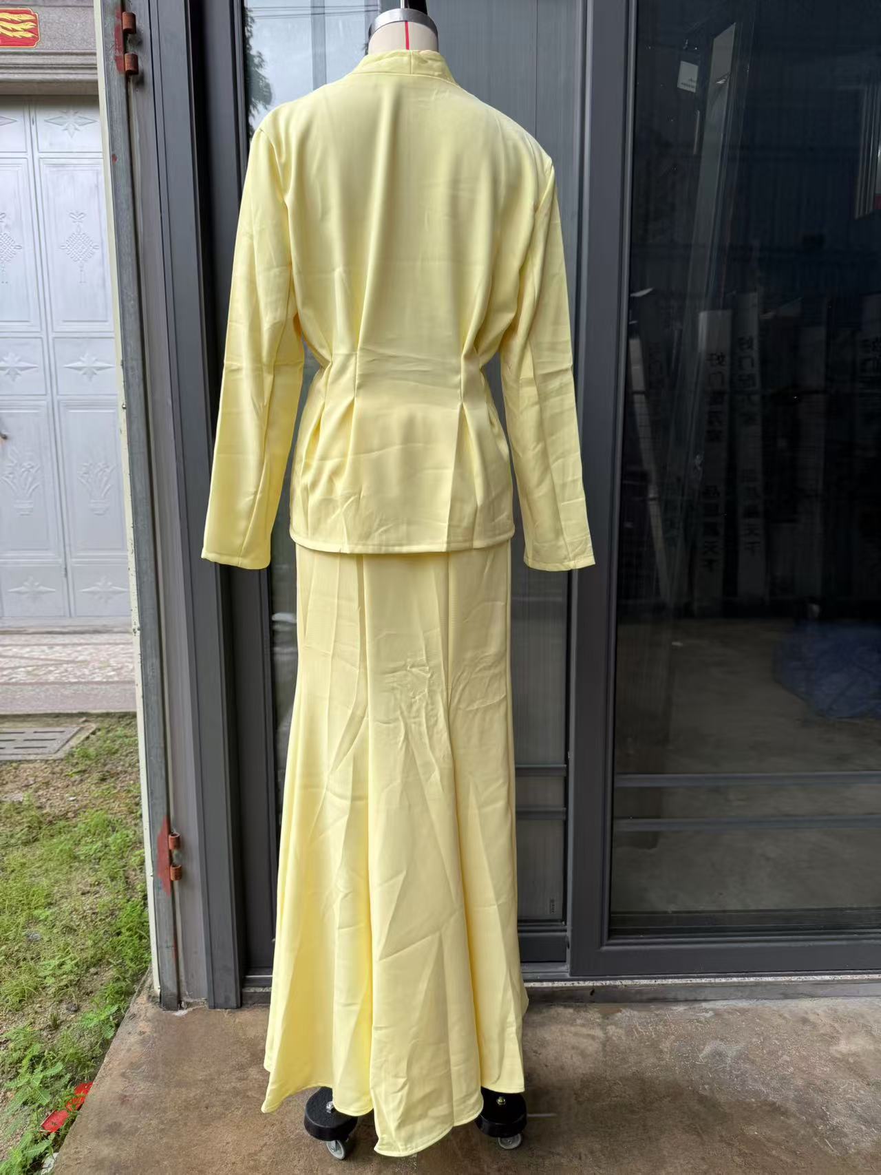 В наличии 2025 осень-зима новые европейские и американские товары для трансграничной торговли, элегантный кардиган slim-fit с длинным рукавом и свободная юбка в комплекте