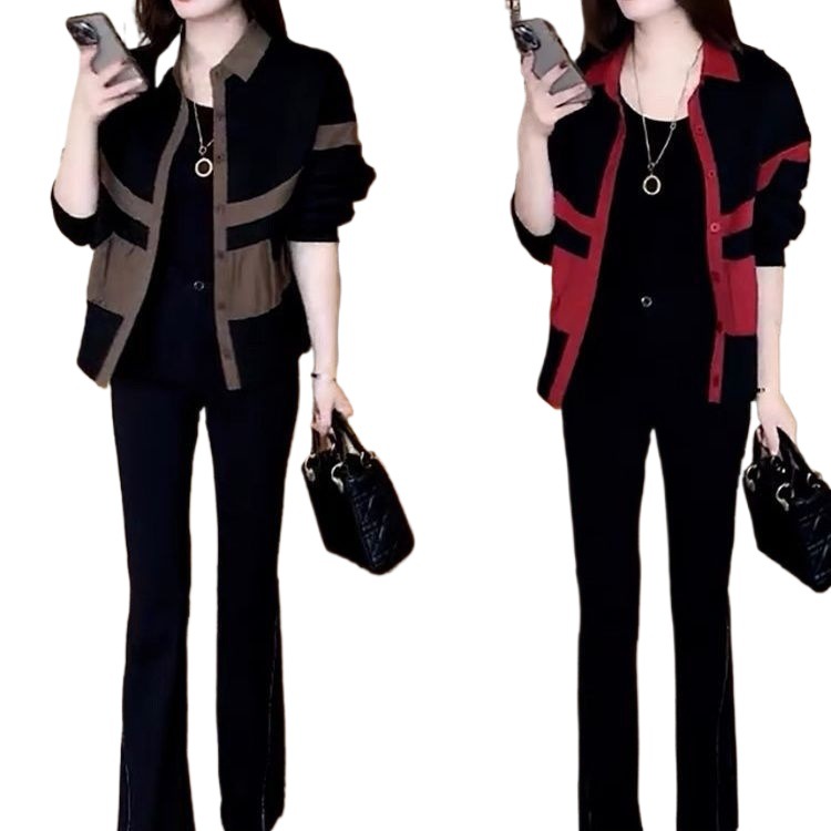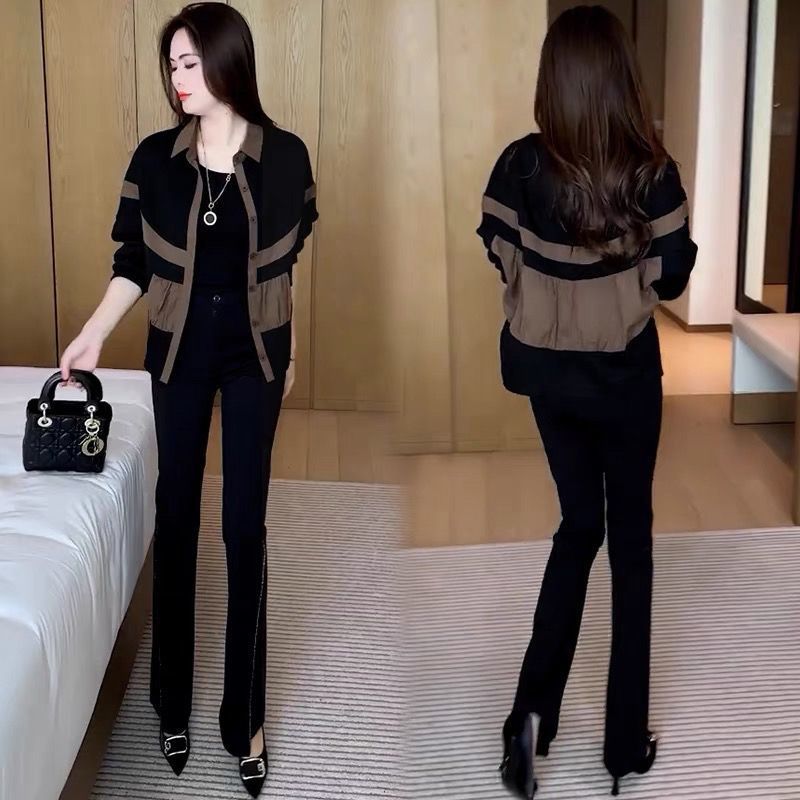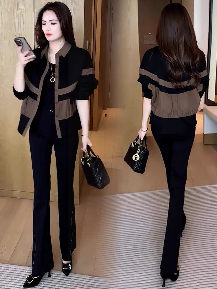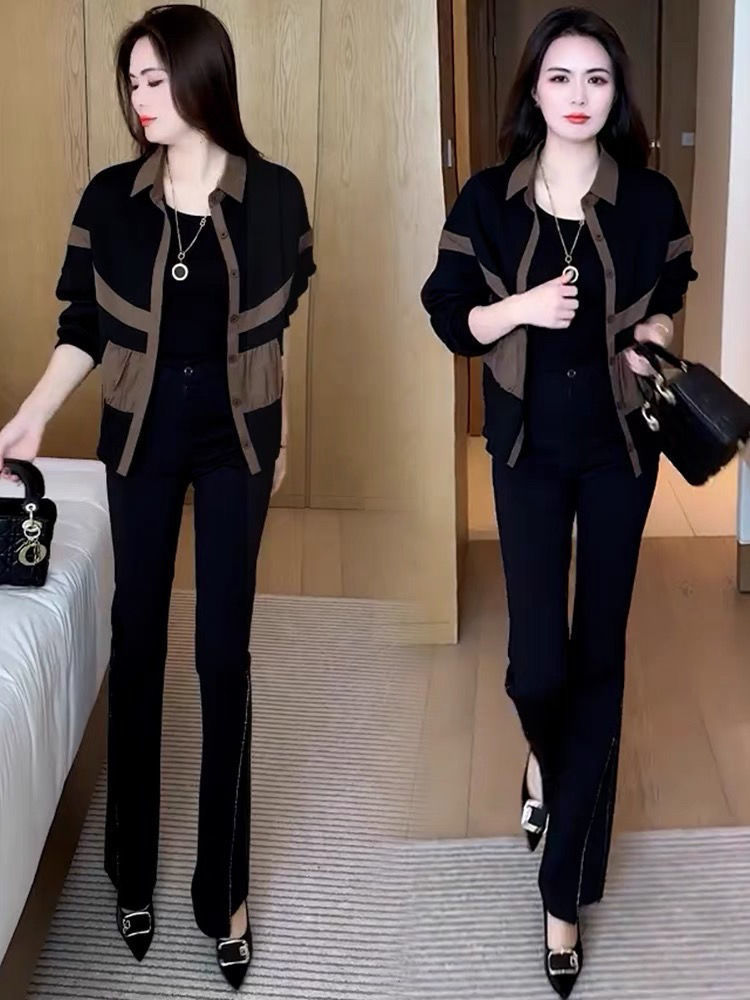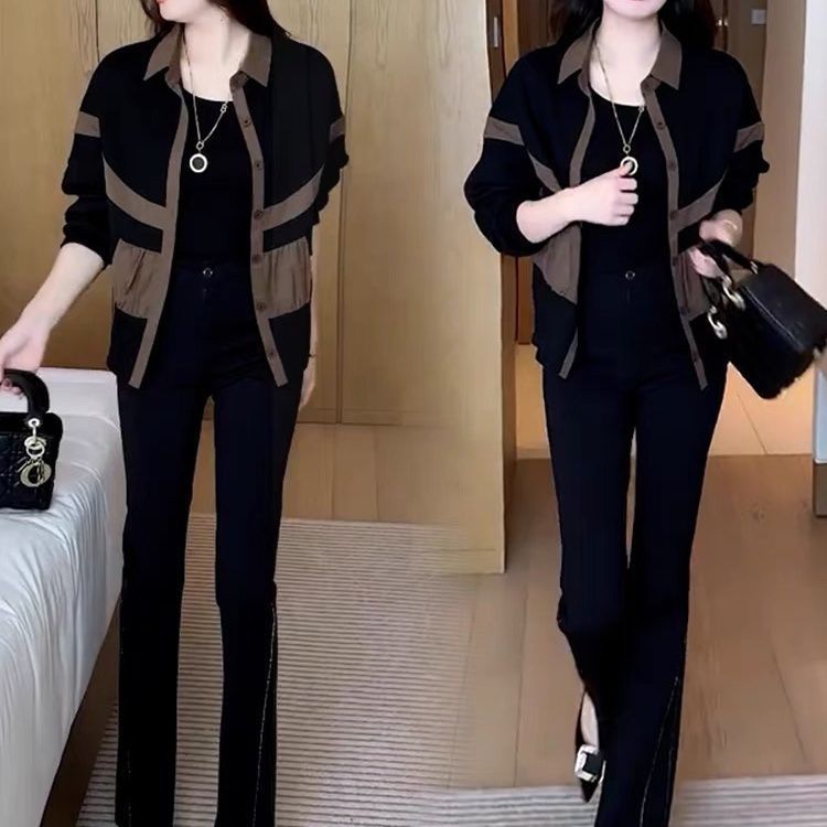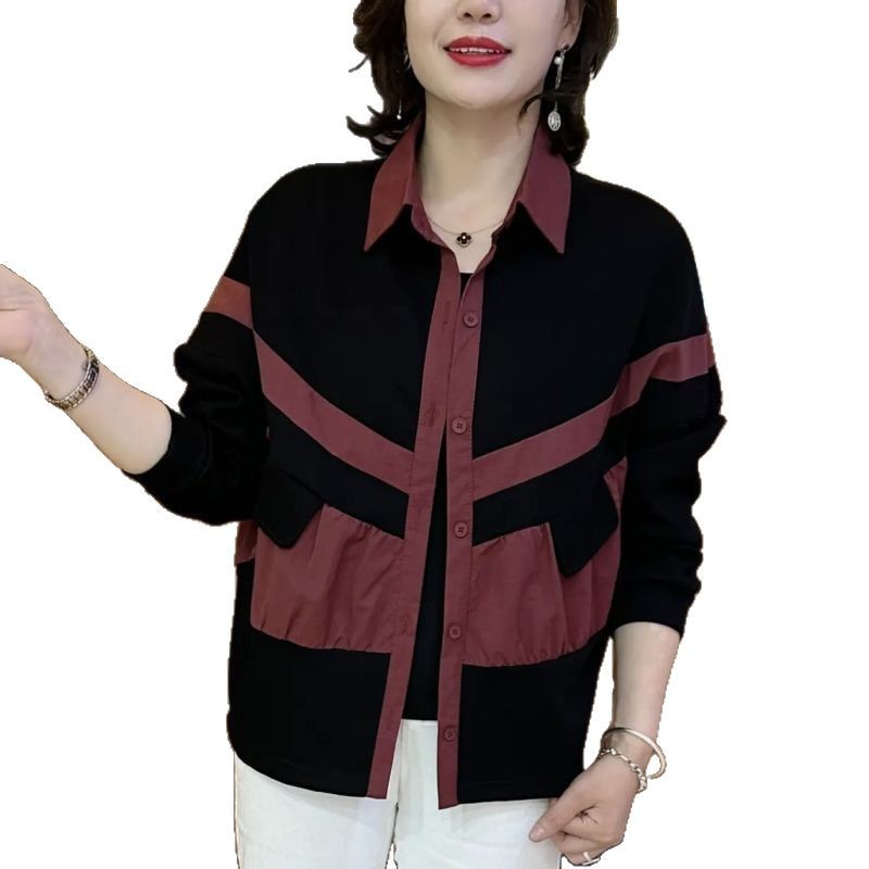 Трансграничная мода сращивание с цветным отворотом рубашка женская осень новая мама одежда дикая свободная повседневная с длинными рукавами