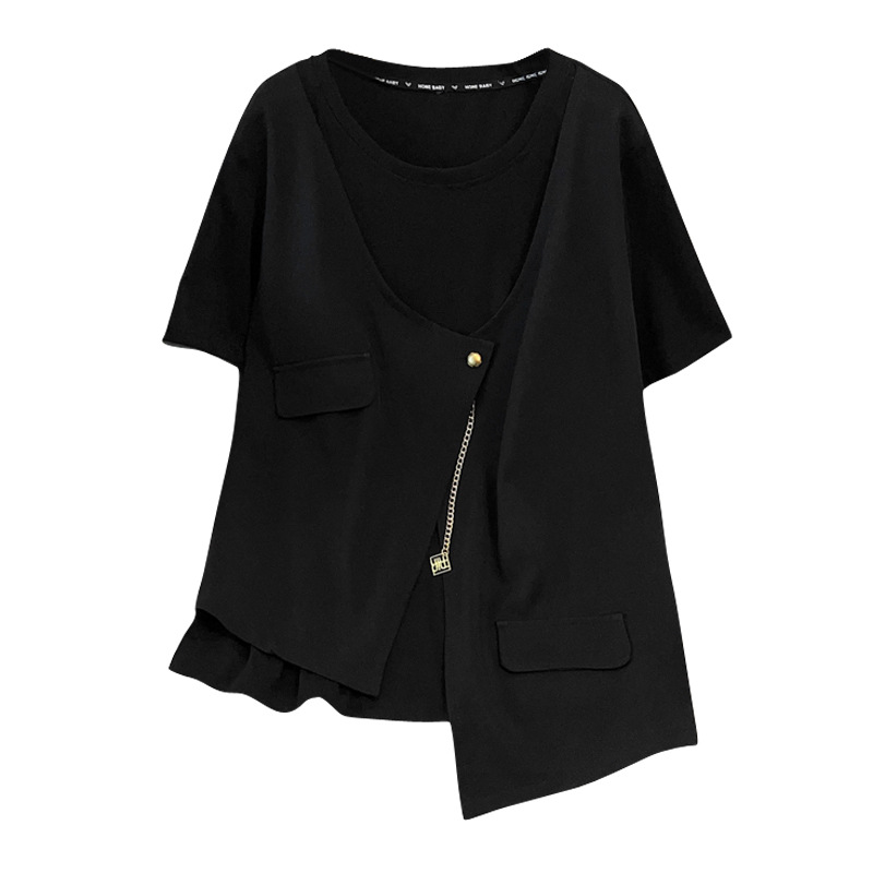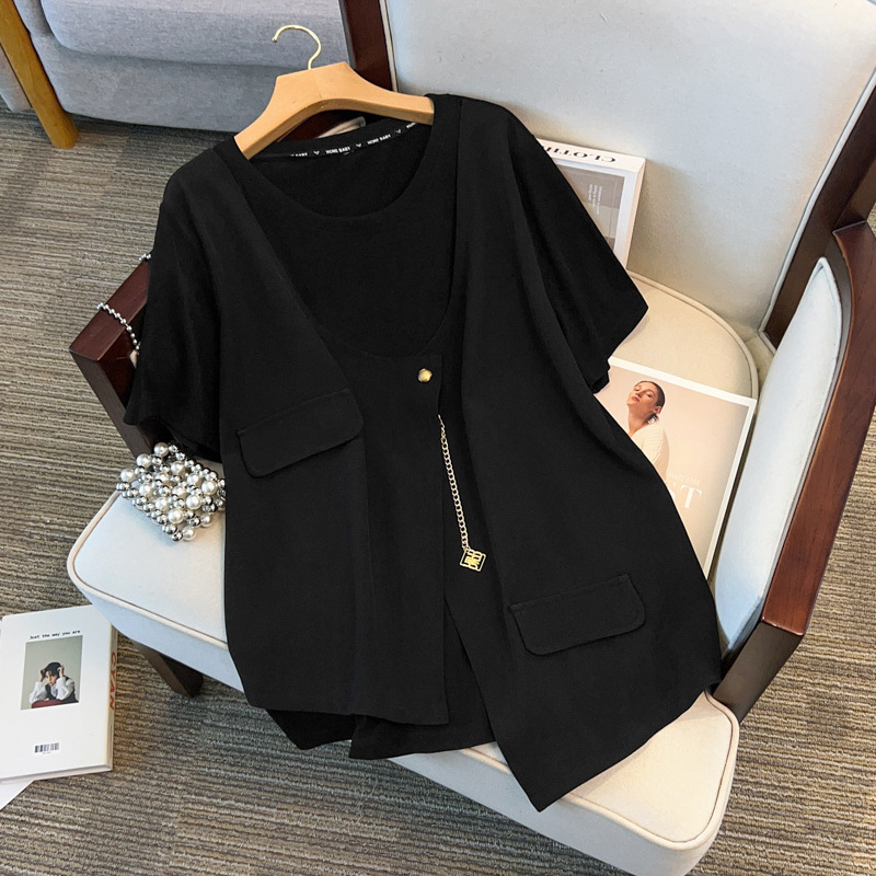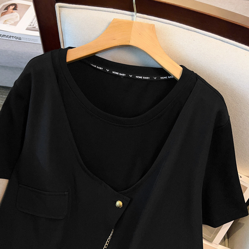 Бюст 150 больших размеров женский толстый мм плюс большой летний новый поддельный два свободных повседневных футболки 300 фунтов 3710