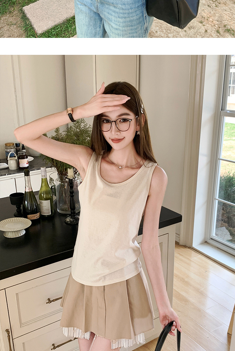 H925 снежный хлопчатобумажный камзоловый жилет для женщин летом носит рышковатое покрытие на дне с круглым вырезом без рукавов