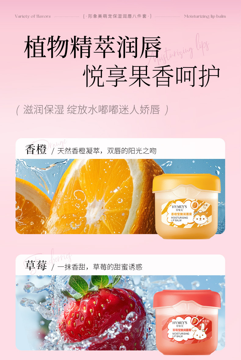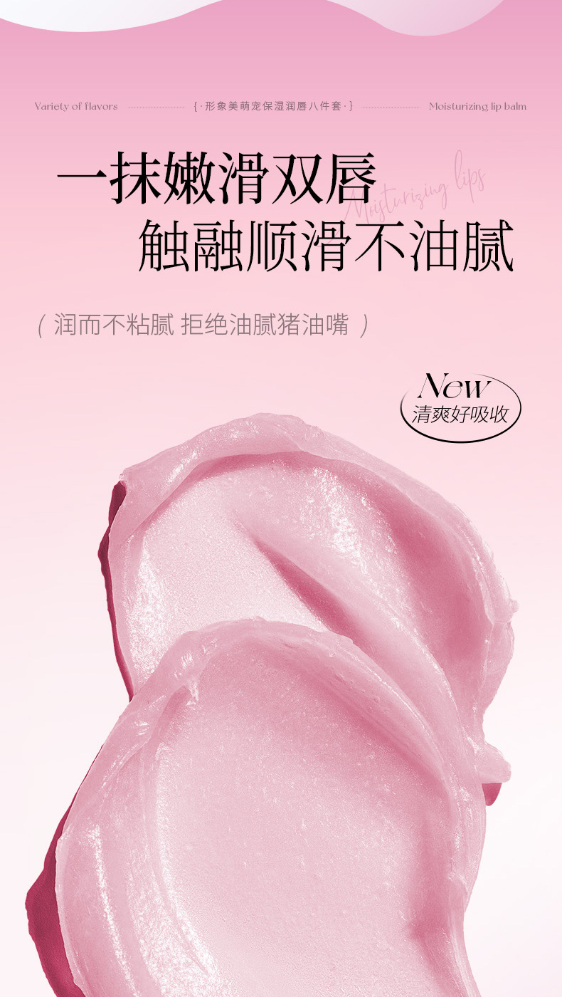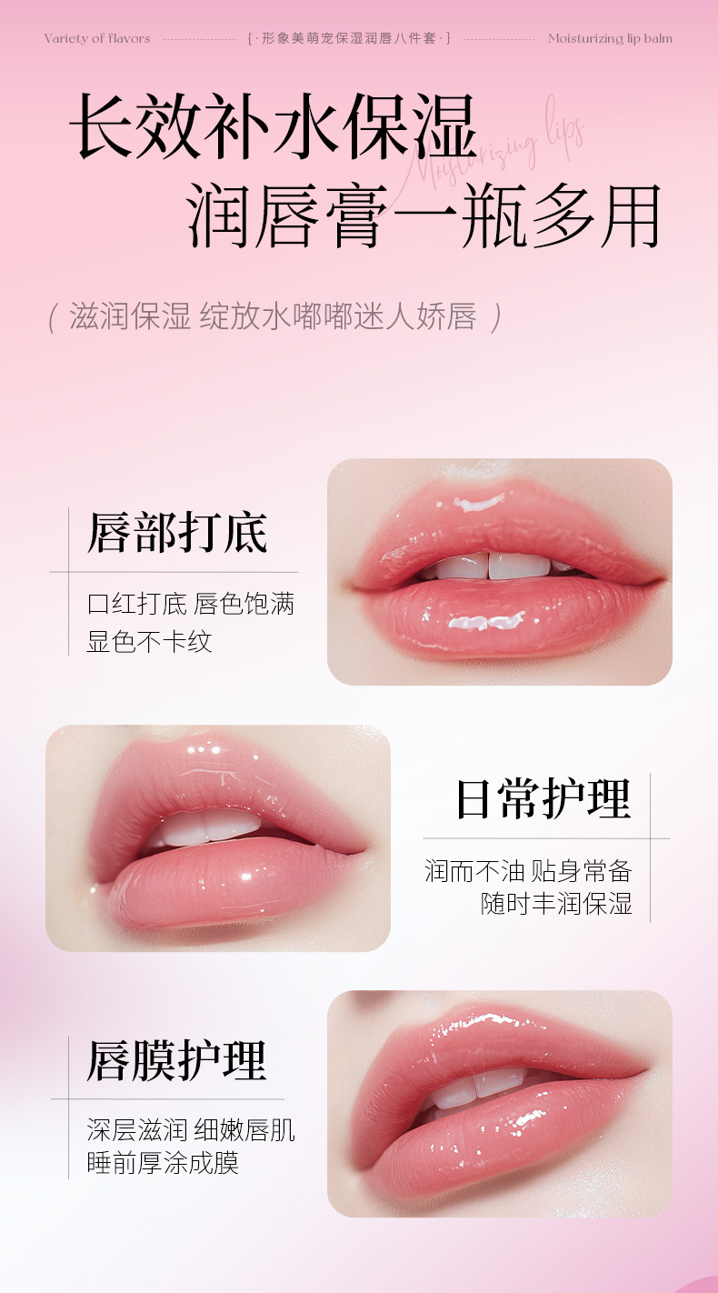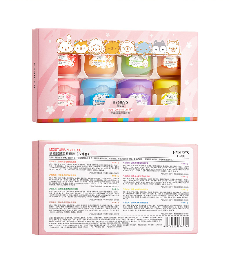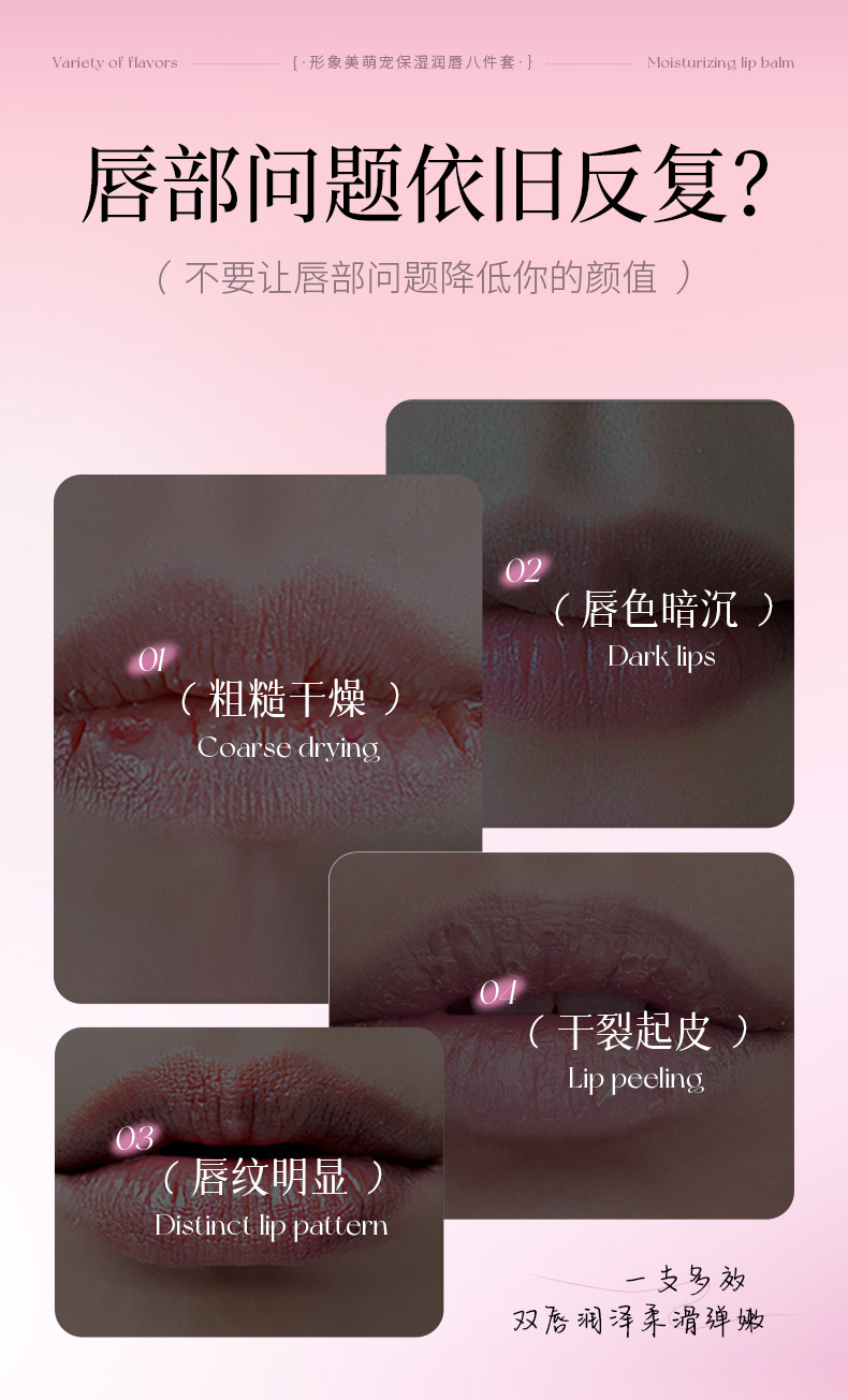 Image Beauty Cute Pet Увлажняющий набор бальзамов для губ (набор из восьми предметов) Увлажняющий, увлажняющий и предотвращающий высыхание растительный бальзам для губ оптом