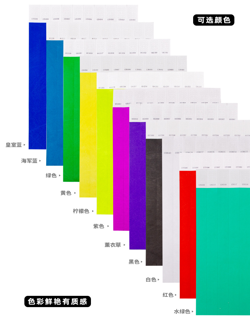 腕带式极为便捷,同时不同颜色的设计利于门票分类管理;