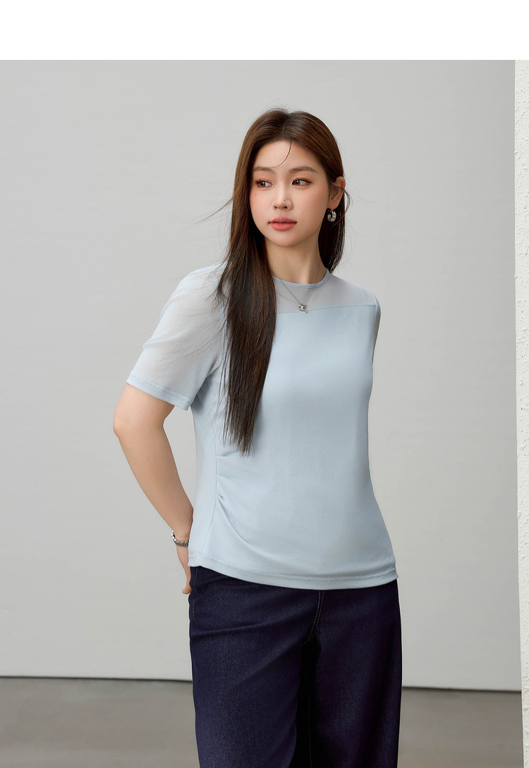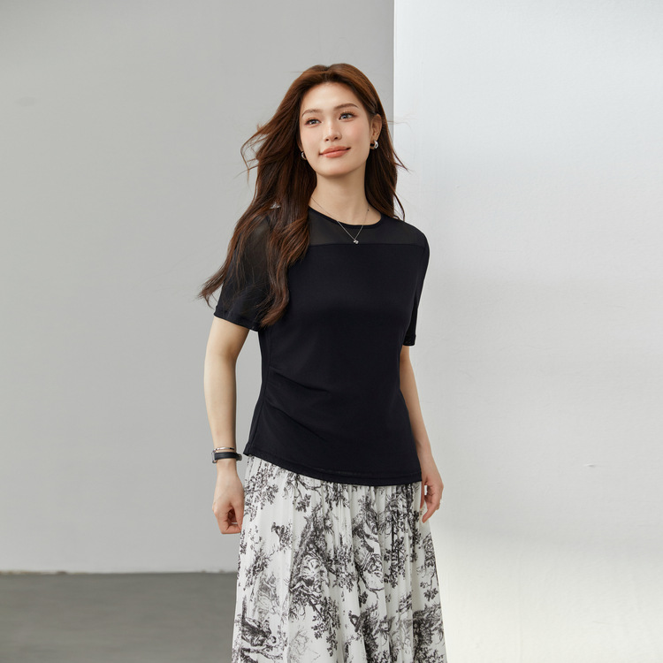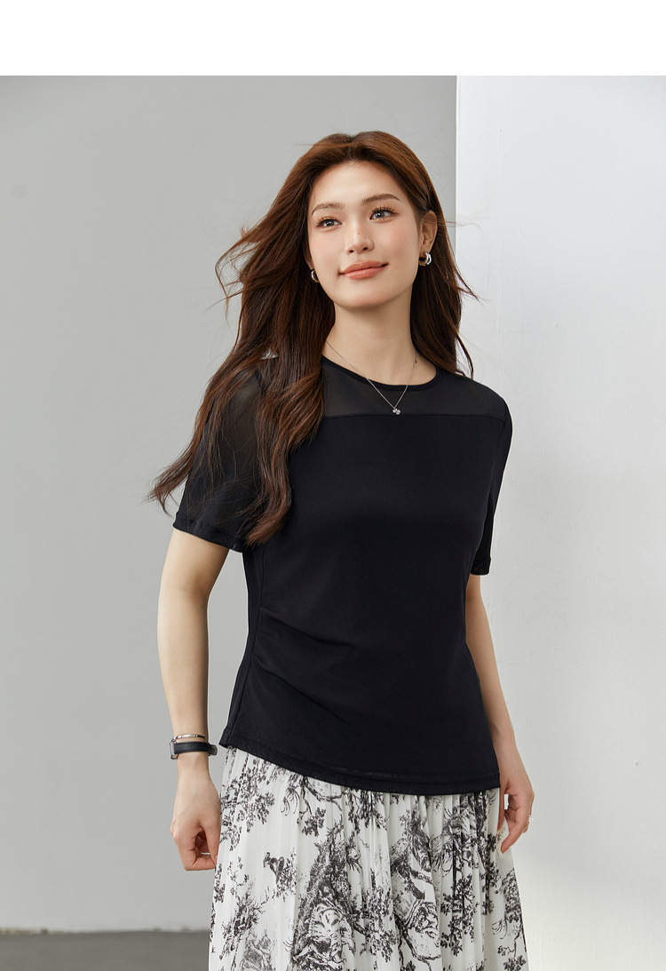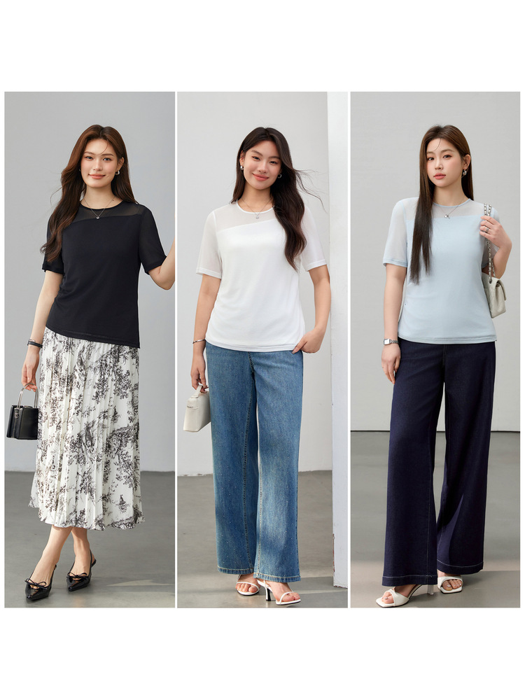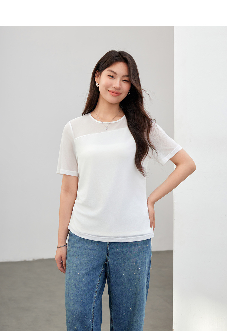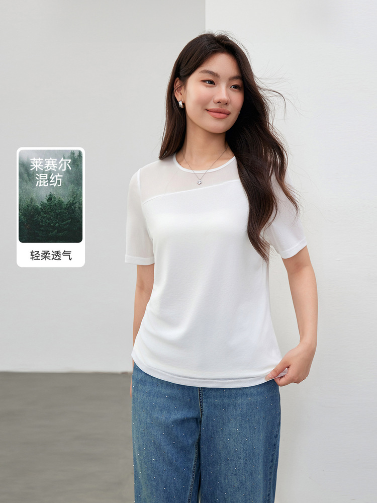[Дизайнерская плиссированная универсальная футболка из лиоцелла с круглым вырезом] Slim Show, женская футболка больших размеров, толщина мм 2025, летний новый стиль