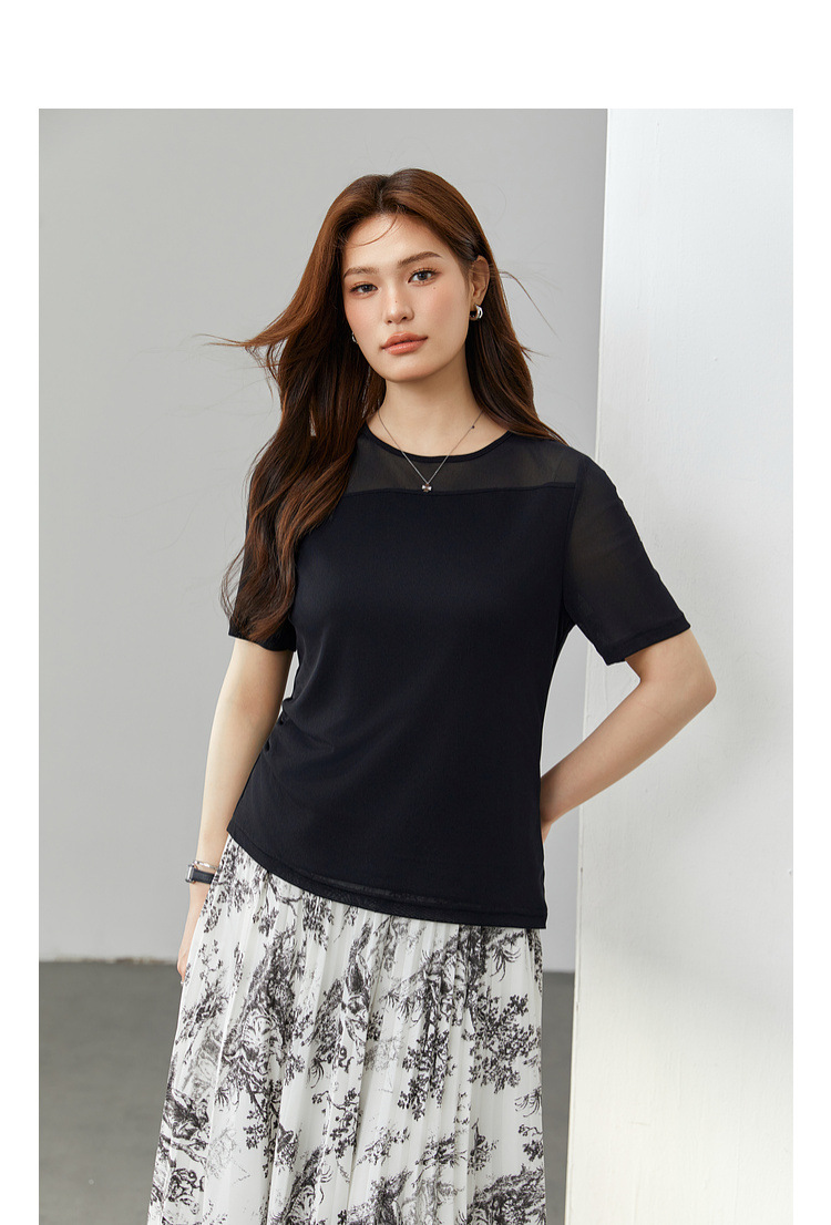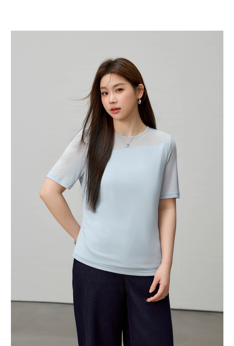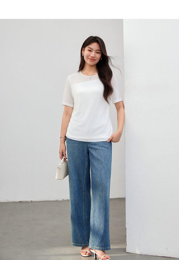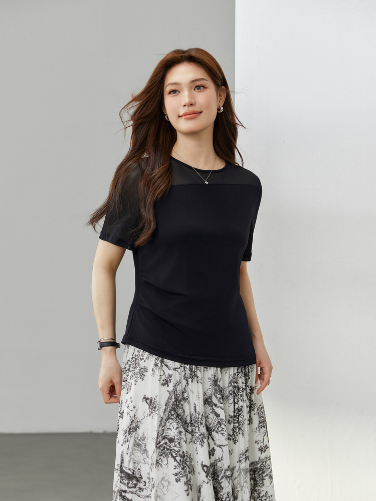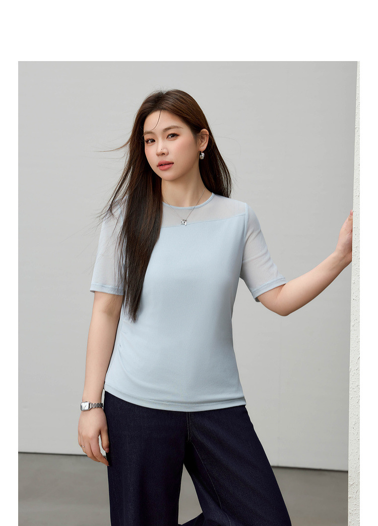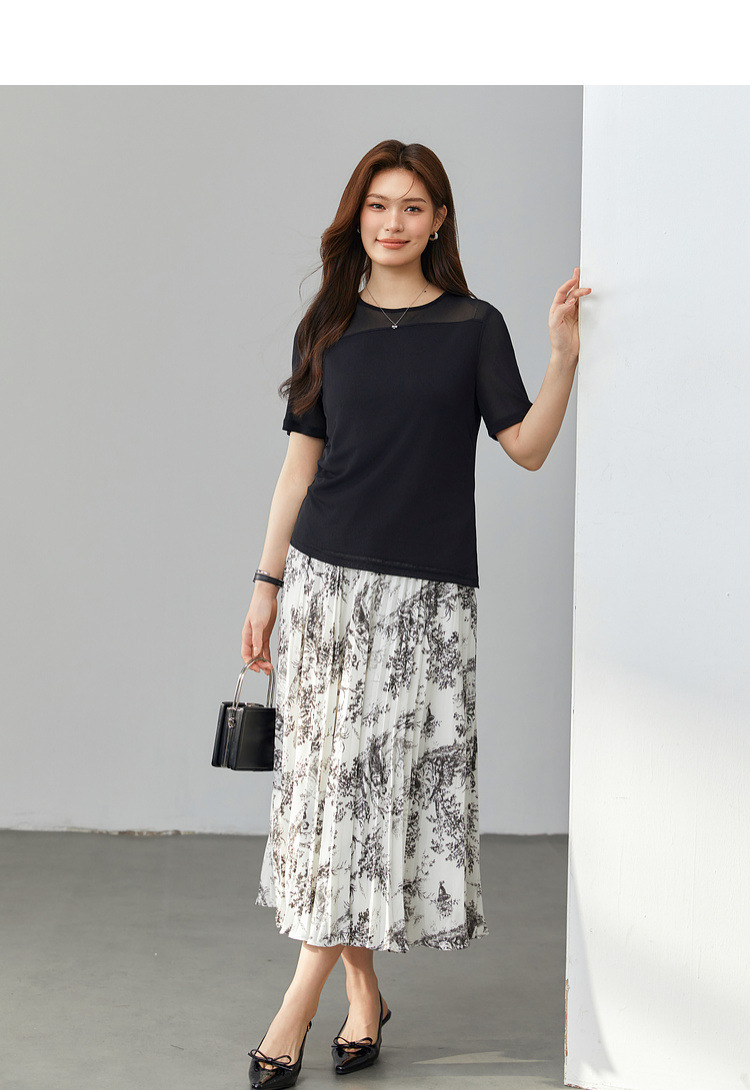 [Дизайнерская плиссированная универсальная футболка из лиоцелла с круглым вырезом] Slim Show, женская футболка больших размеров, толщина мм 2025, летний новый стиль