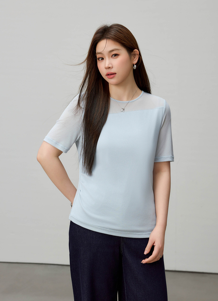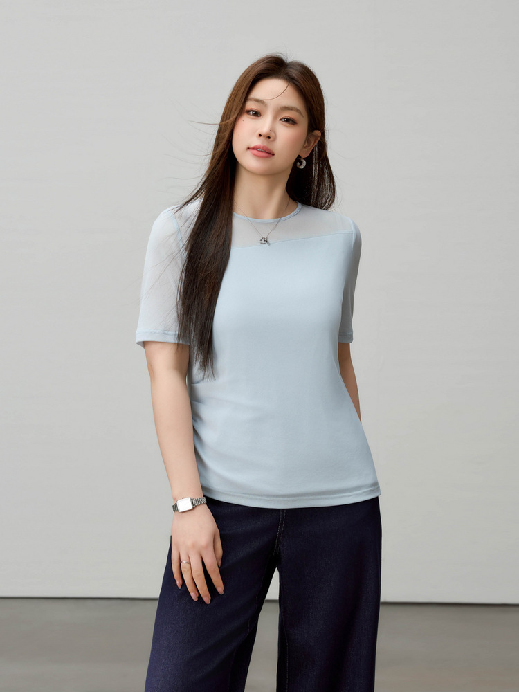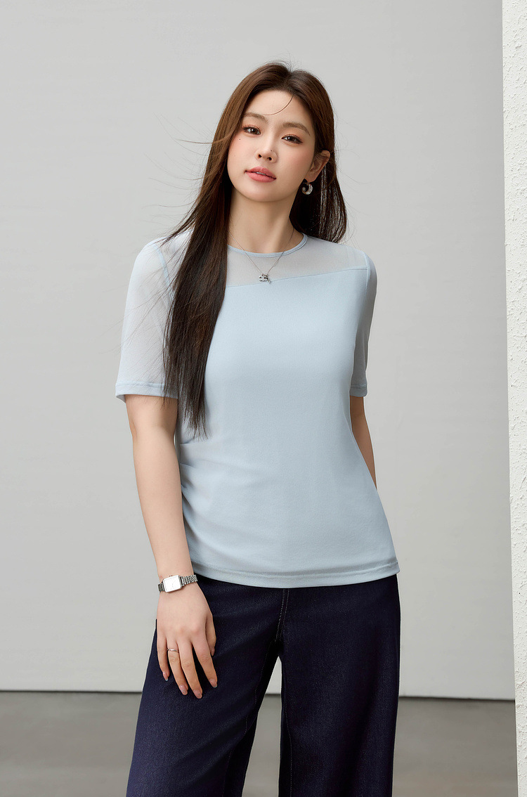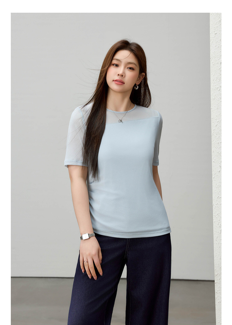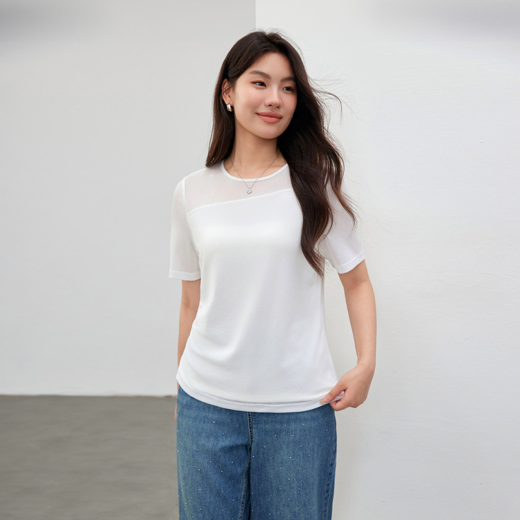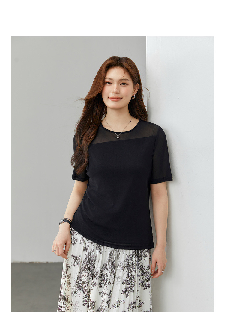 [Дизайнерская плиссированная универсальная футболка из лиоцелла с круглым вырезом] Slim Show, женская футболка больших размеров, толщина мм 2025, летний новый стиль