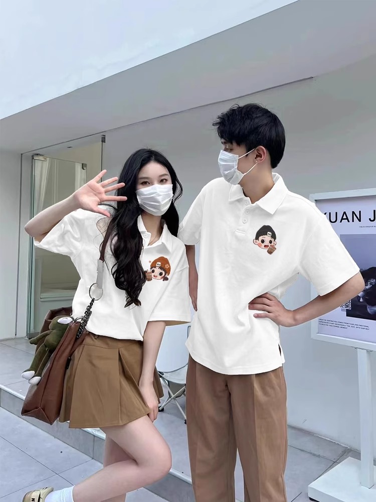 Летние футболки с короткими рукавами для пар, топы нишевого дизайна для мужчин и женщин, модная брендовая студенческая форма, рабочая одежда с воротником ПОЛО.