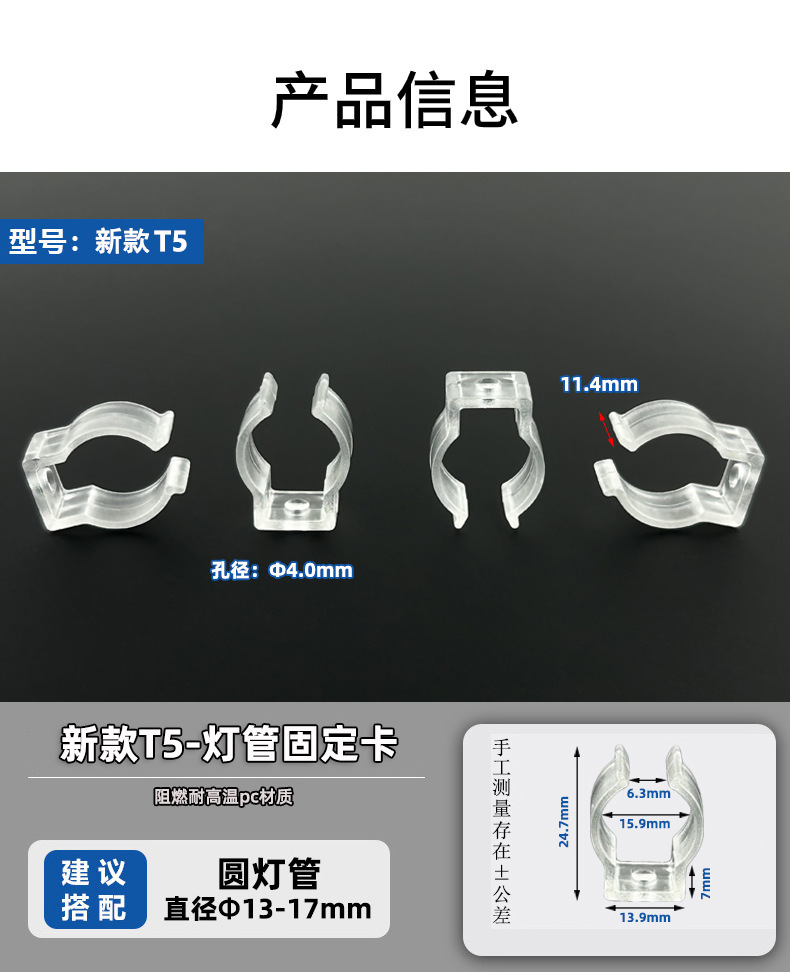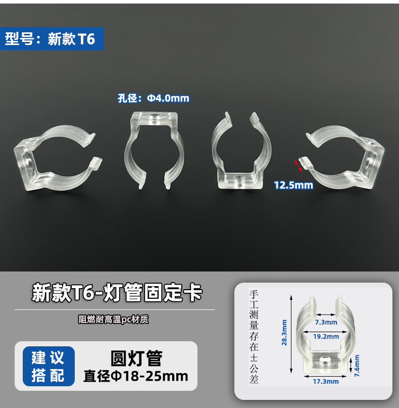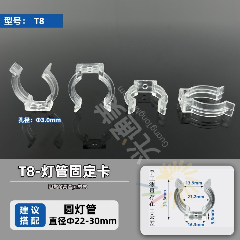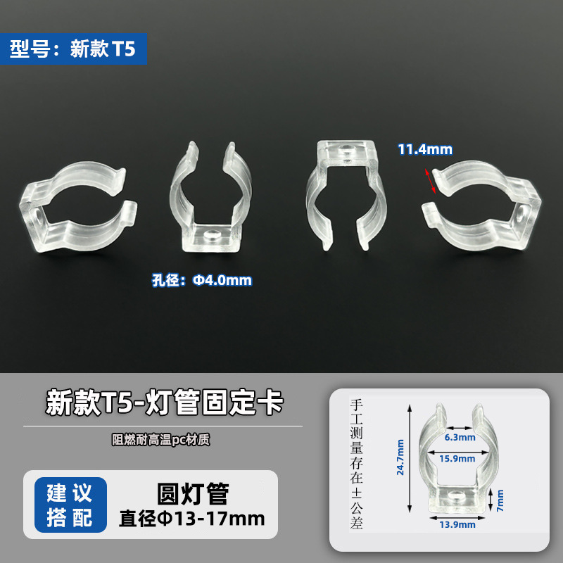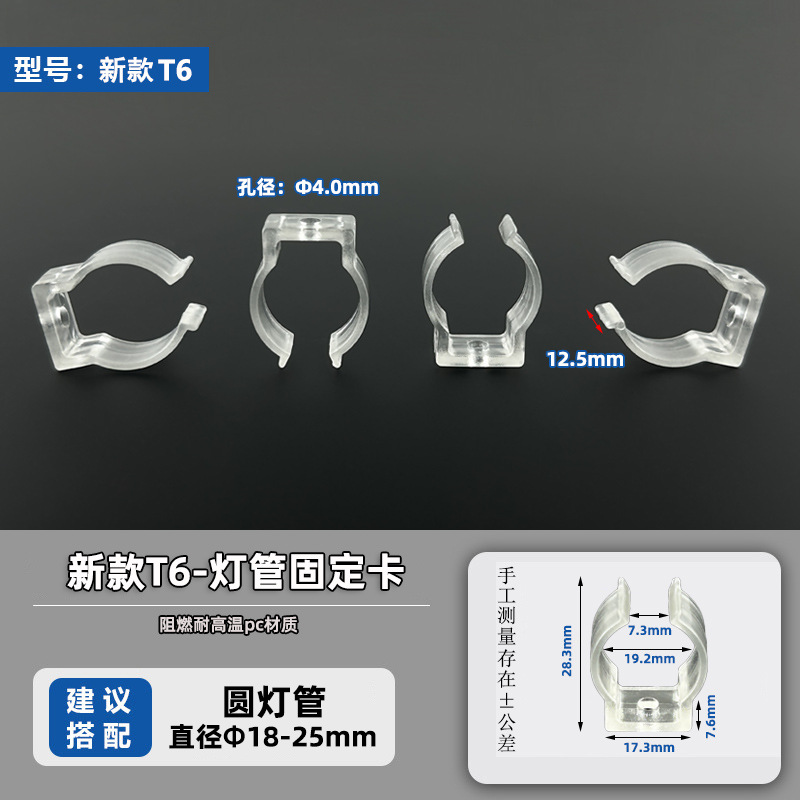 T5/T6/T8 пластиковый зажим для трубки, светодиодный круглый светильник, крепежный зажим для световой ленты, прозрачный водонепроницаемый U-образный зажим для крепления световой трубки