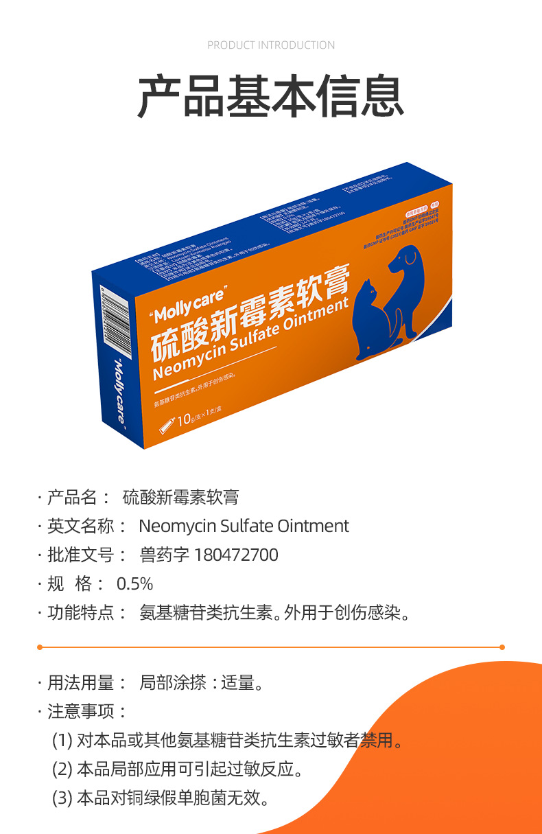 Неомицин сульфатный мазь для животных, кошек и собак, при инфекциях ран, гнойных процессах, послеоперационная антибактериальная мазь для наружного применения, антибактериальная