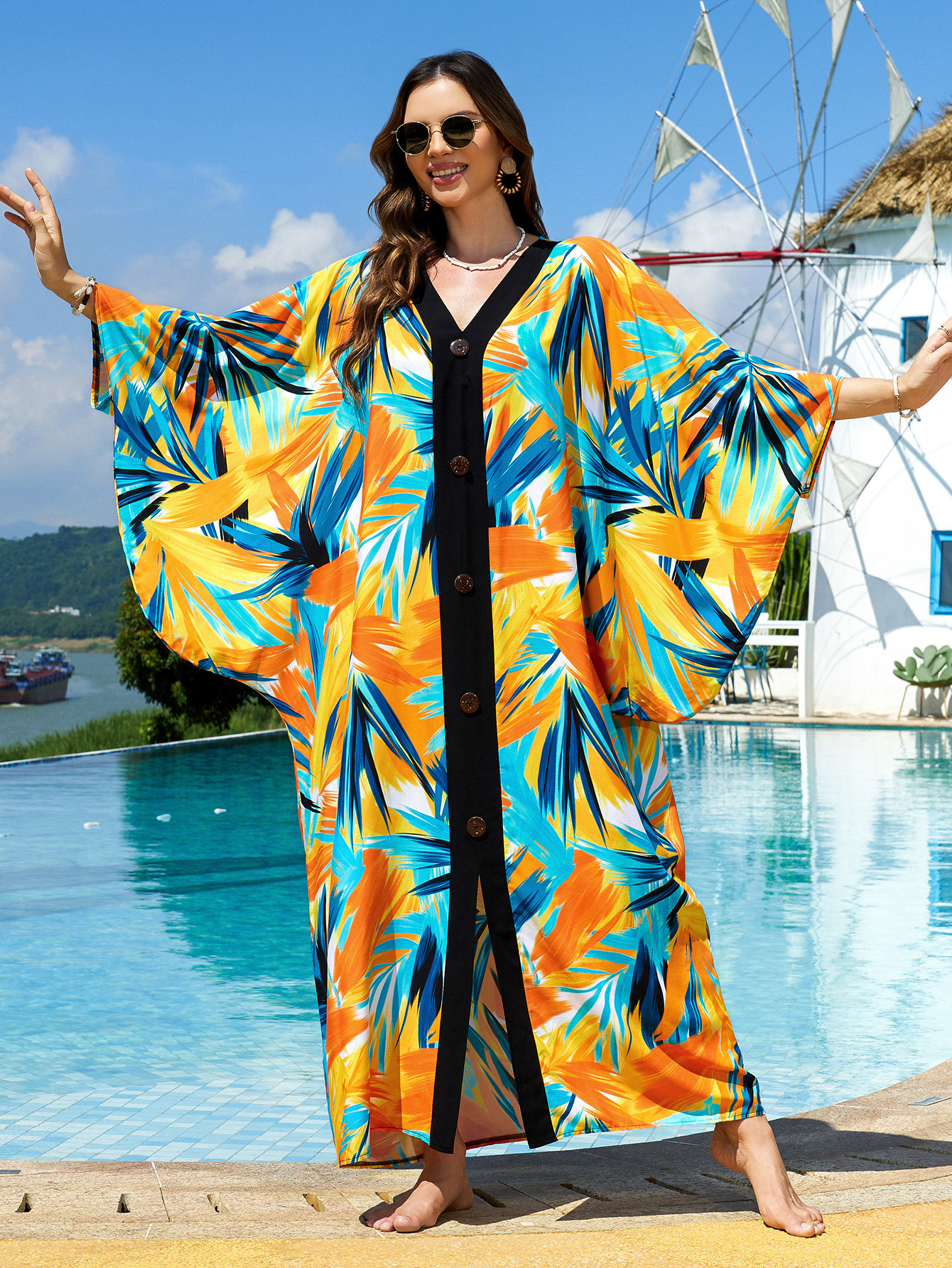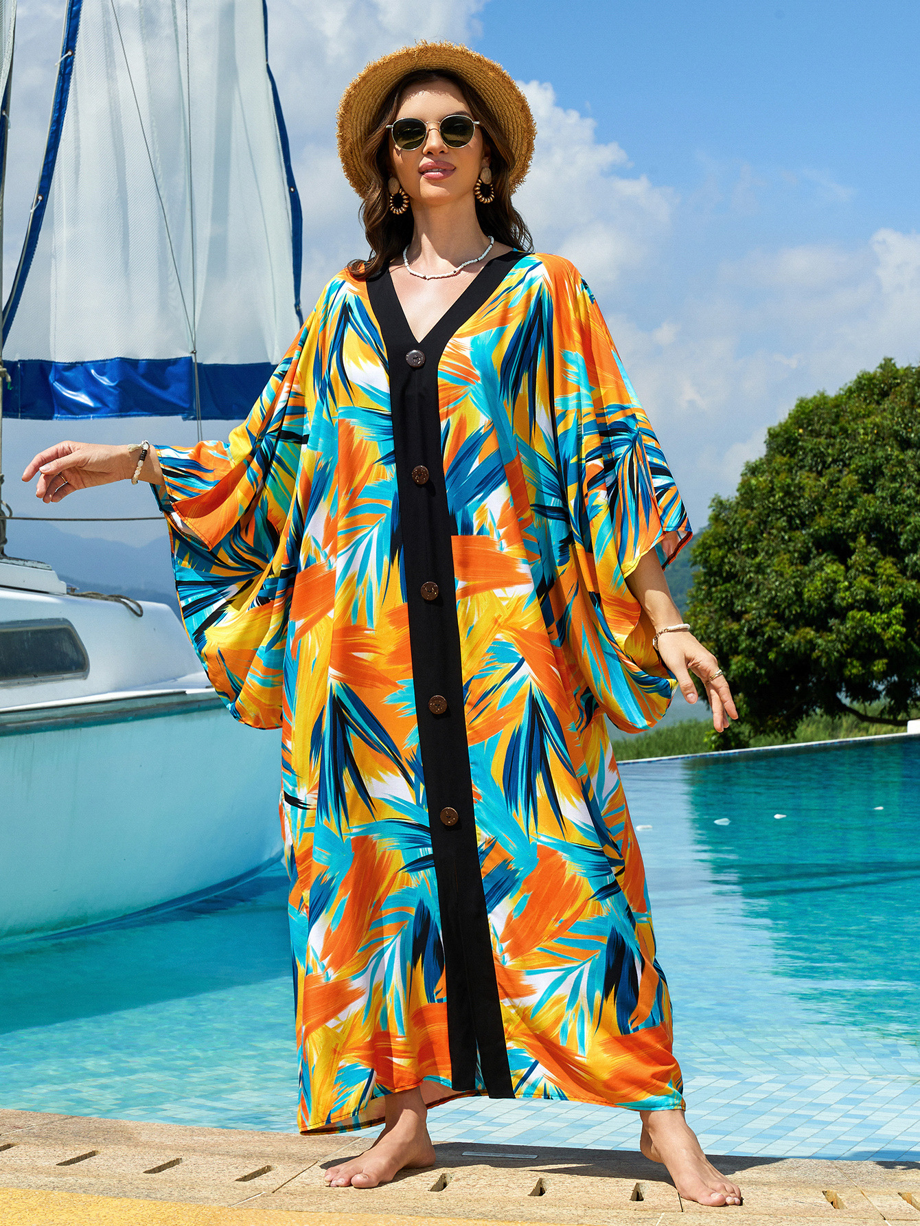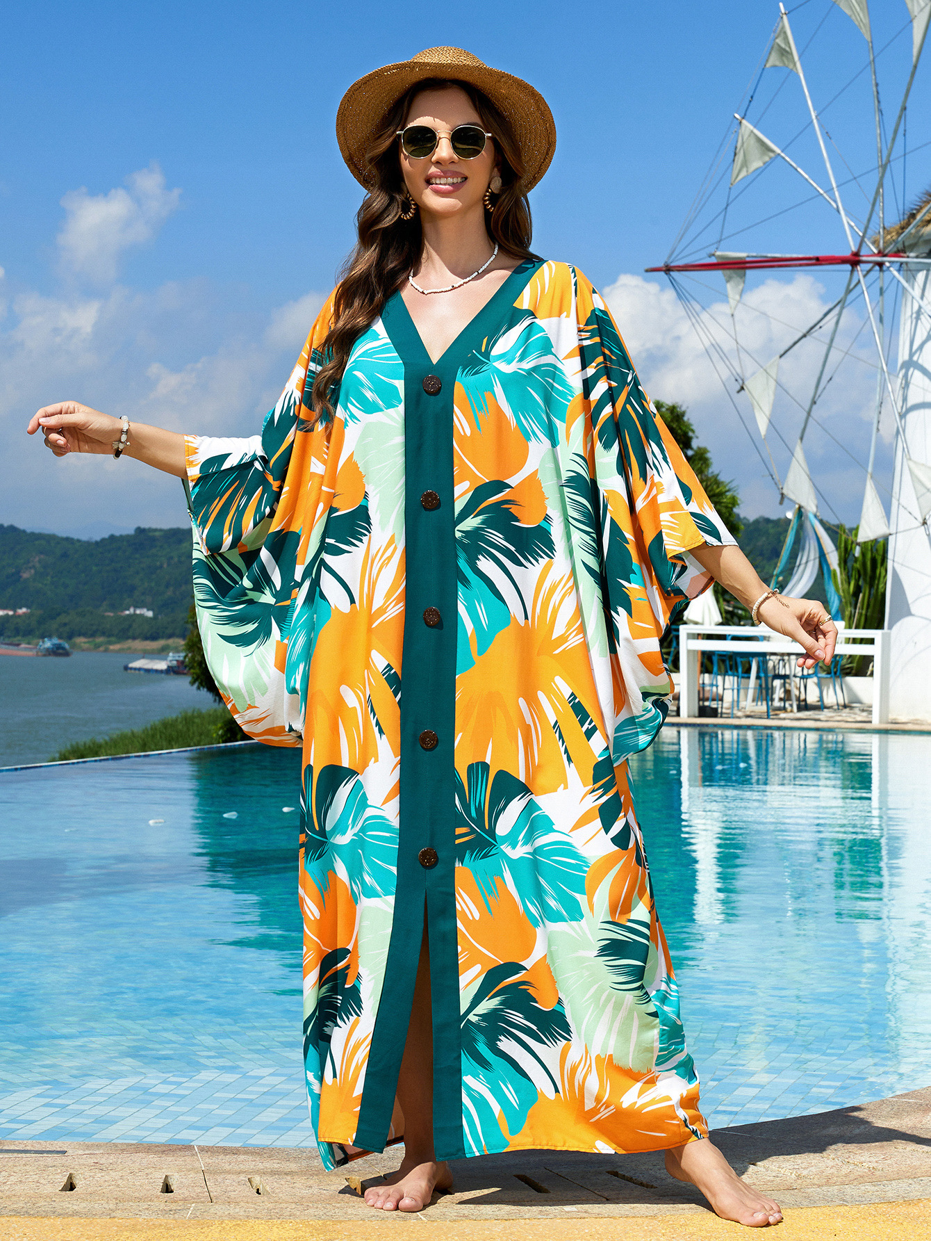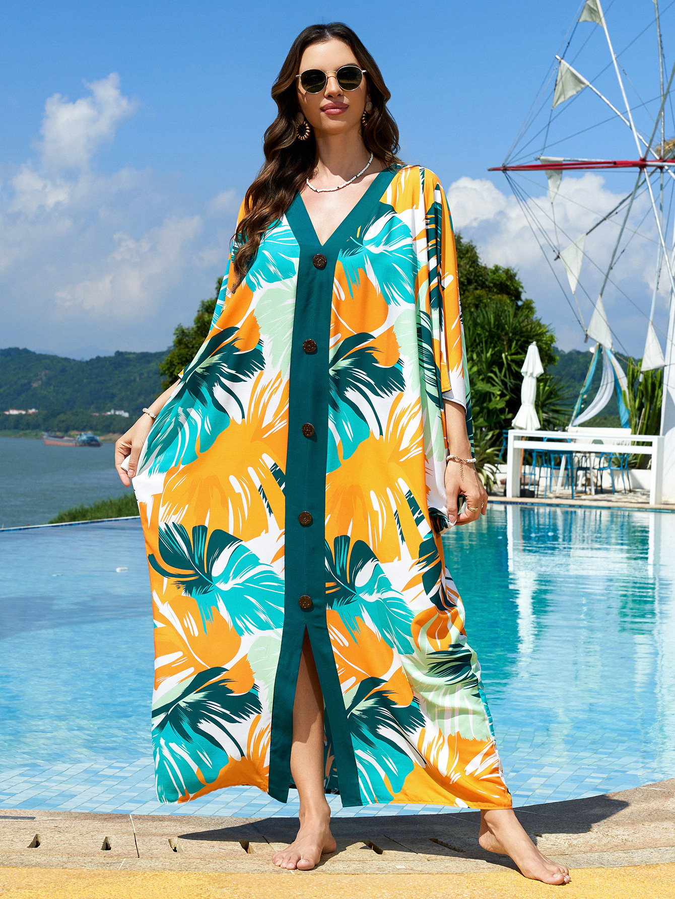 Пляжное платье-накидка из вискозы с декоративными пуговицами, разноцветное, для отпуска, длинное, для трансграничной торговли на Amazon (36 цветов) F1146 F