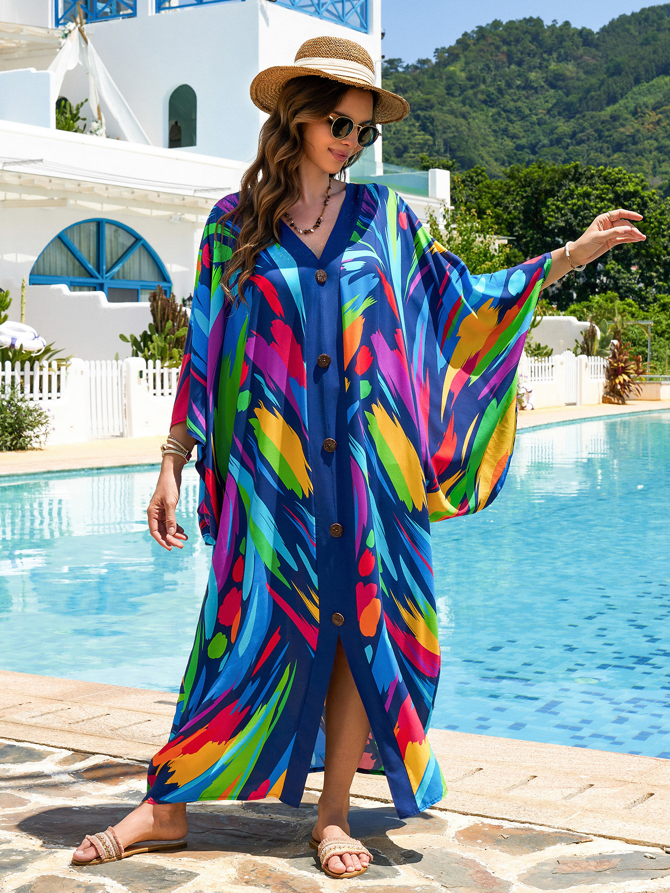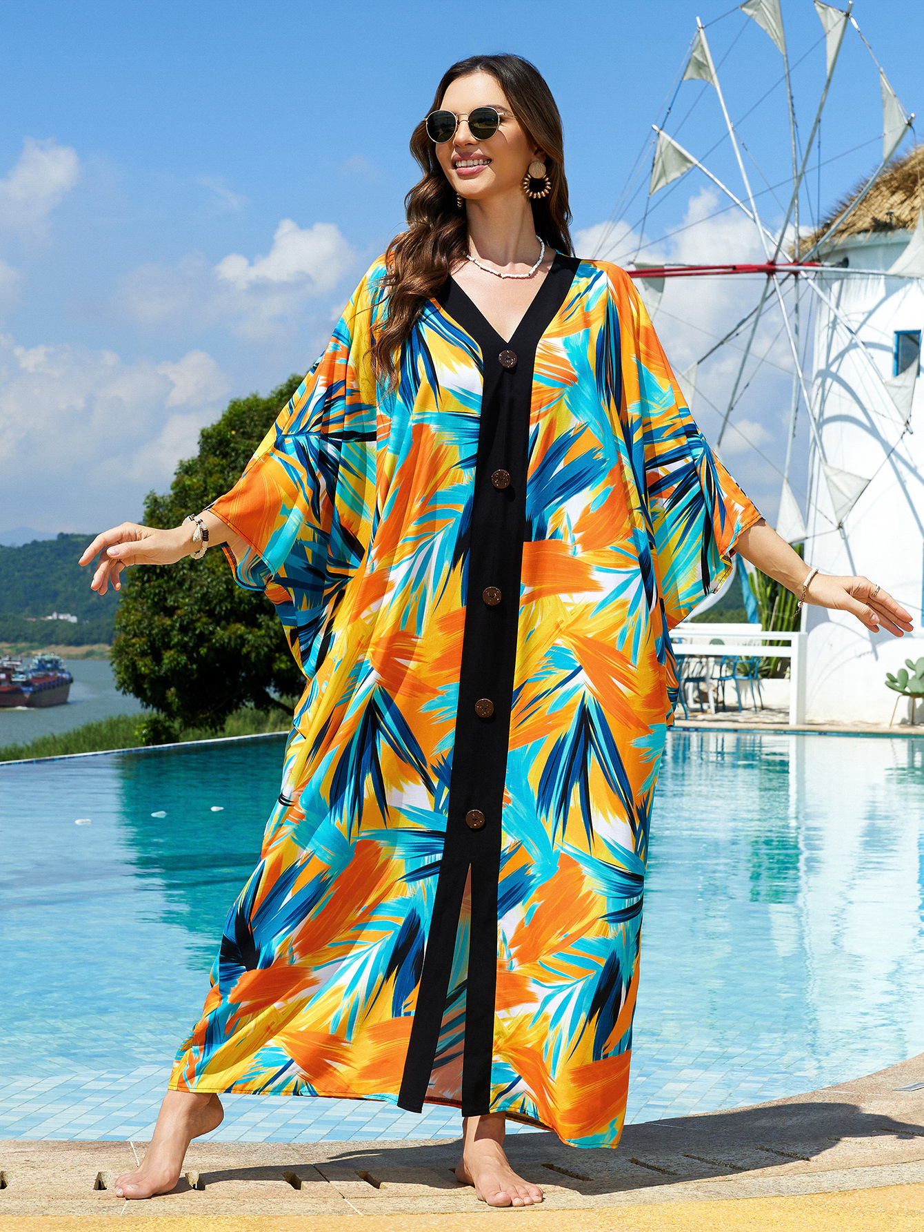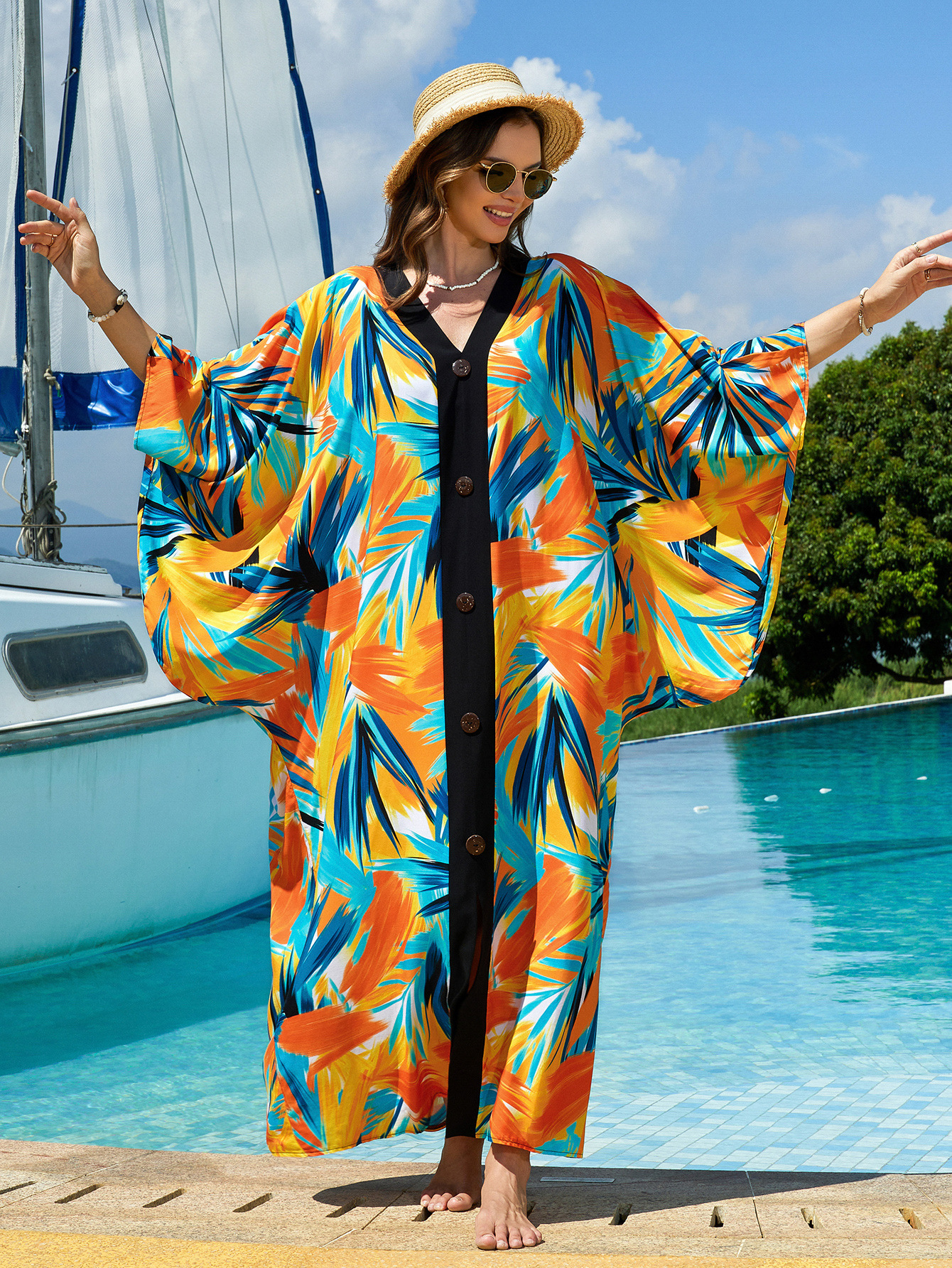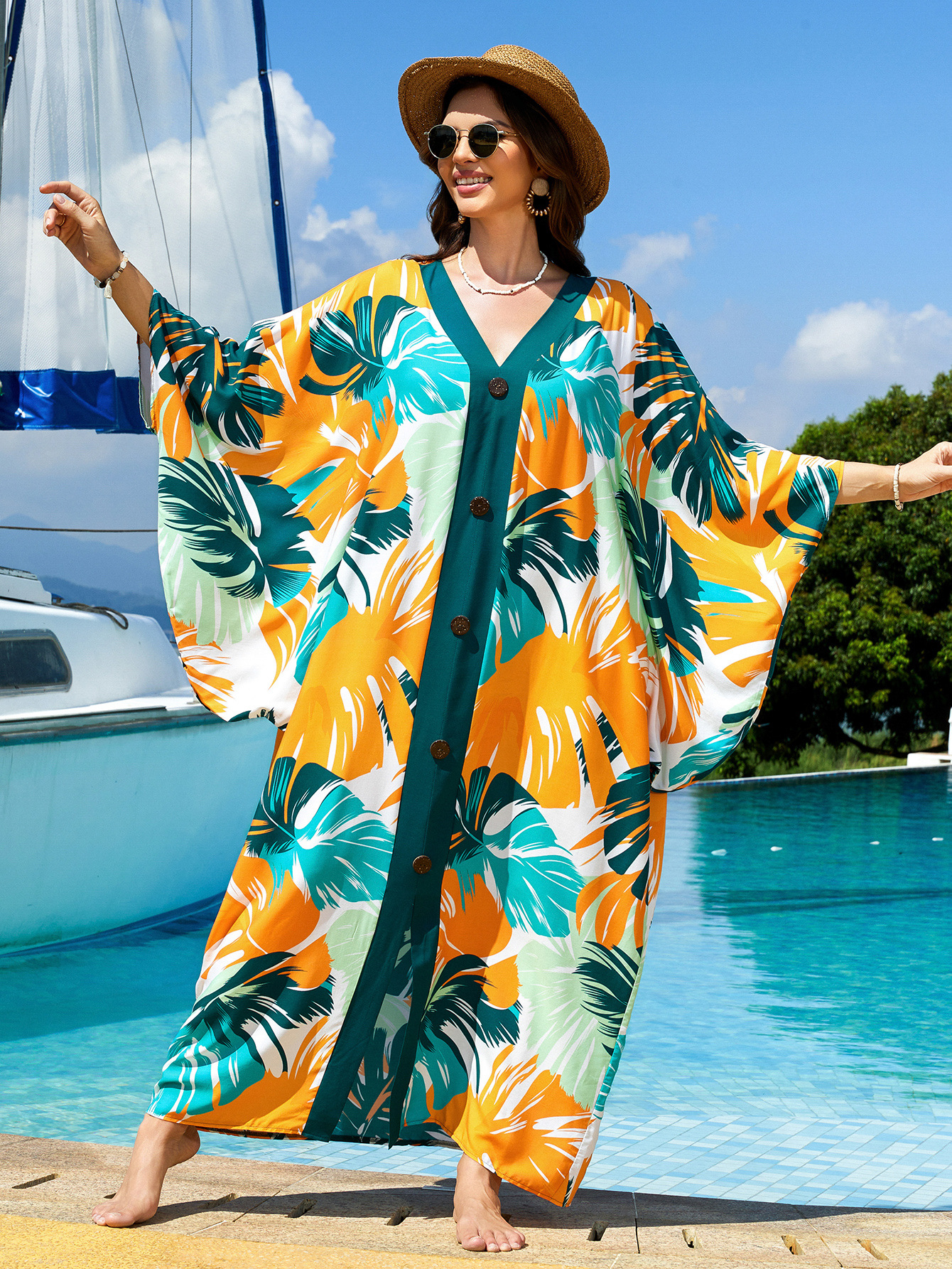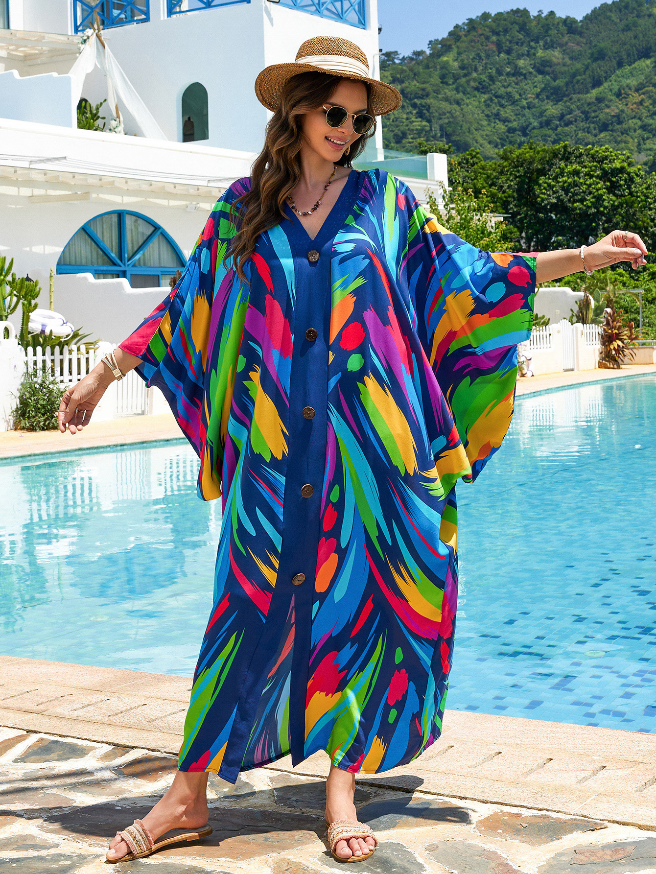 Пляжное платье-накидка из вискозы с декоративными пуговицами, разноцветное, для отпуска, длинное, для трансграничной торговли на Amazon (36 цветов) F1146 F