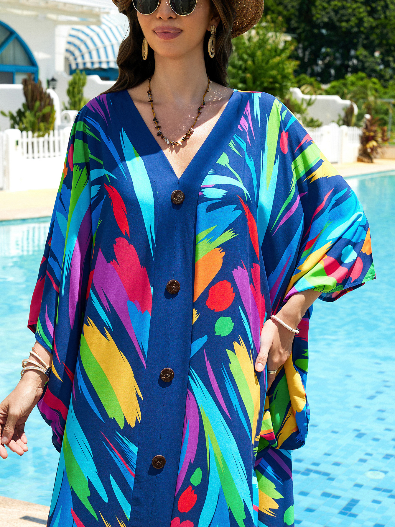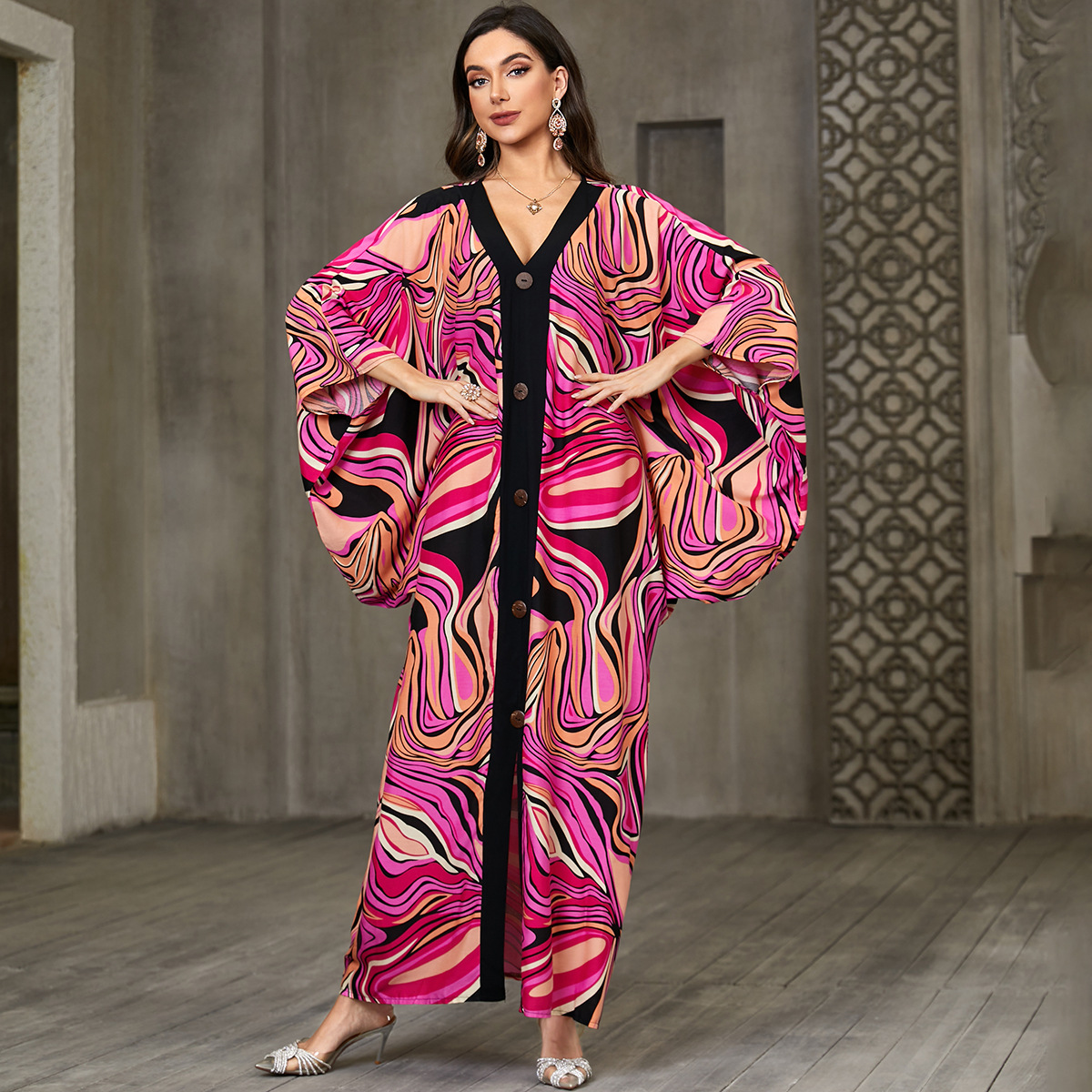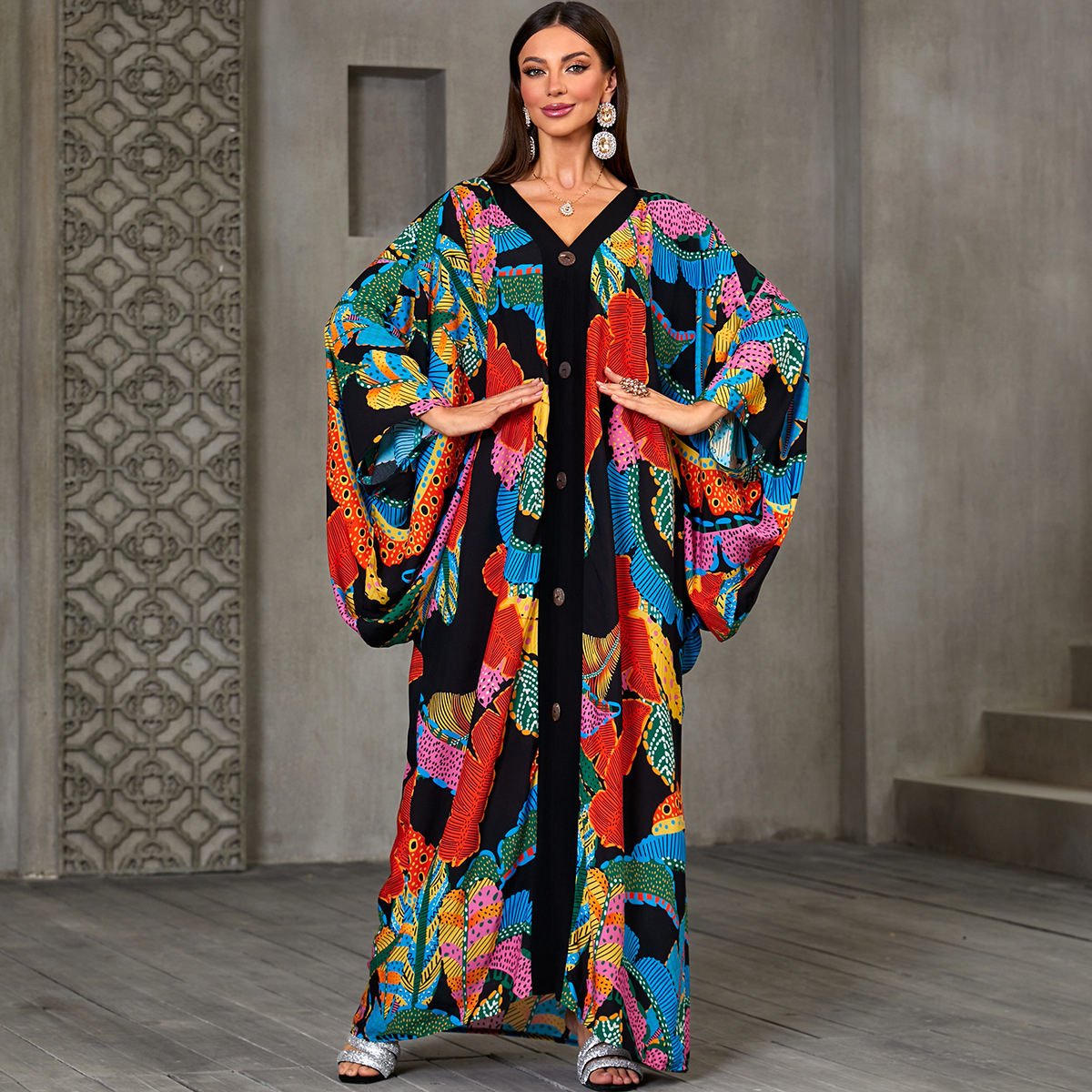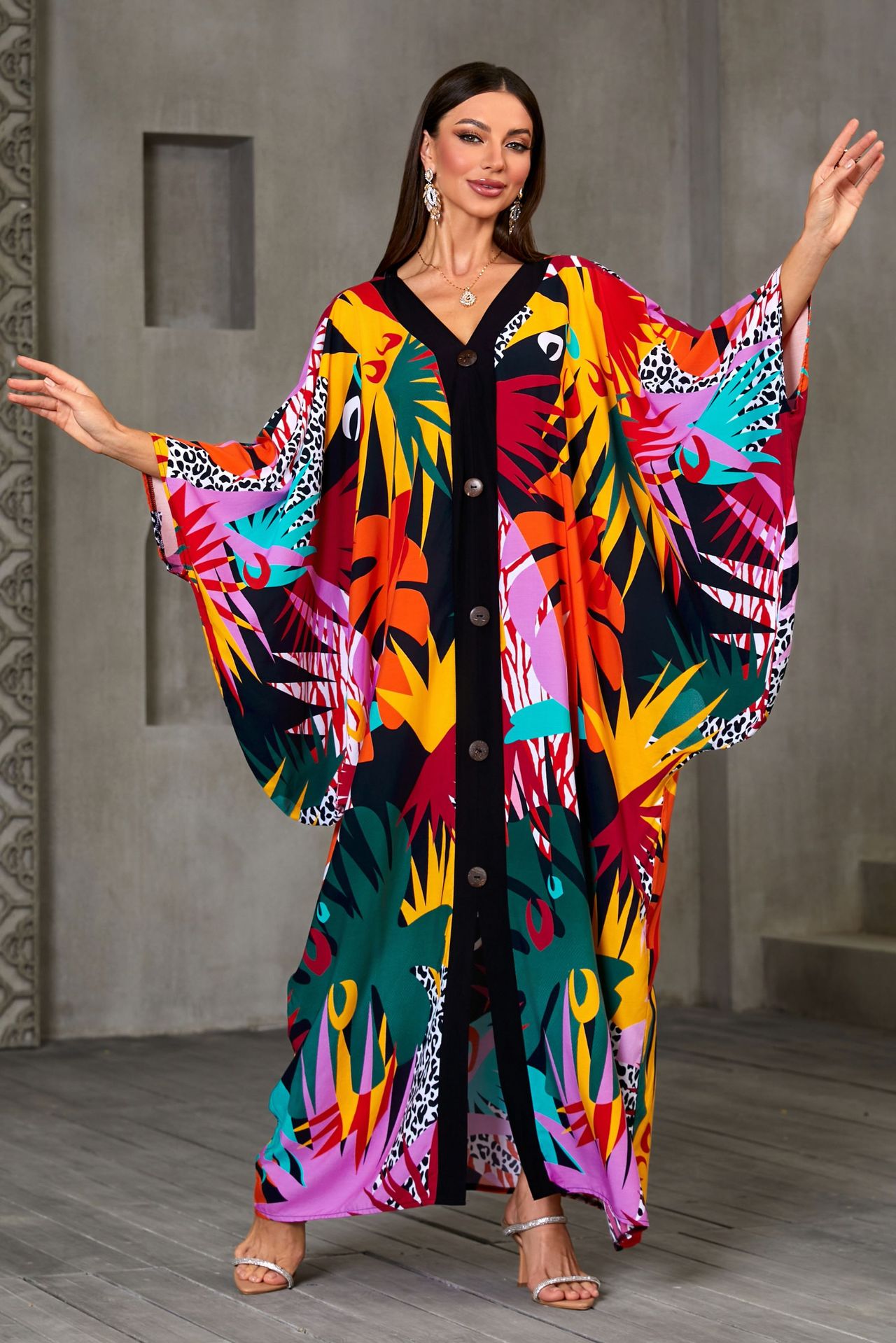 Пляжное платье-накидка из вискозы с декоративными пуговицами, разноцветное, для отпуска, длинное, для трансграничной торговли на Amazon (36 цветов) F1146 F