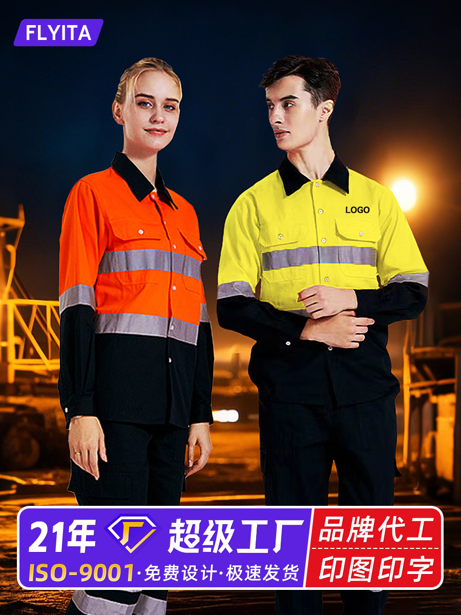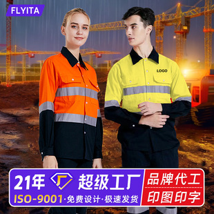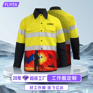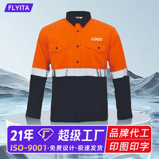 Европейский размер, светоотражающая рубашка из чистого хлопка с длинными рукавами, рабочая одежда, костюм, угольная, нефтехимическая, строительная площадка, одежда для охраны труда, индивидуальный заказ
