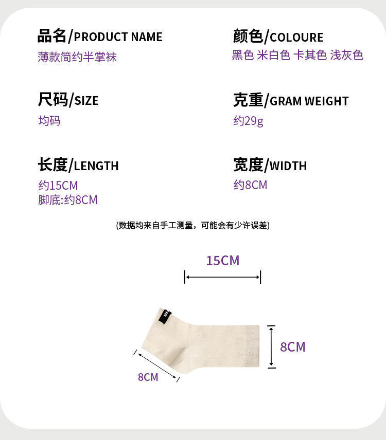 Летняя тонкая ткань, простые полуносочные носки, модные индивидуальность