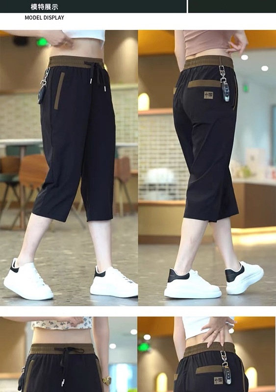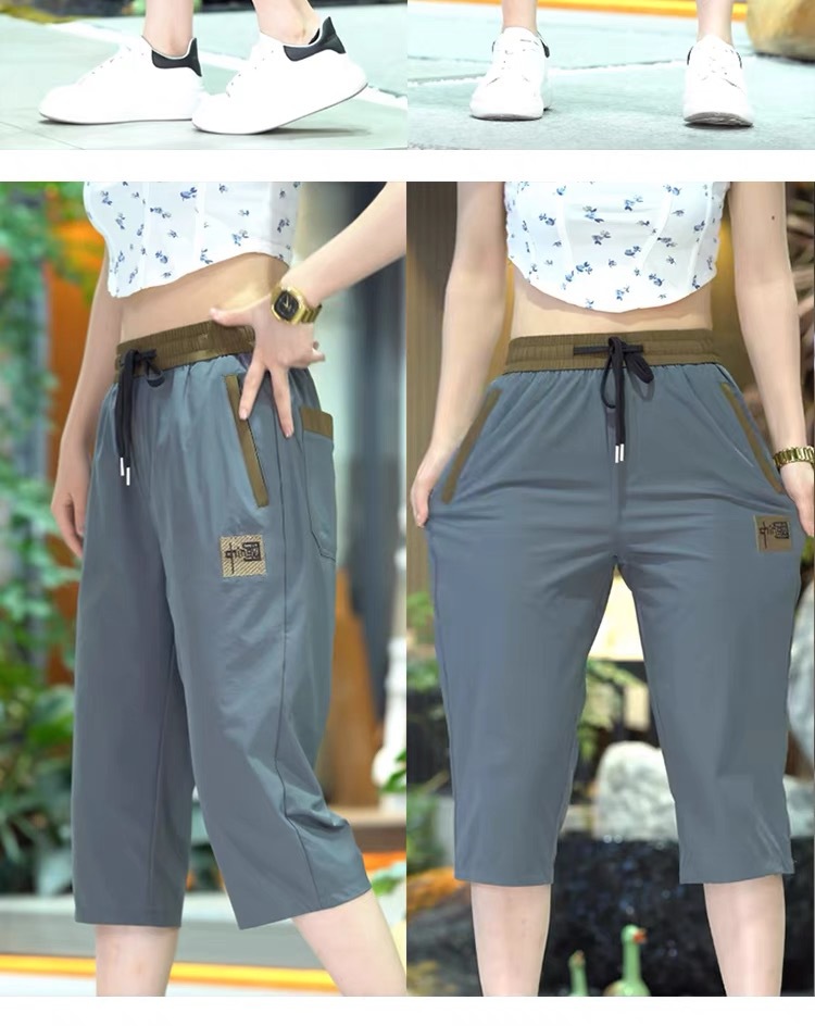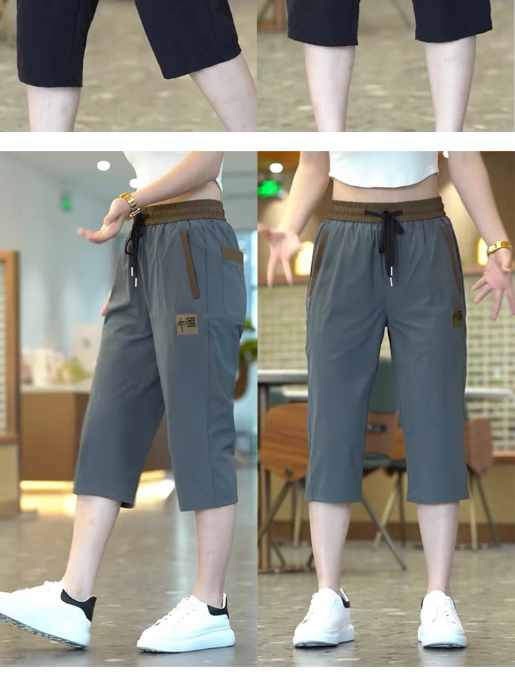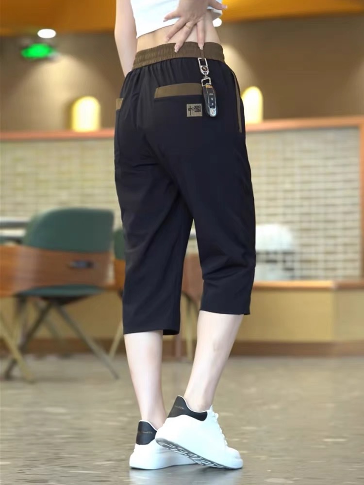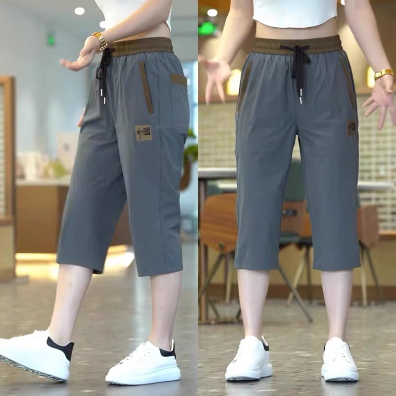 Повседневные укороченные брюки для женщин, летняя тонкая быстросохнущая верхняя одежда, прямые брюки, модные и универсальные высокоэластичные женские спортивные брюки.