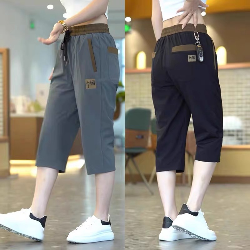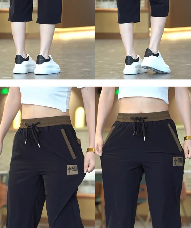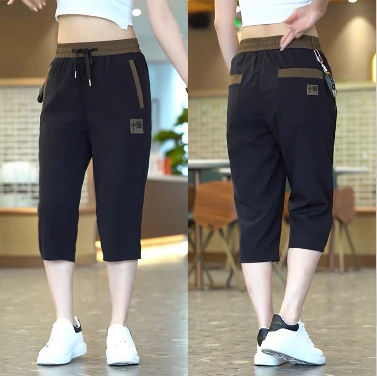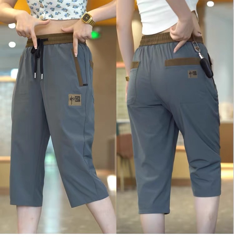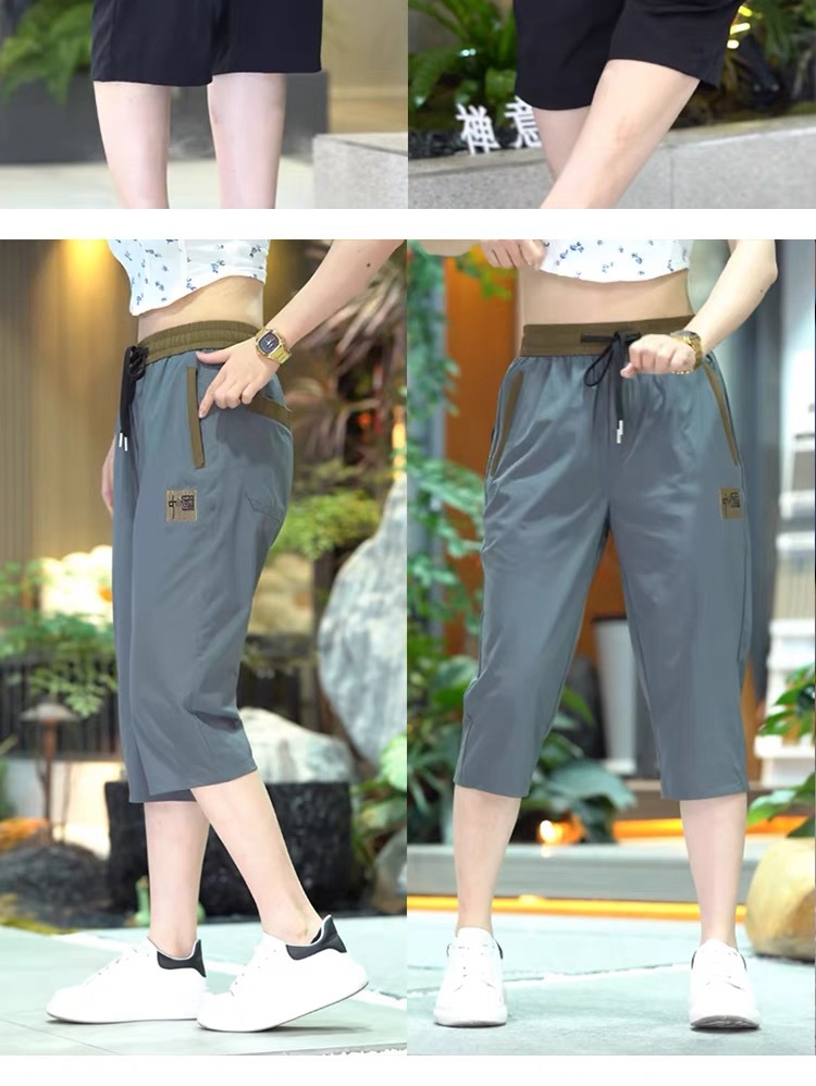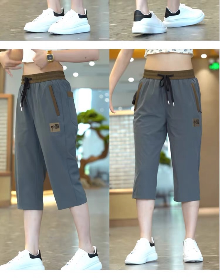 Повседневные укороченные брюки для женщин, летняя тонкая быстросохнущая верхняя одежда, прямые брюки, модные и универсальные высокоэластичные женские спортивные брюки.
