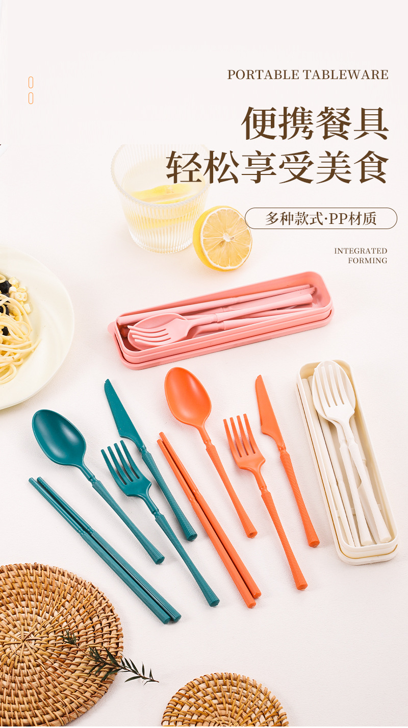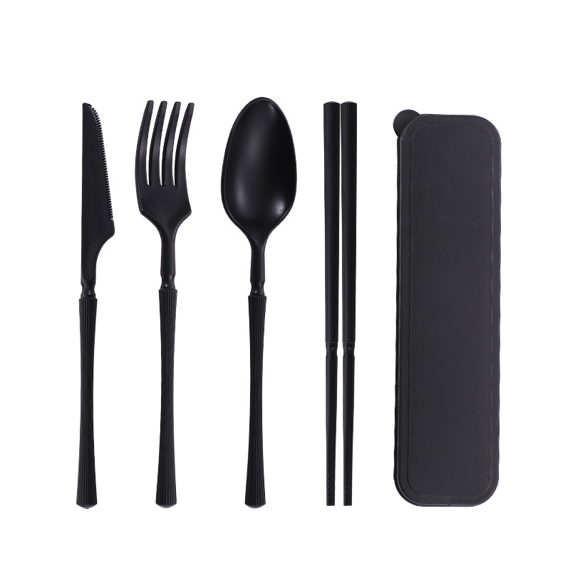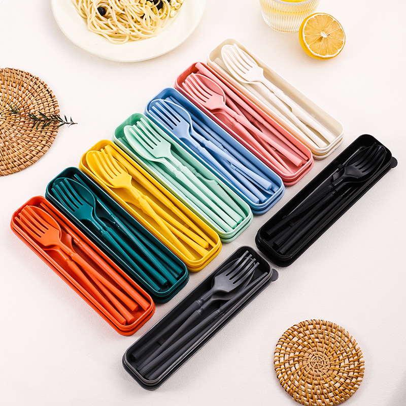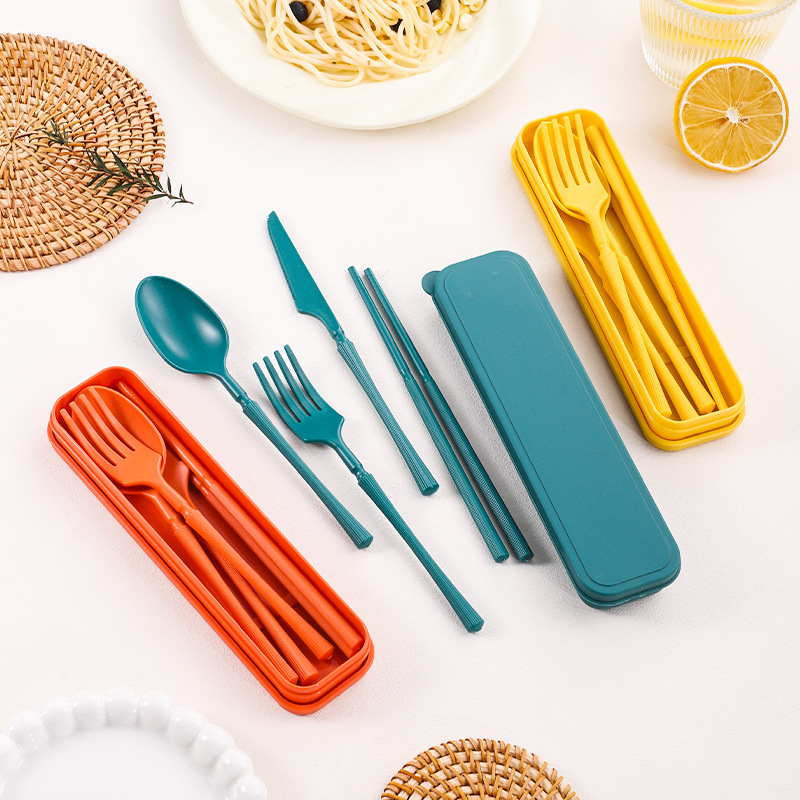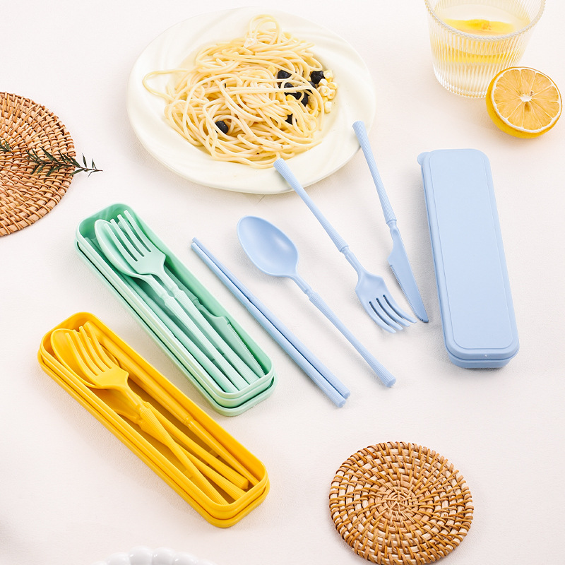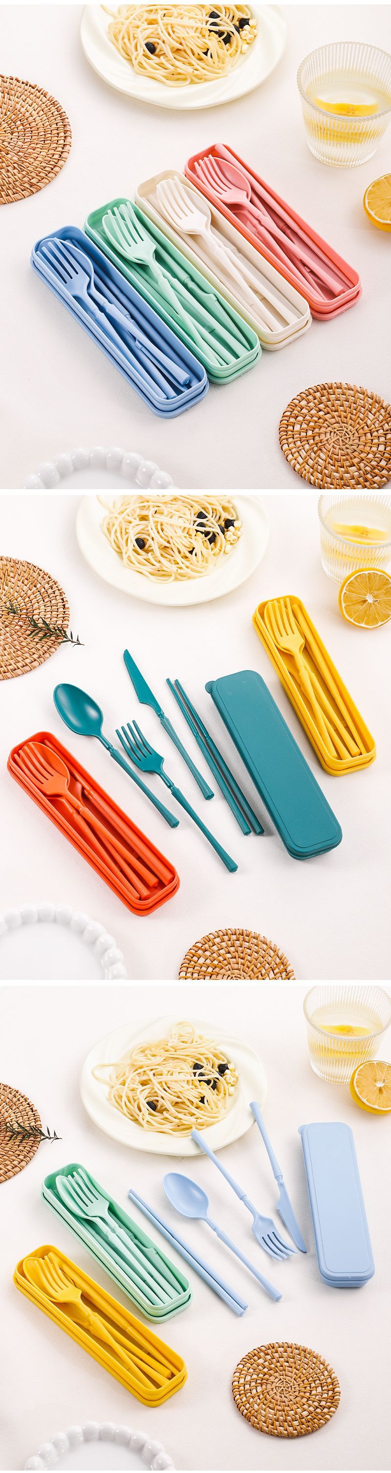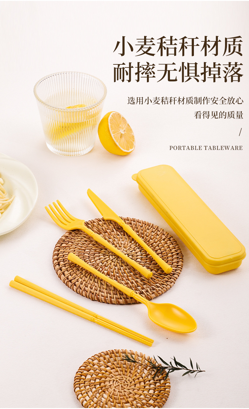 Набор столовых приборов из пшеничной соломы для трансграничной торговли: нож, вилка, ложка, палочки для еды (пять предметов), набор для офисного обеда, подарочный набор для бенто