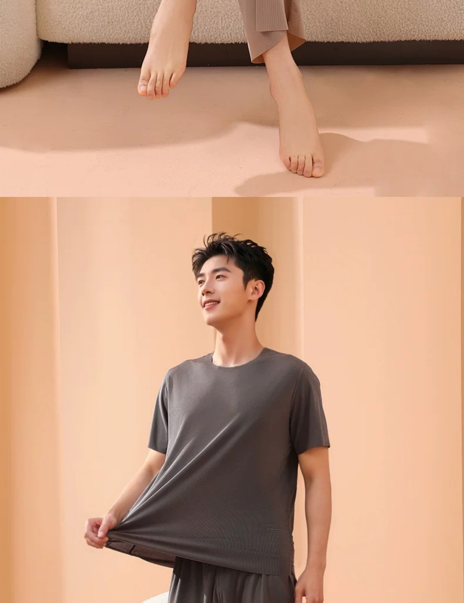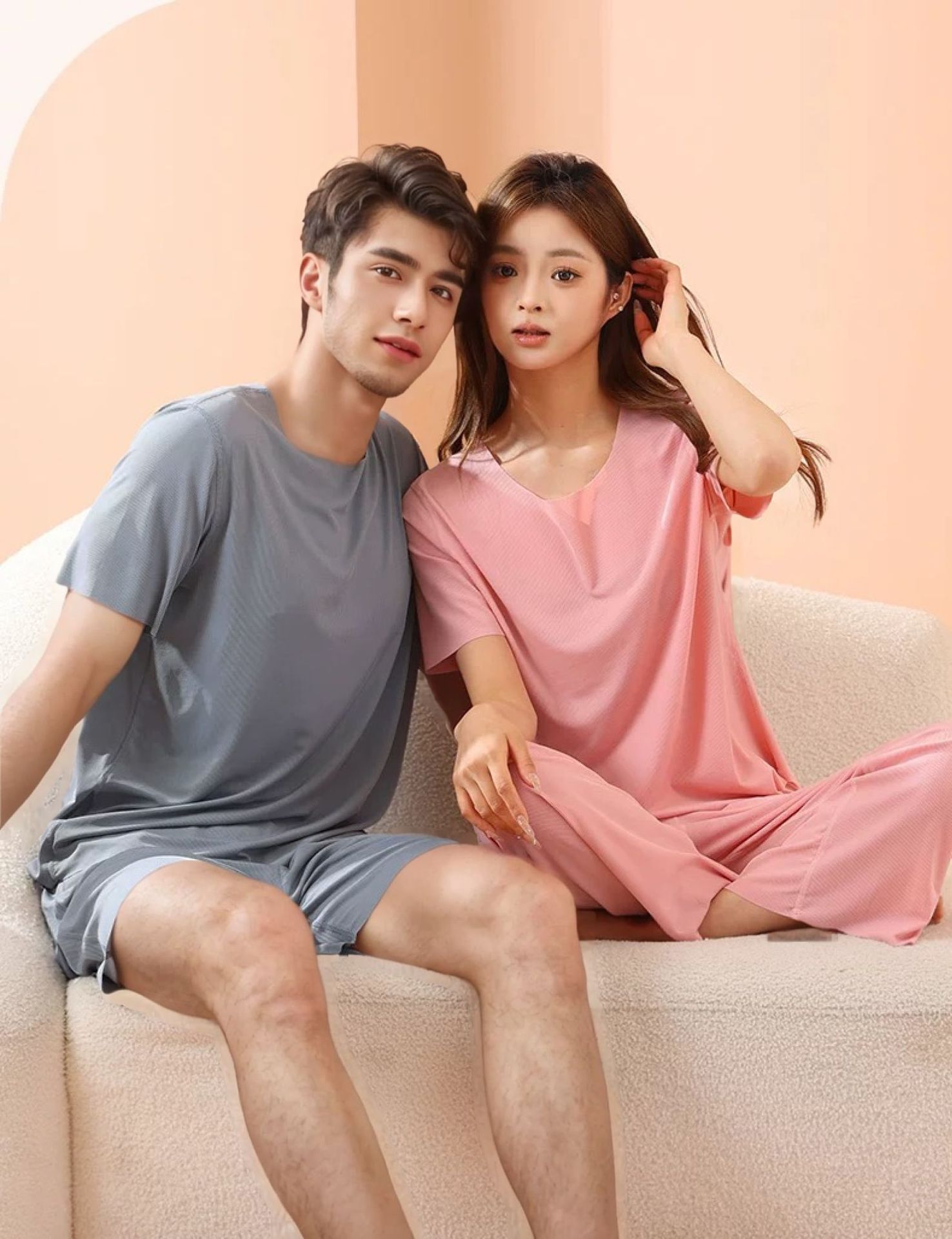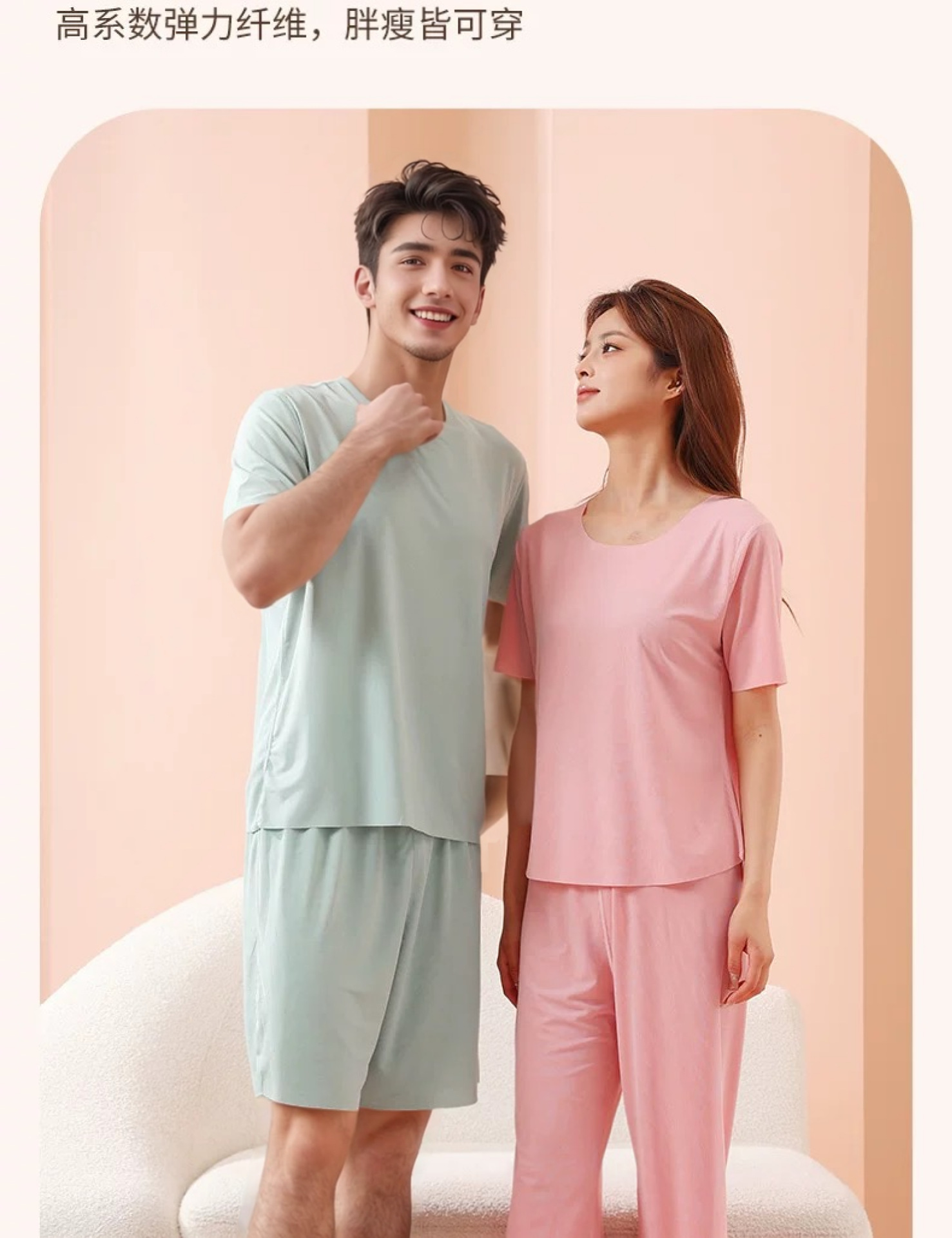 Домашняя одежда, женские летние пары, мужские шелковые пижамы с короткими рукавами, простые бесшовные однотонные пижамы, оптовая продажа