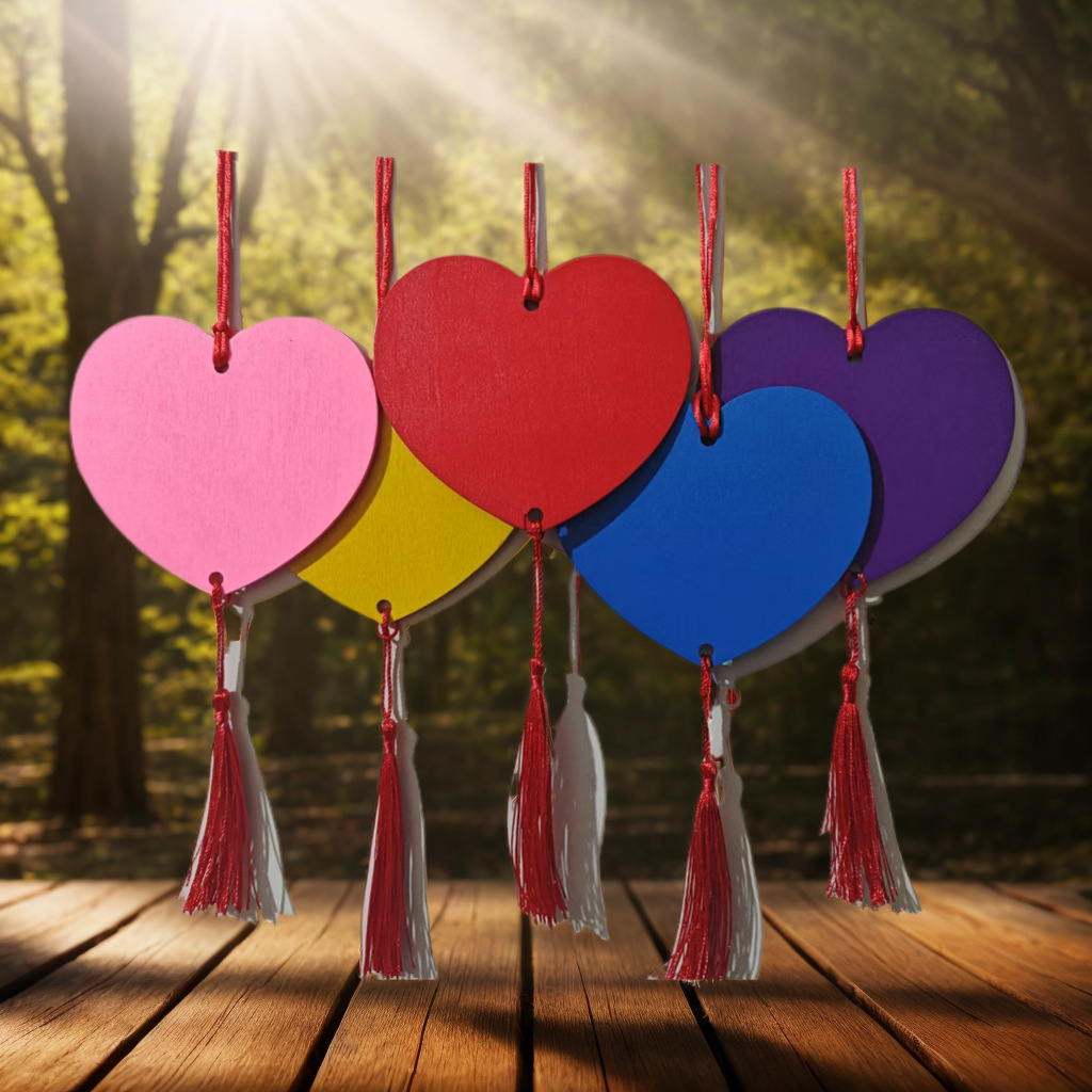 Красочная деревянная открытка в форме сердца, креативная декоративная деревянная открытка, счастливая сумка, открытка с благословением, подвесная открытка храма в живописном месте, можно напечатать логотип