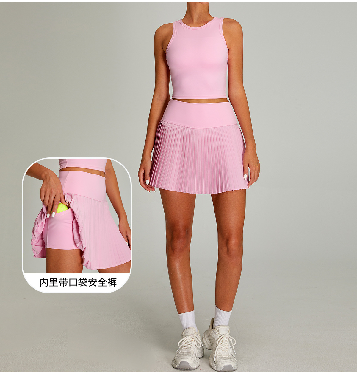 Трансграничные плиссированные спортивные юбки с высокой талией женские наружные фитнес поддельные две части теннисные юбки юбки анти-легкая йога юбка