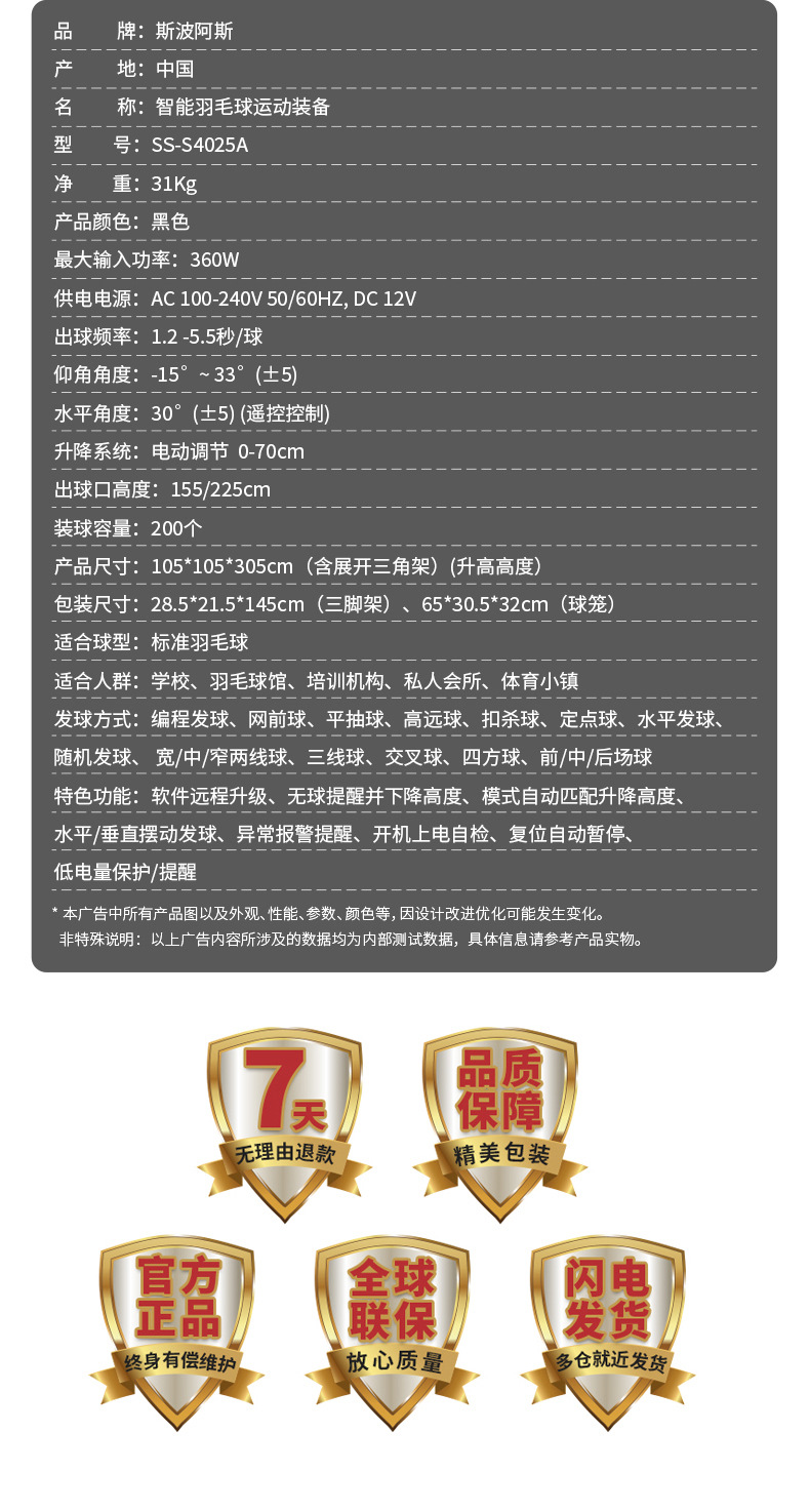 Автоматический подающий бадминтонный мяч Spores S4025A, профессиональное оборудование для тренировок одного и нескольких игроков