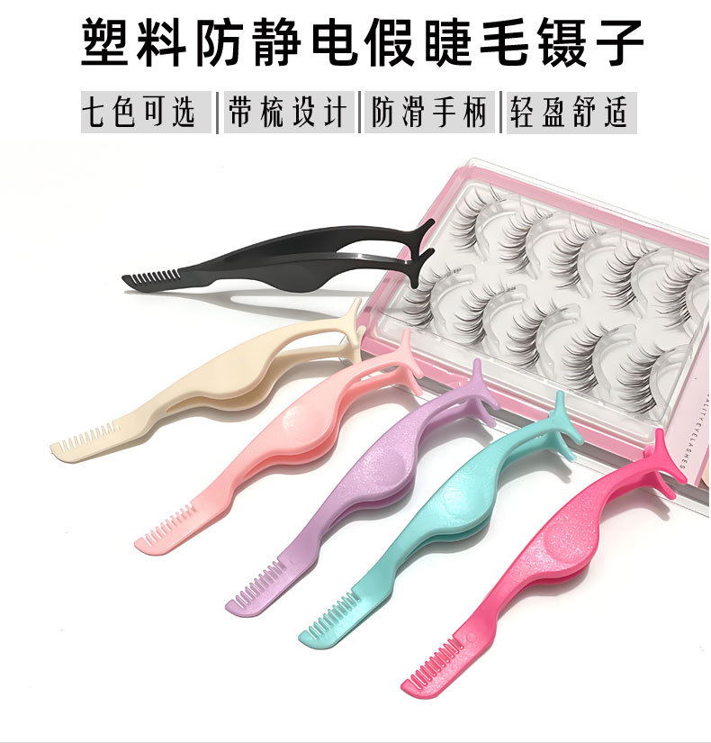 跨境热销塑料防静电假睫毛毛镊子海马形眉夹嫁接眼睫毛辅助工具