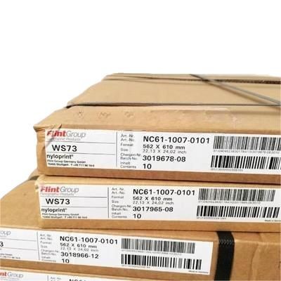 一、 德国巴斯夫抗UV水洗树脂版 (巴斯夫WS73(金属底) 高解像度。无论印刷满版、线条版或半色调版,都可用较低印刷压力,而获得良好及均匀的油墨传送。理想的半色调线性反应,满版实地不产生裂纹.所以四色彩印效果甚佳。印刷网点分辨达200线以上。版材寿命特长!使用范围广泛,如不干胶、牙膏管,软管,美甲印刷等 其版材特点:曝光宽容度大且浮雕间的深度较深 印刷品反差大。满版实地不产生裂纹;可印刷非常小的半色调网点;地印刷墨层平滑 版材分辨率高;刷稳定性高,印版可以重复使用;版过程简单,快速且操作简易 洗版溶剂是水,非常环保;材底基透明且与浮雕颜色不一致,所以装版非常容易 柔软的聚酯底基装版简单易行 加网线数/色调范围2~95 %;立细线:0.055mm独立圆点:0.2mm 版材硬度: WS73 68肖氏。抗uv油墨 版材规格: 610X562 860X610 250*100