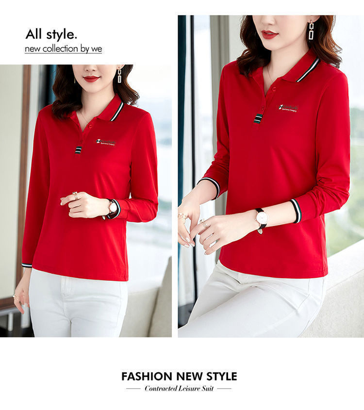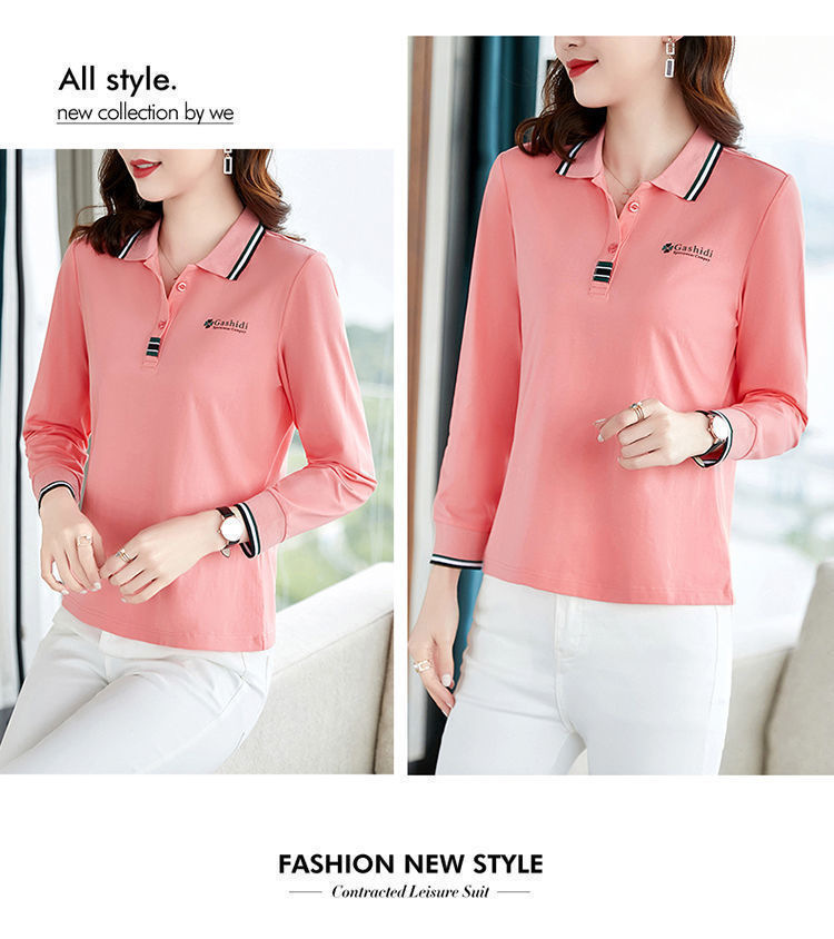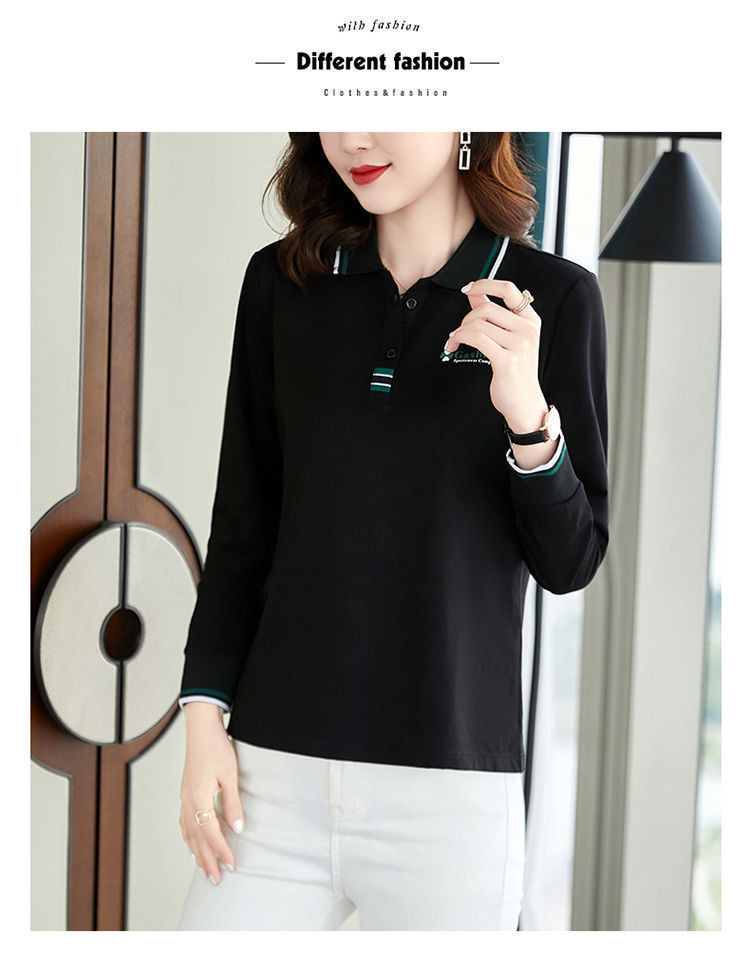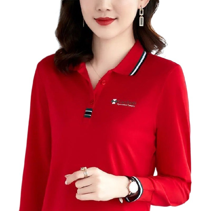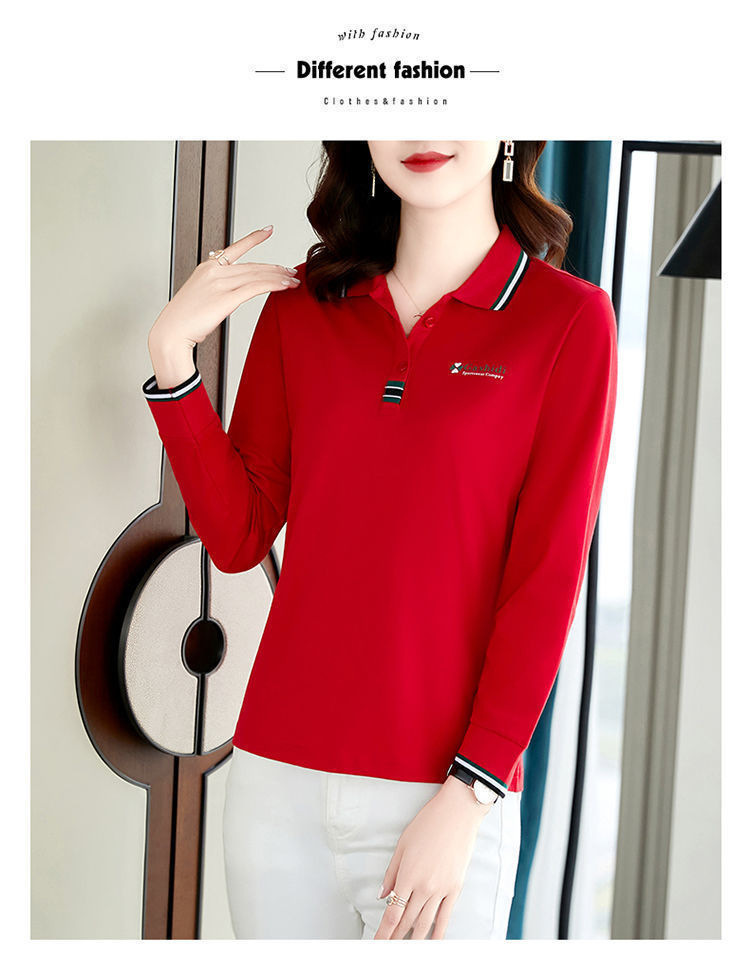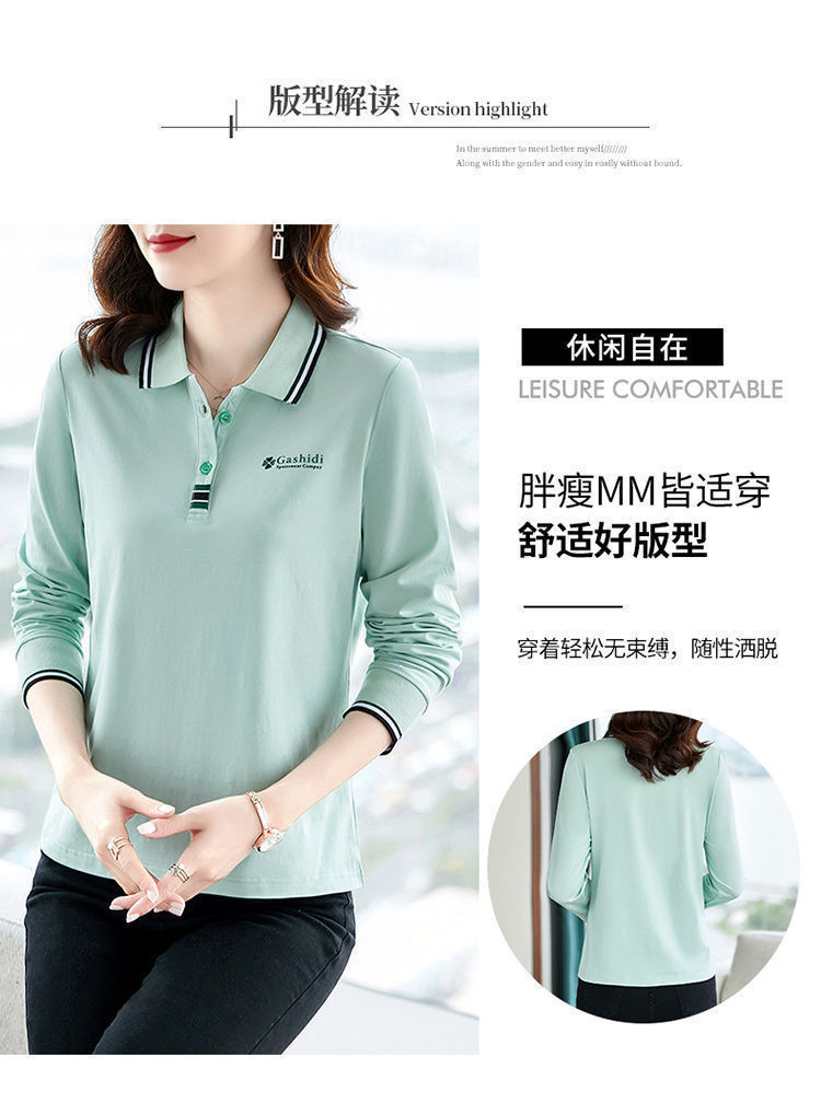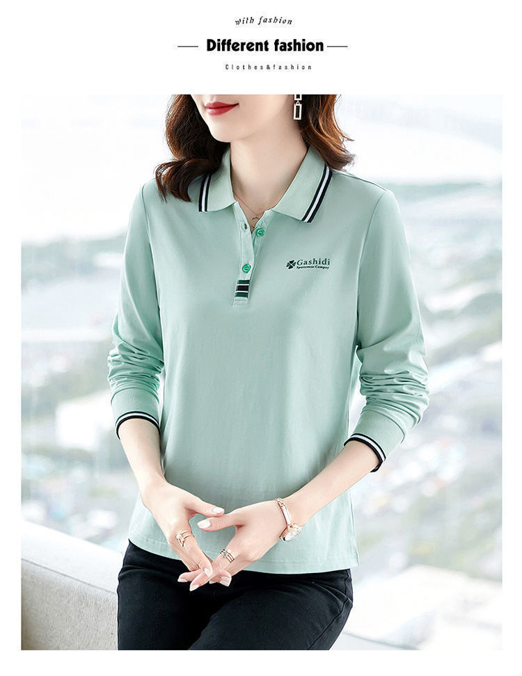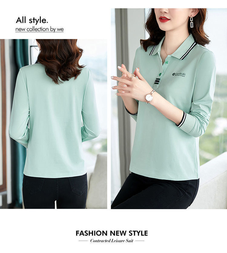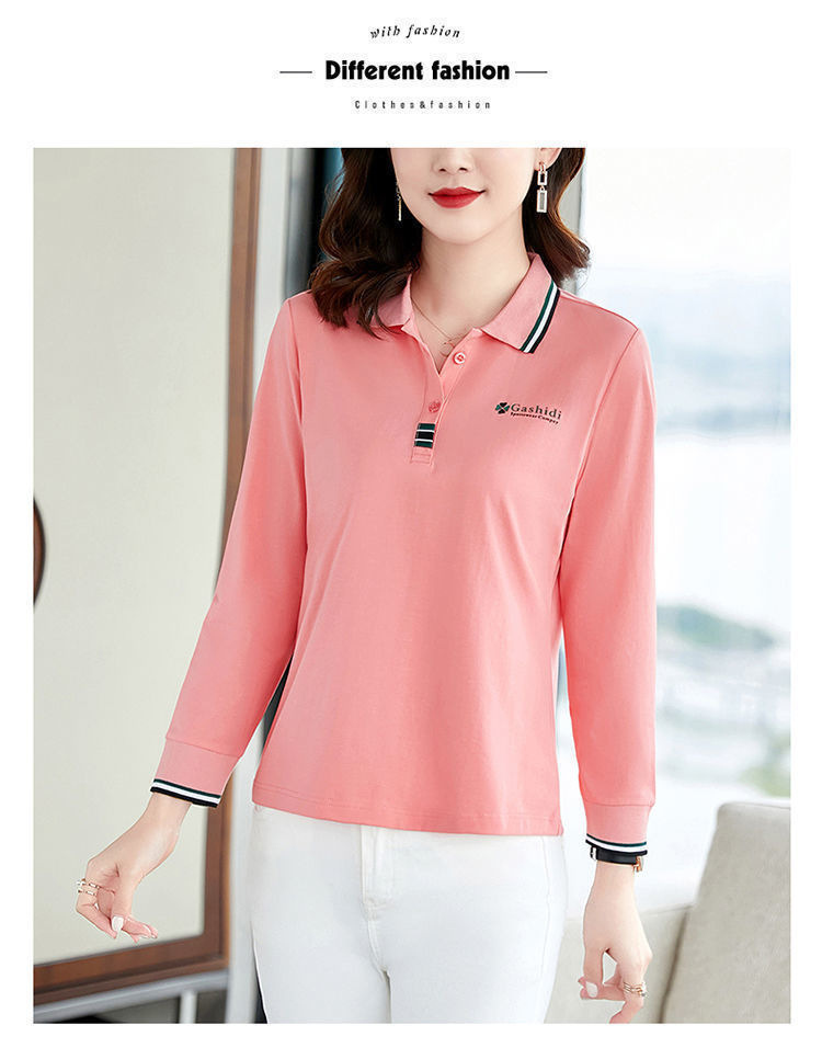 Футболка с длинными рукавами, женская рубашка-поло с лацканами, весенне-осенняя свободная рубашка большого размера для женщин среднего возраста с воротником, стиль женской рабочей одежды