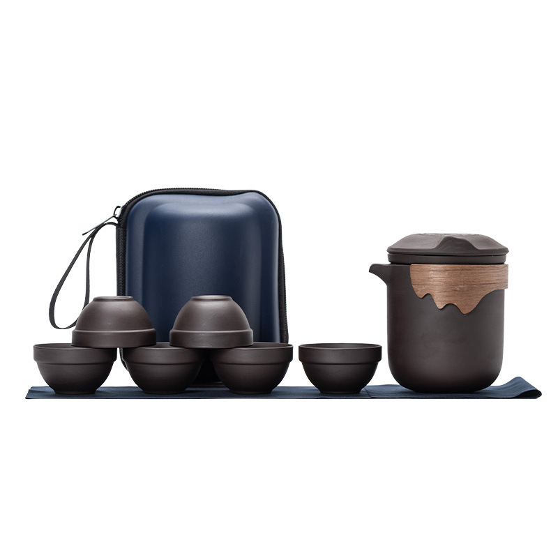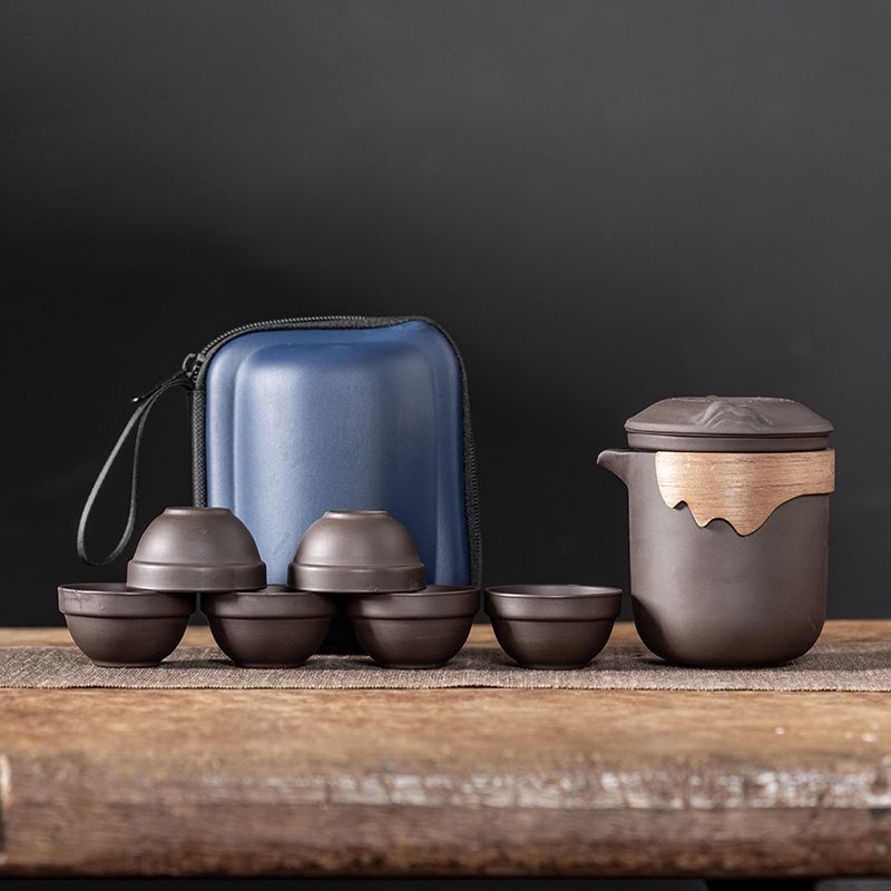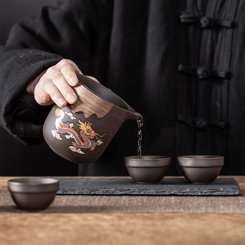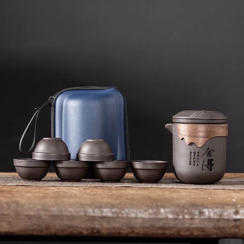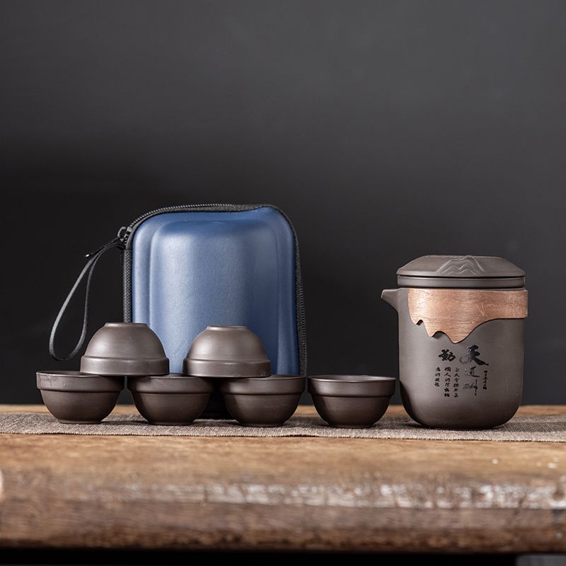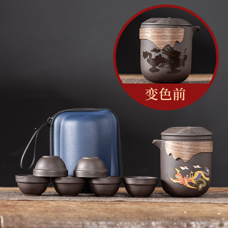Дорожный чайный набор, фиолетовый глиняный чайник, хамелеон, феникс, одна кастрюля, шесть чашек, компанию, событие, практичный подарок для открытия магазина, празднование