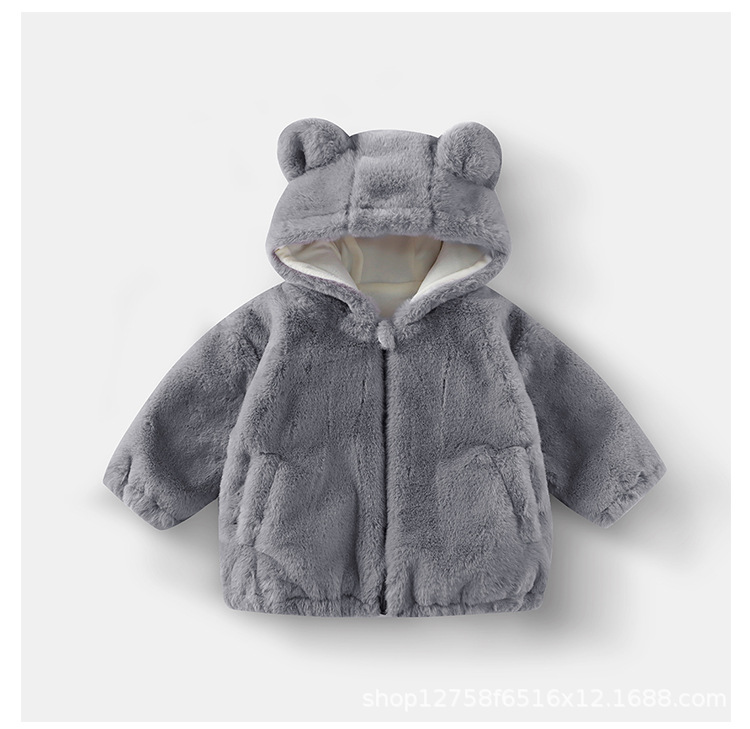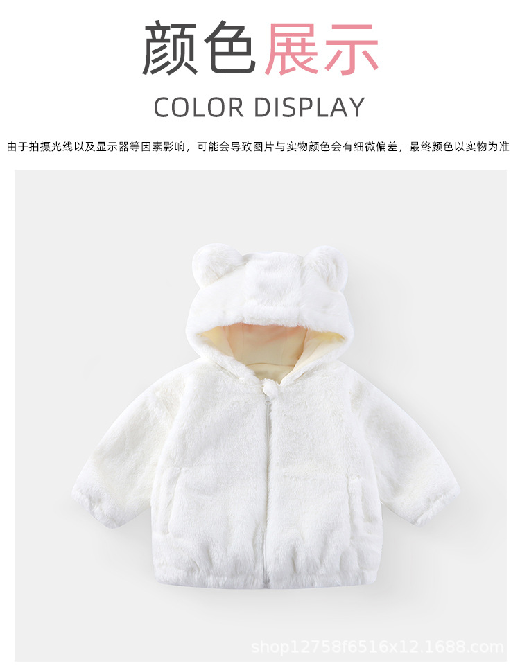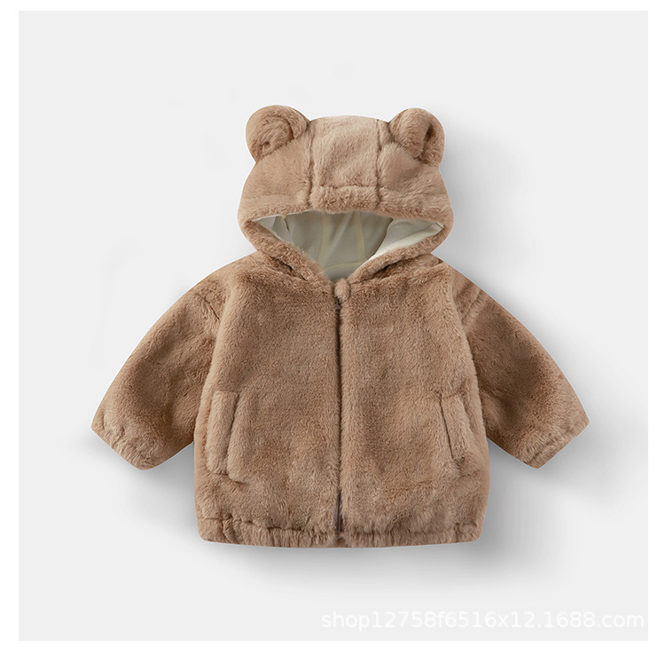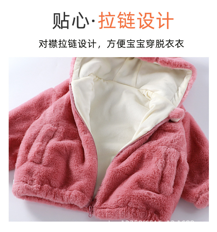 Осенняя и зимняя детская плюшевая куртка 2025 новая внешняя торговля детская одежда уха с капюшоном сплошная молния дикая европейская и американская куртка