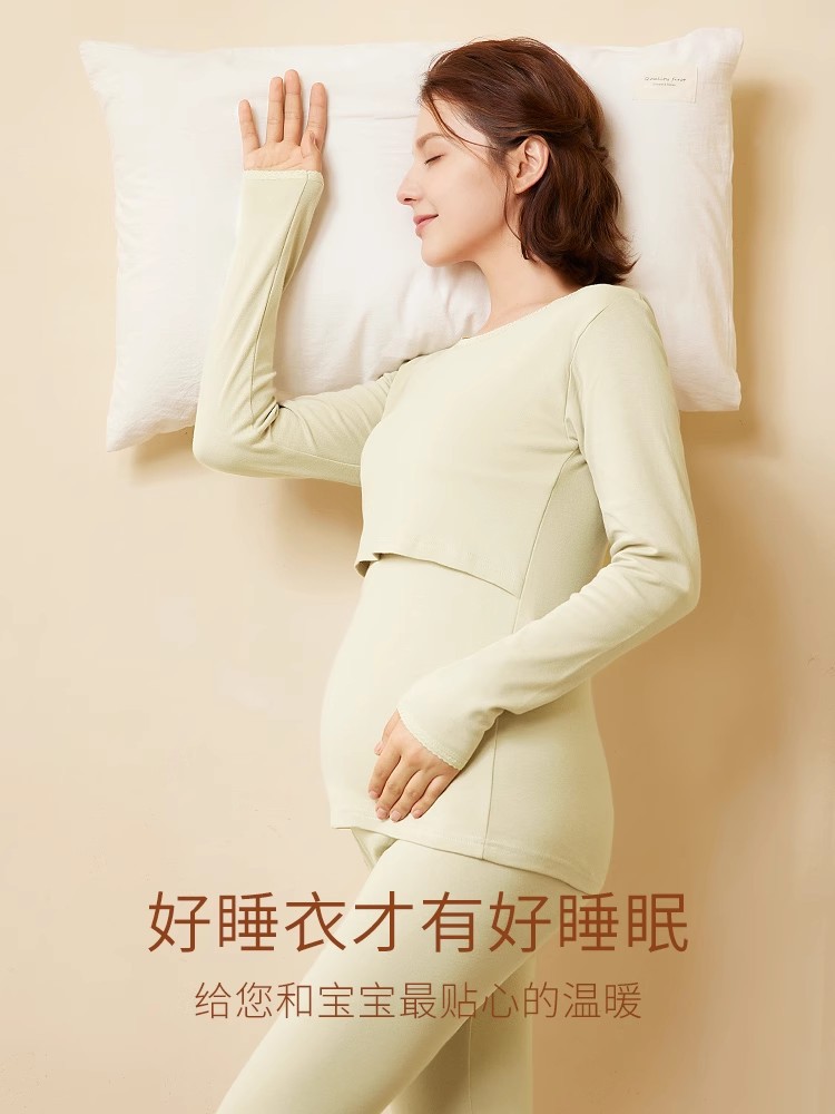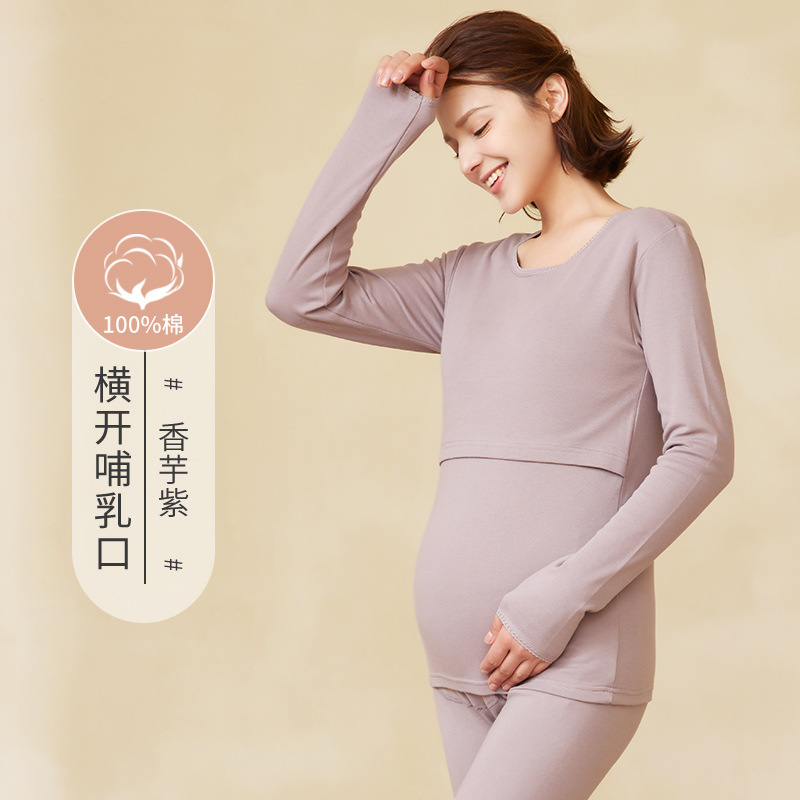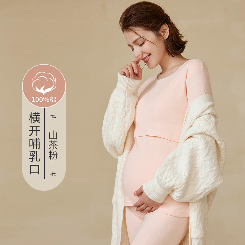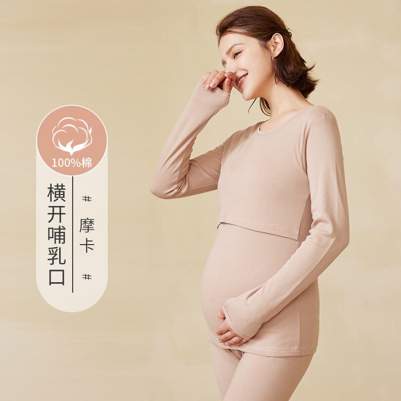 Осенний комплект одежды для беременных, пижамы из чистого хлопка для беременных и кормящих, термобелье для кормления грудью, послеродовая осенне-зимняя одежда для беременных