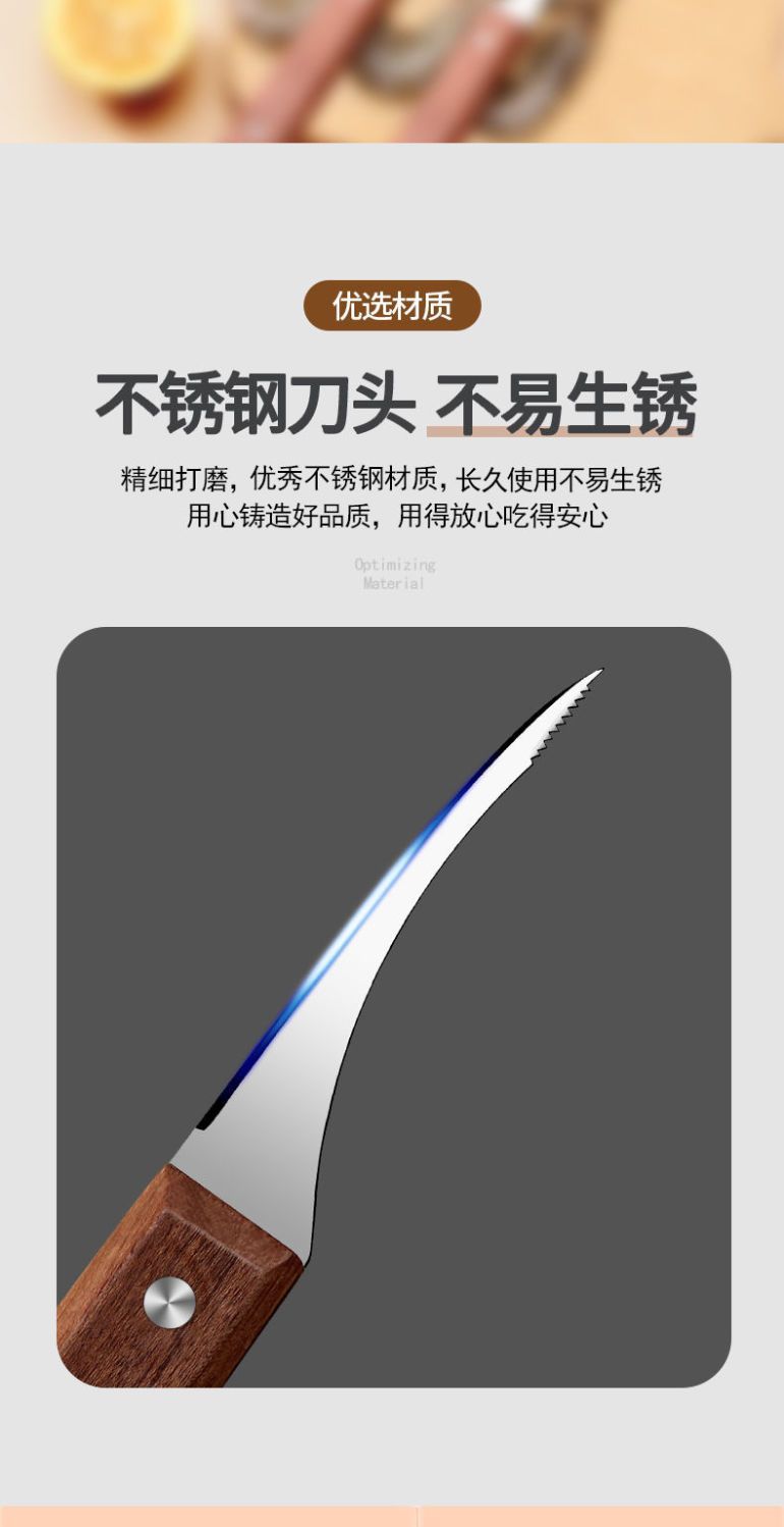 Нож для креветок с деревянной ручкой.